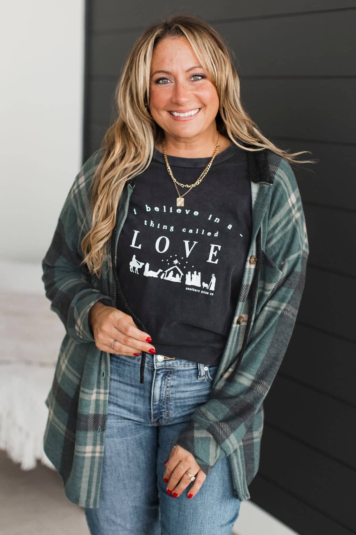 "I Believe In A Thing Called Love" Graphic Tee- Black