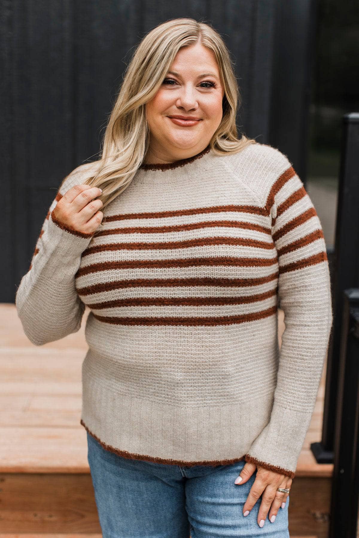 Anything Goes Striped Knit Sweater- Beige & Copper
