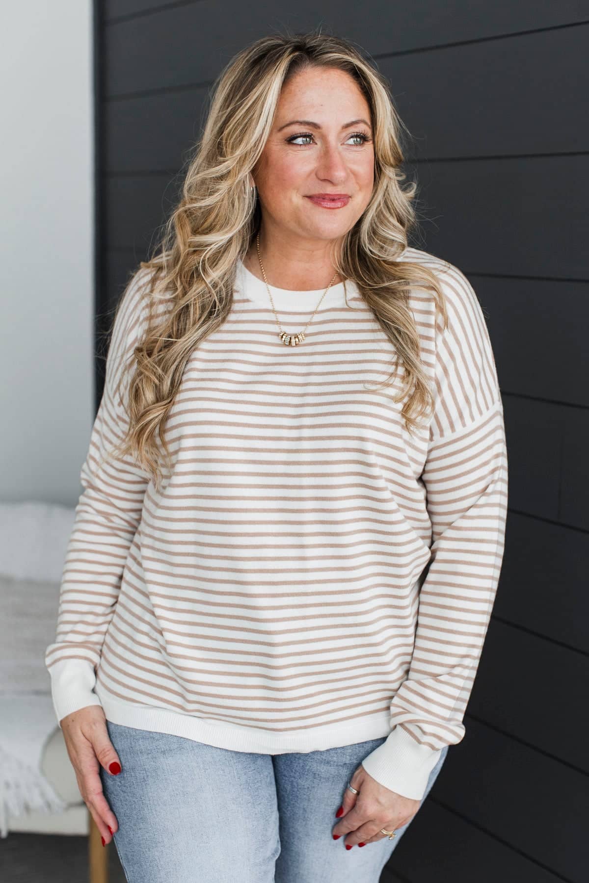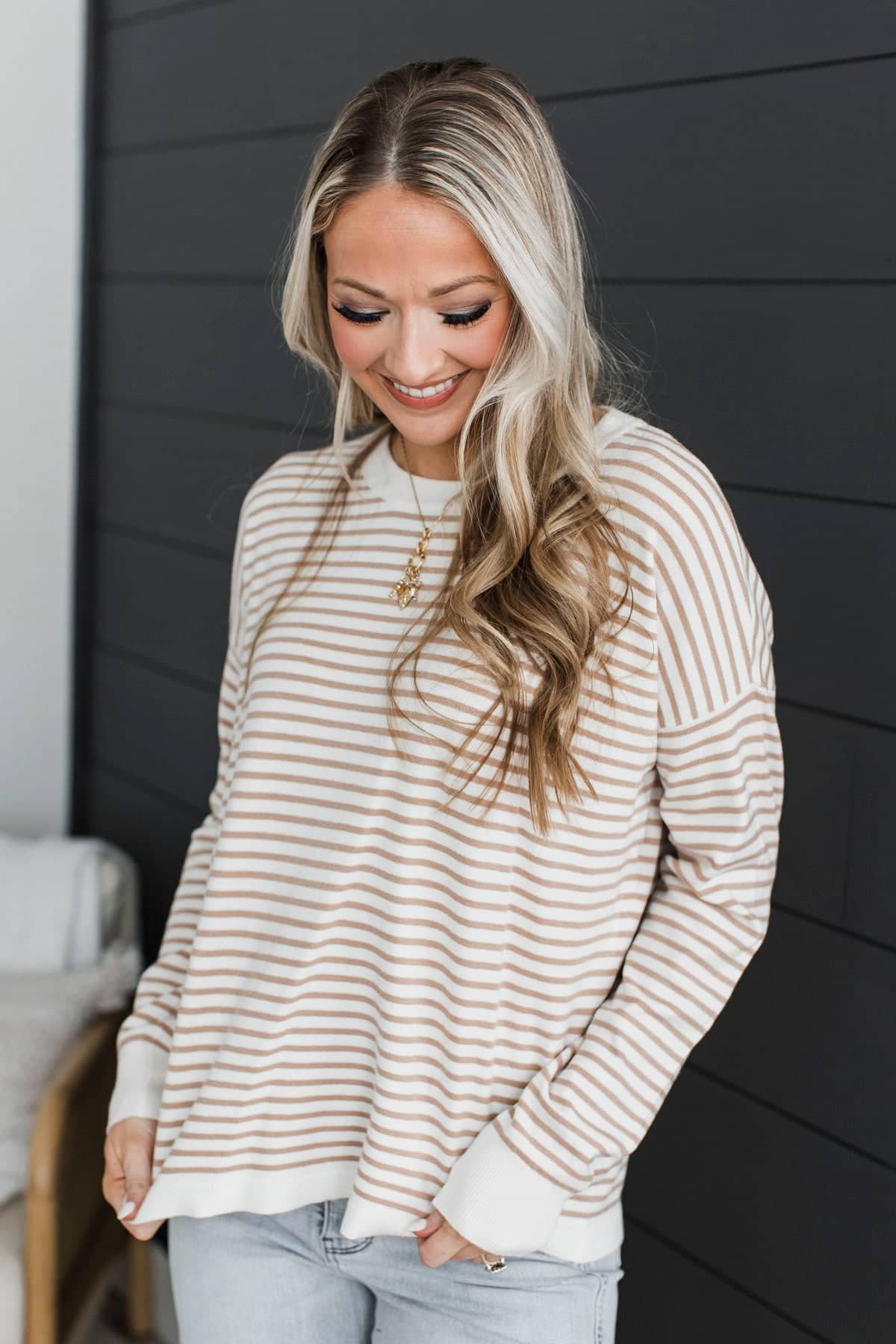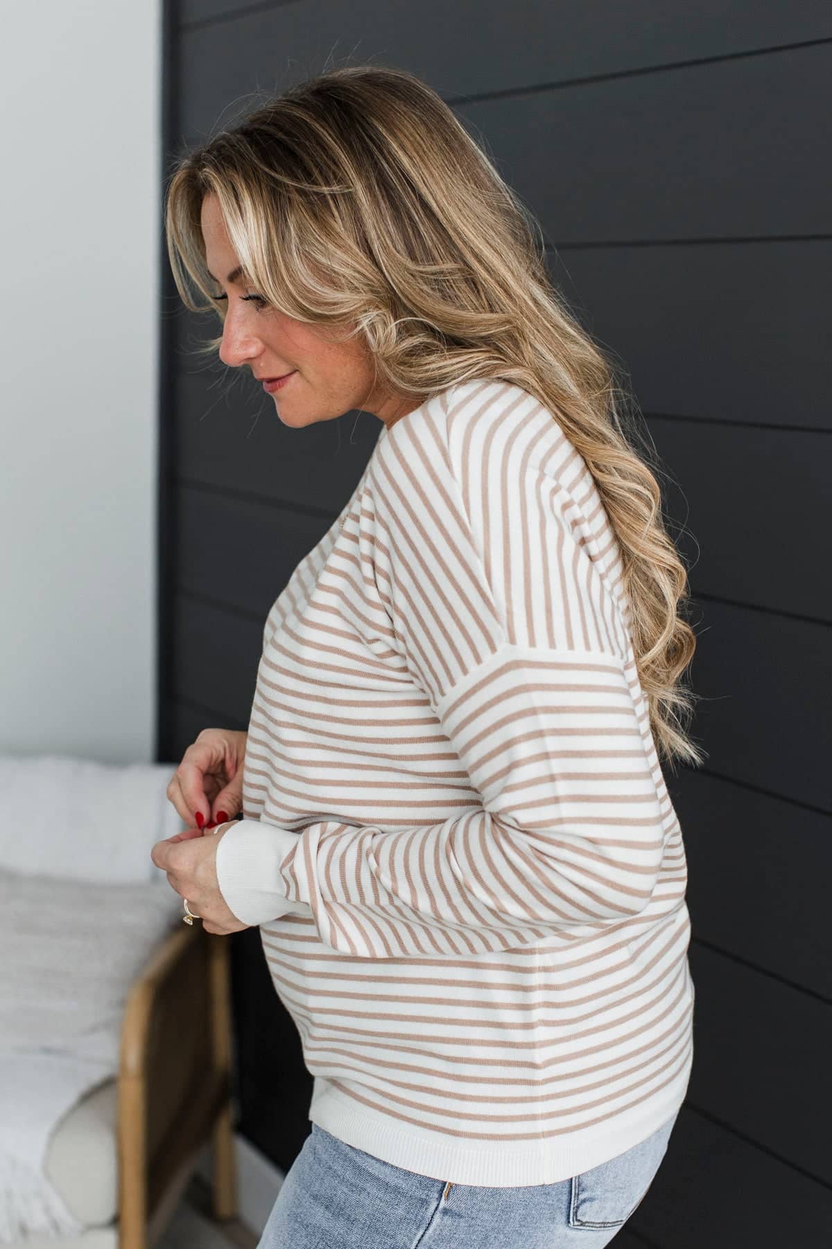 Achieving Goals Striped Knit Sweater- Ivory & Taupe