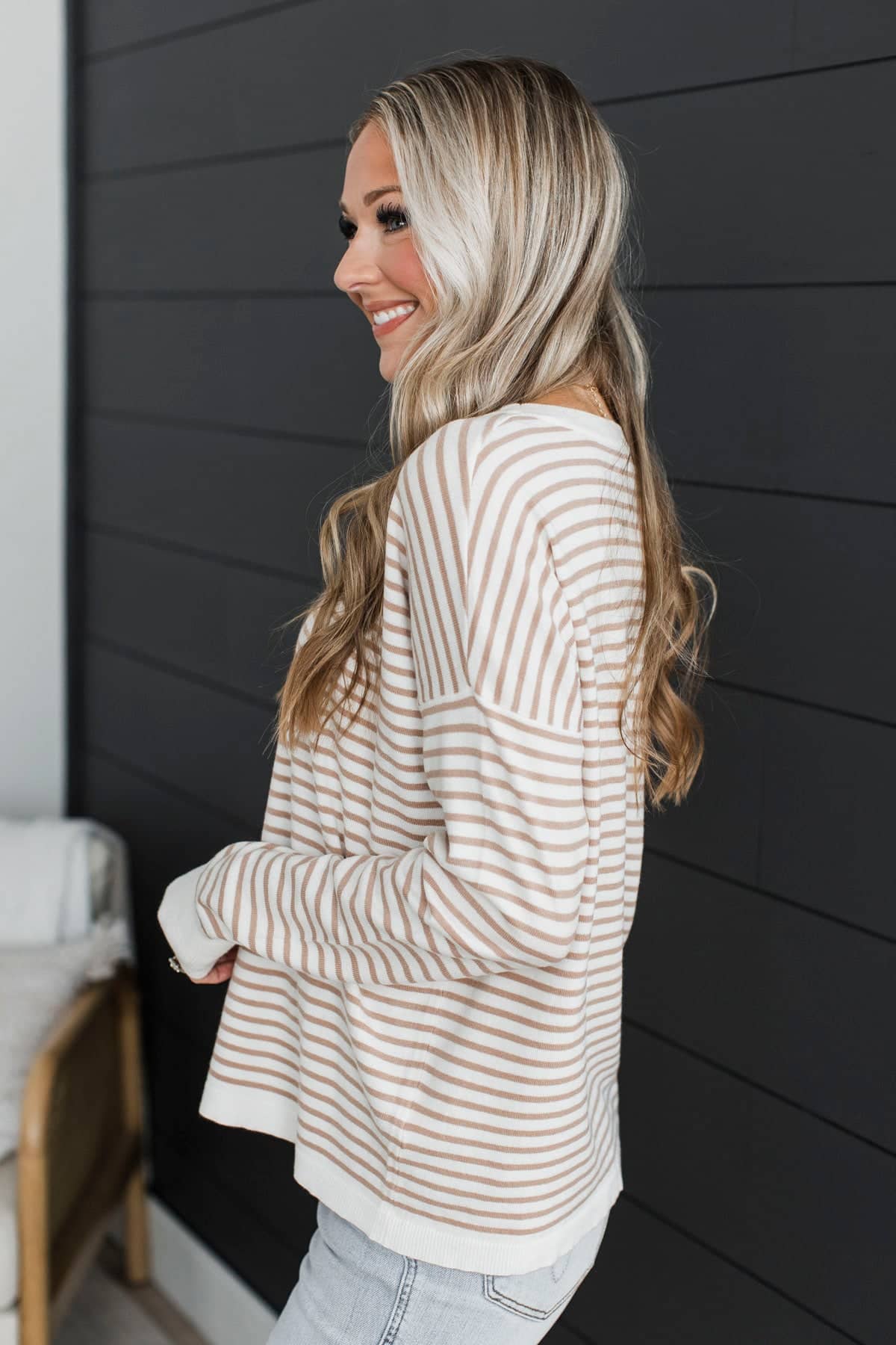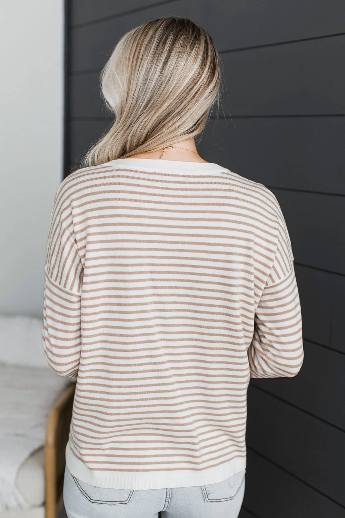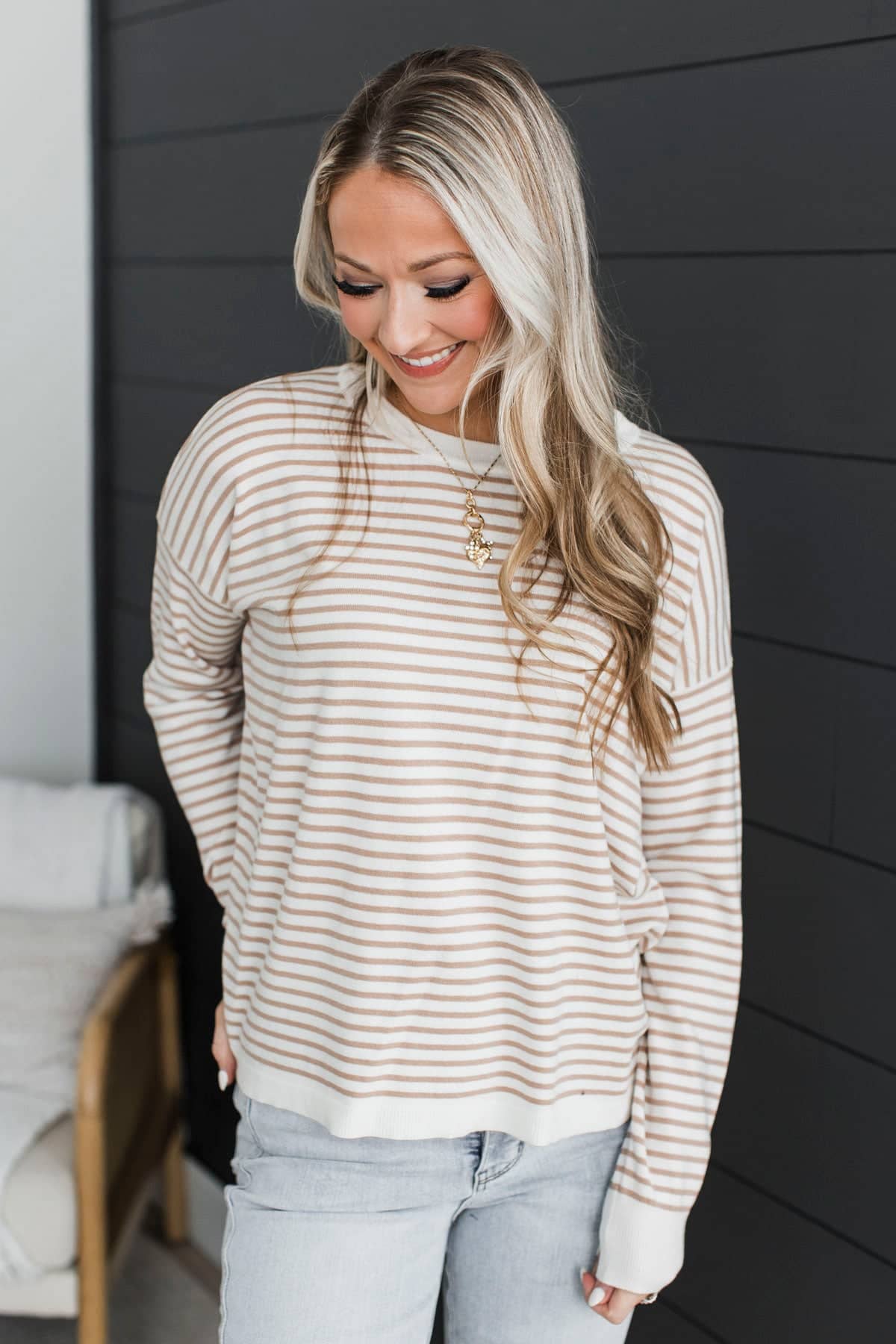 Achieving Goals Striped Knit Sweater- Ivory & Taupe