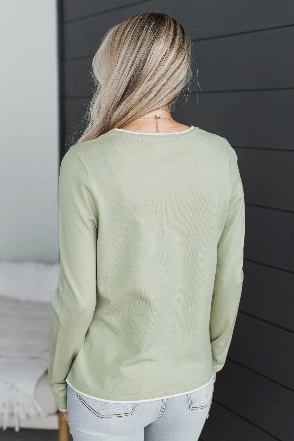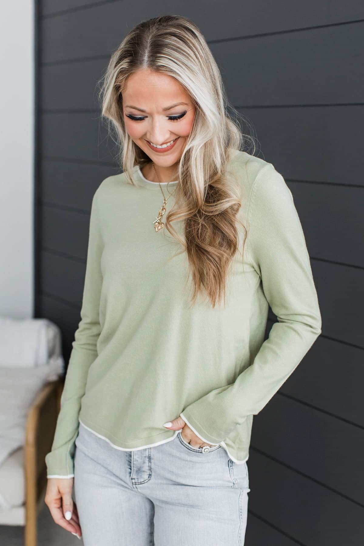 Amazing Confidence Contrast Knit Sweater- Light Sage