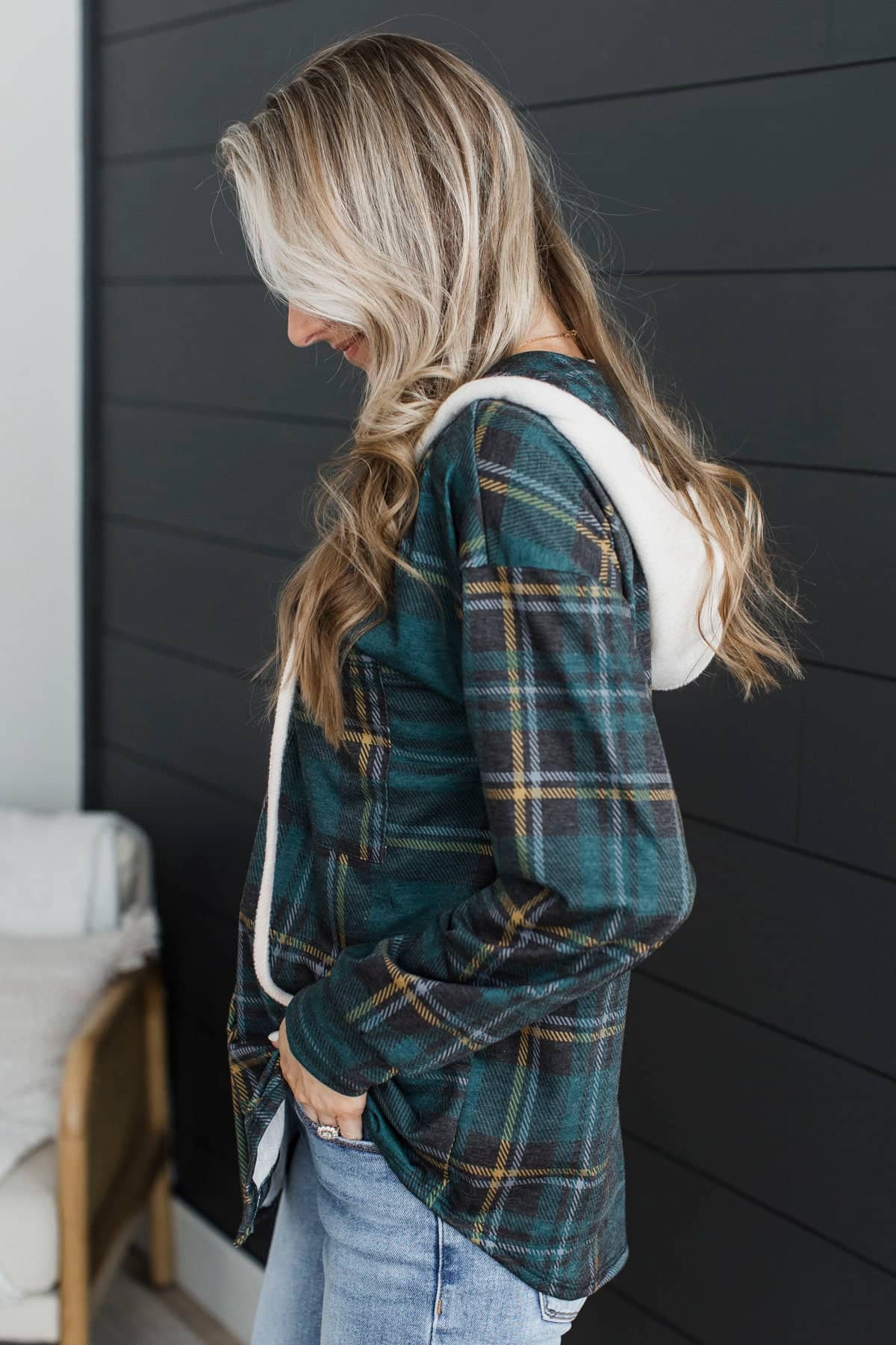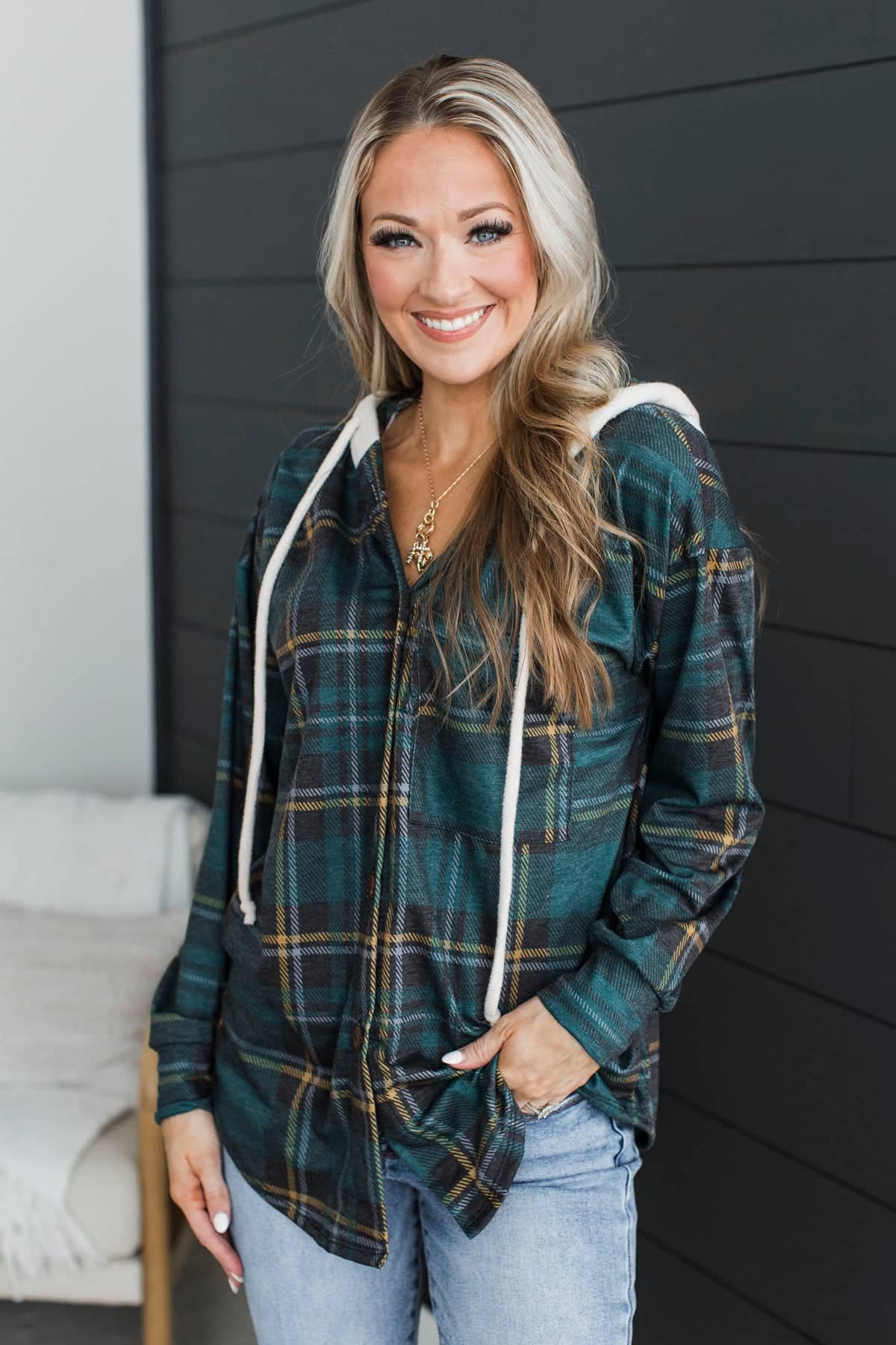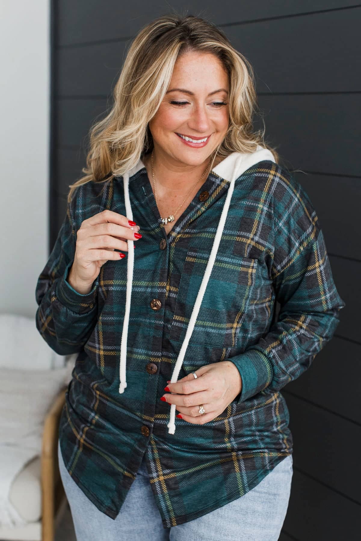 Essential Love Lightweight Hooded Shirt Jacket- Hunter Green