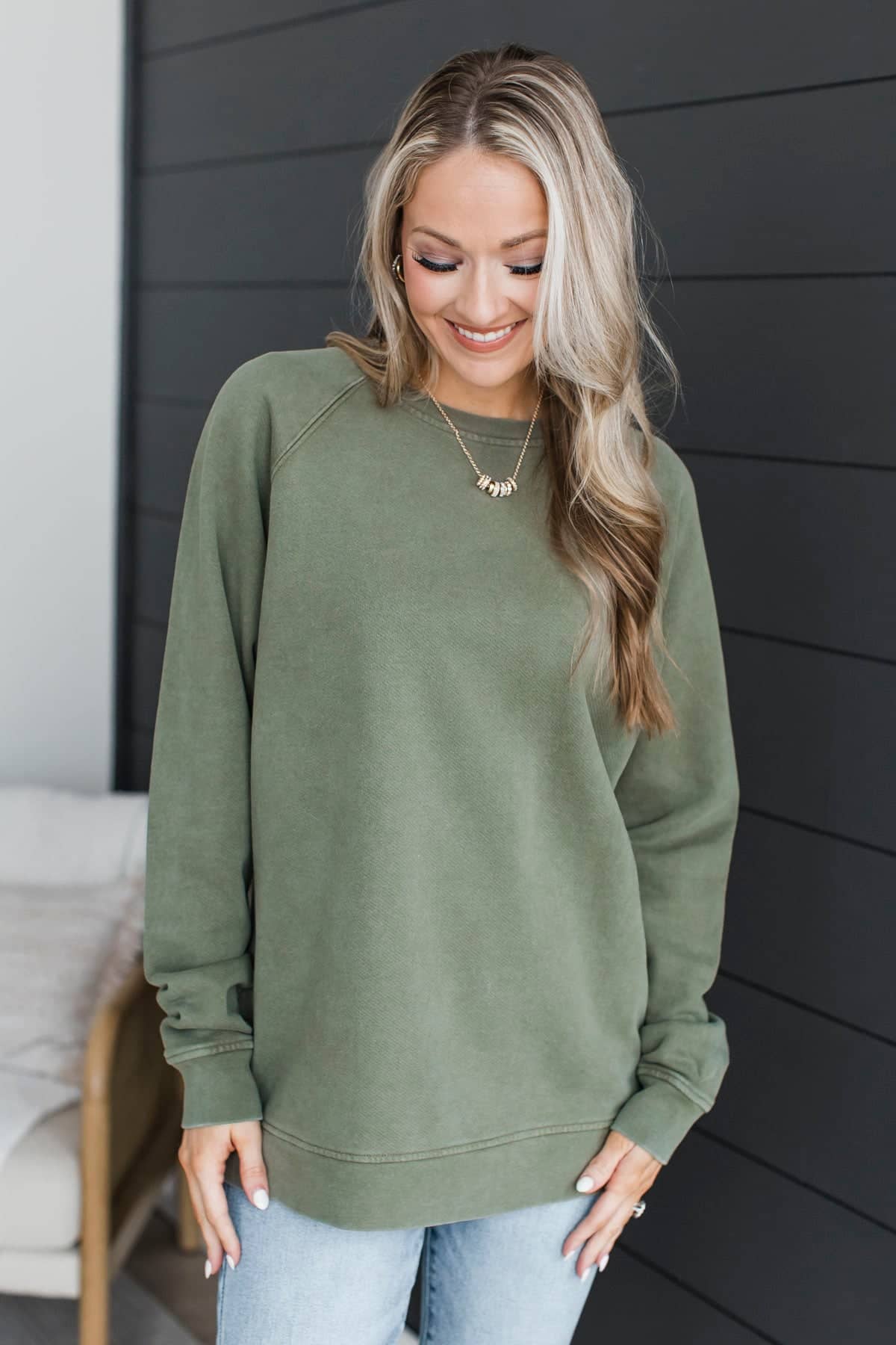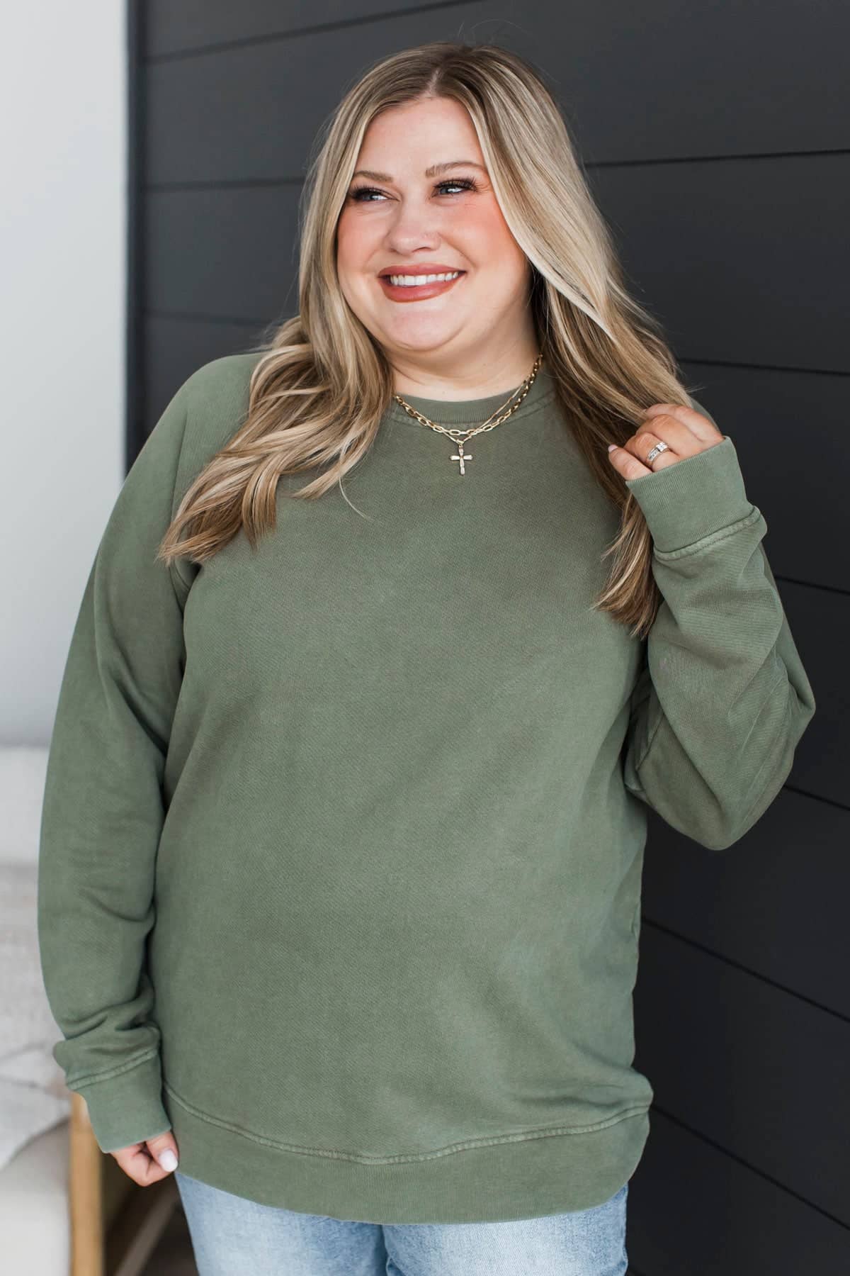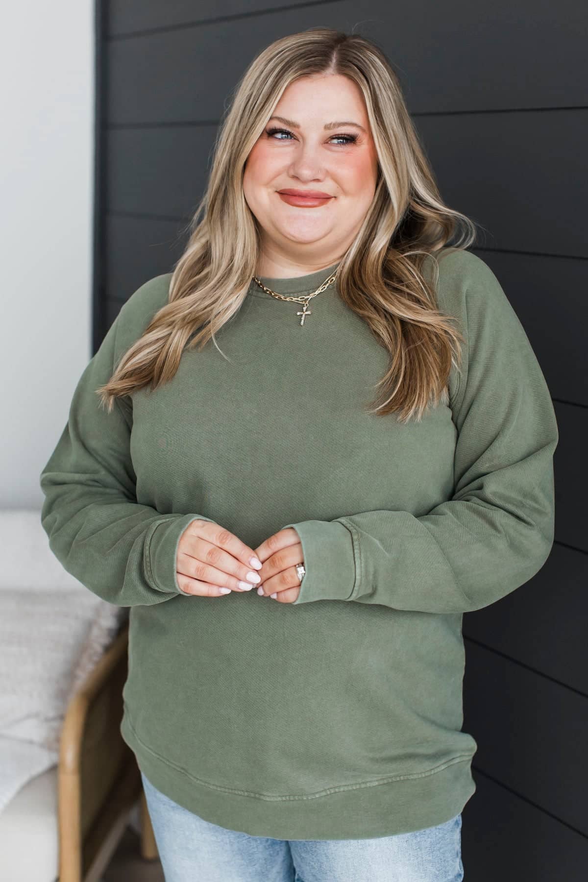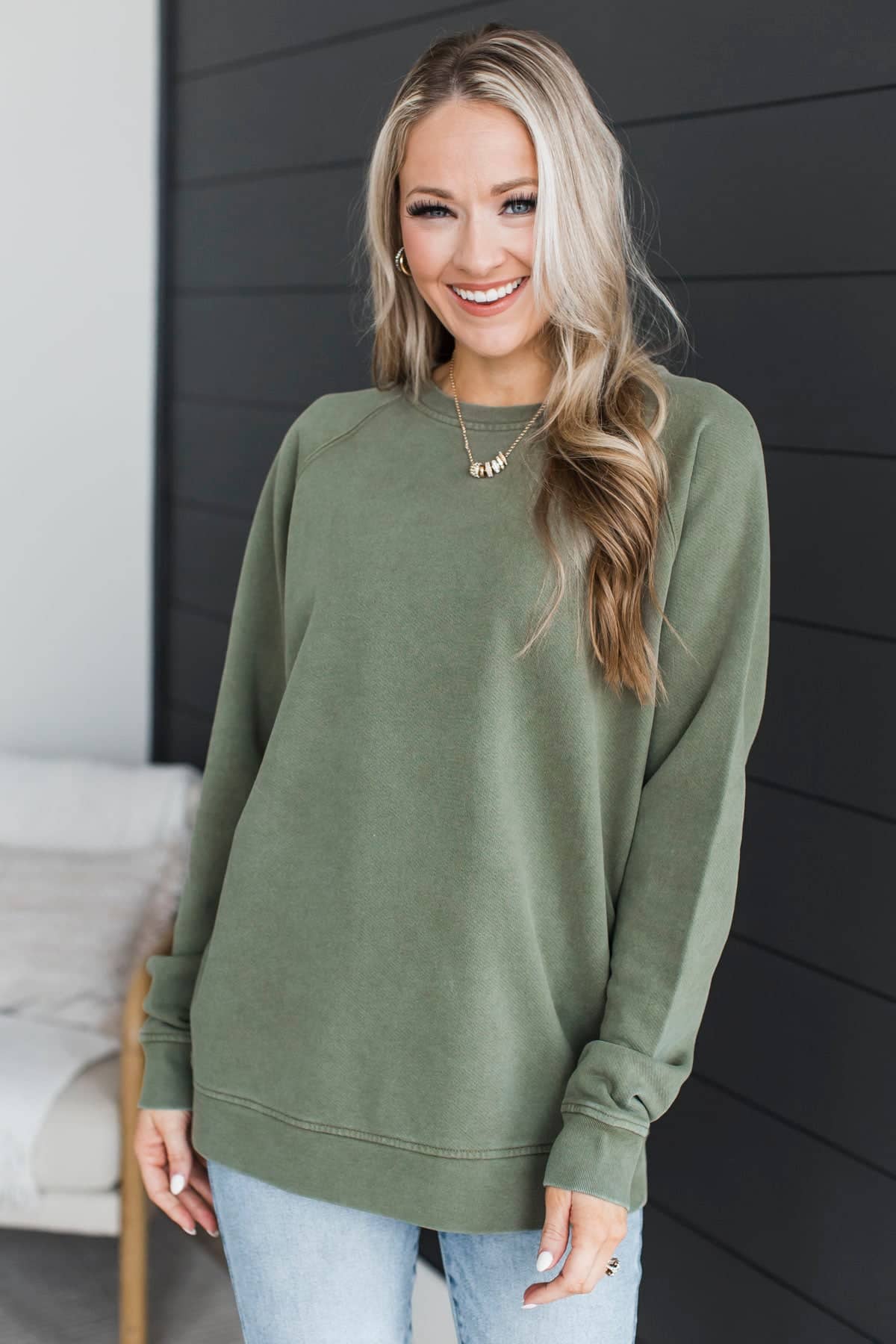 Thread & Supply Always Happy Pullover- Dusty Olive