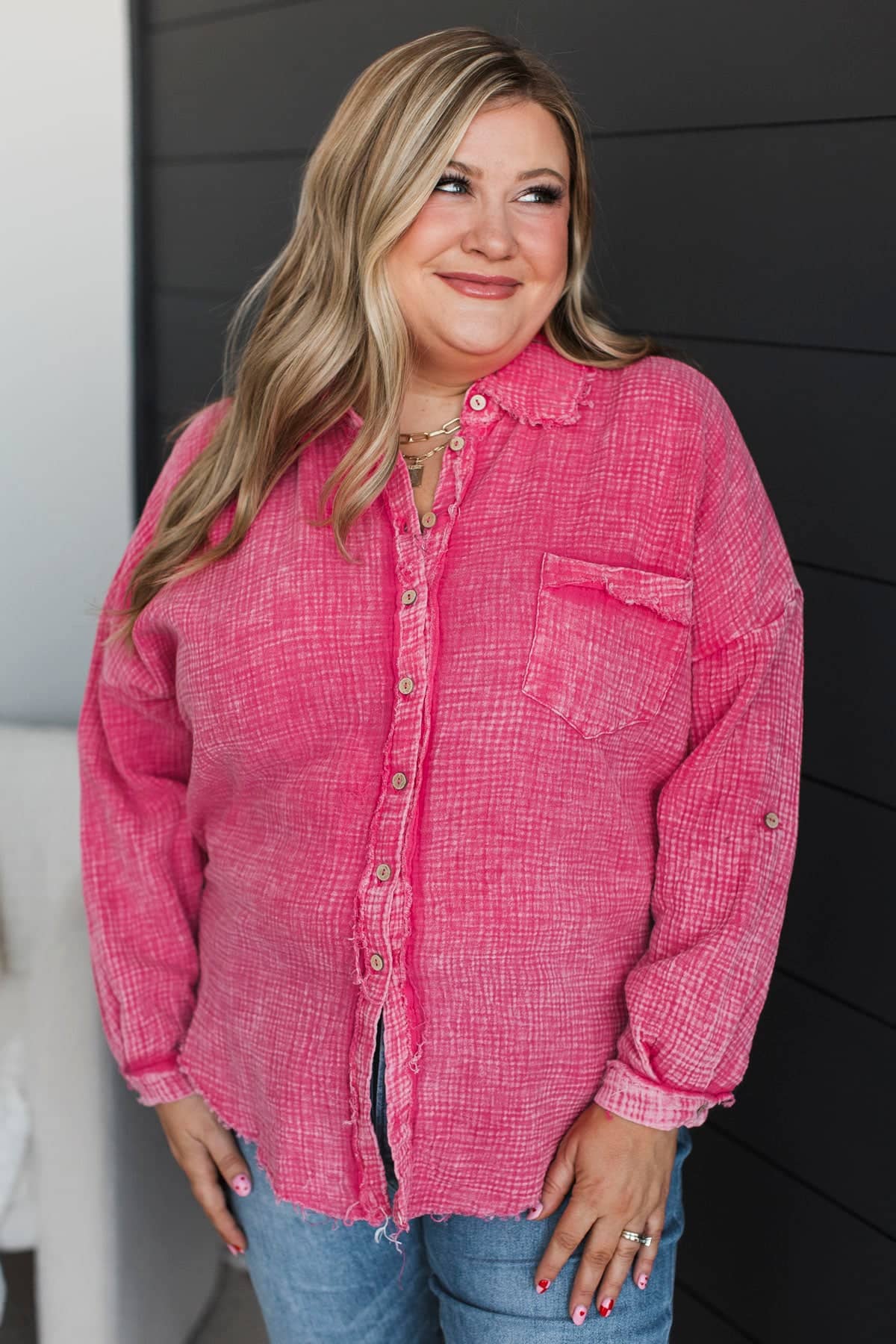 Beauty Of The Moment Frayed Button Top- Fuchsia