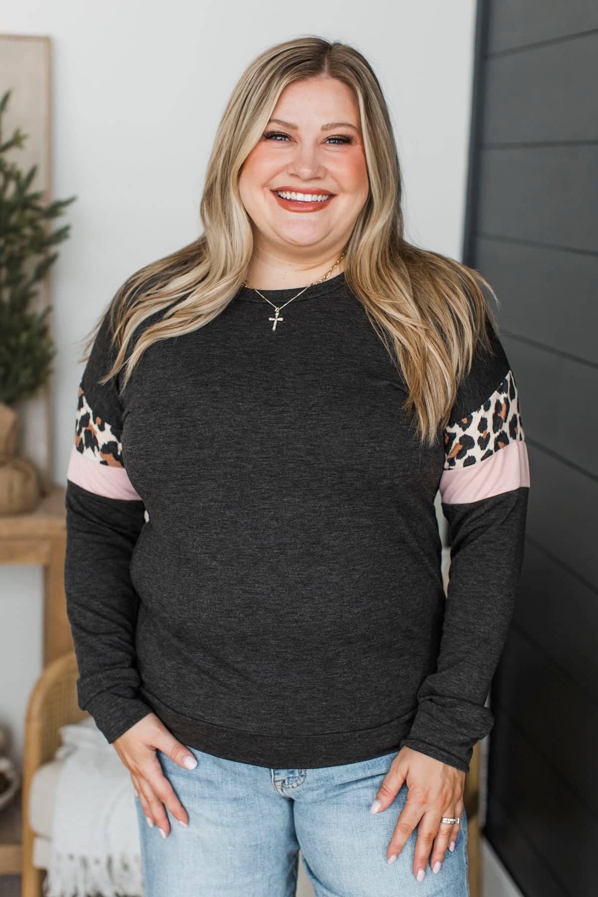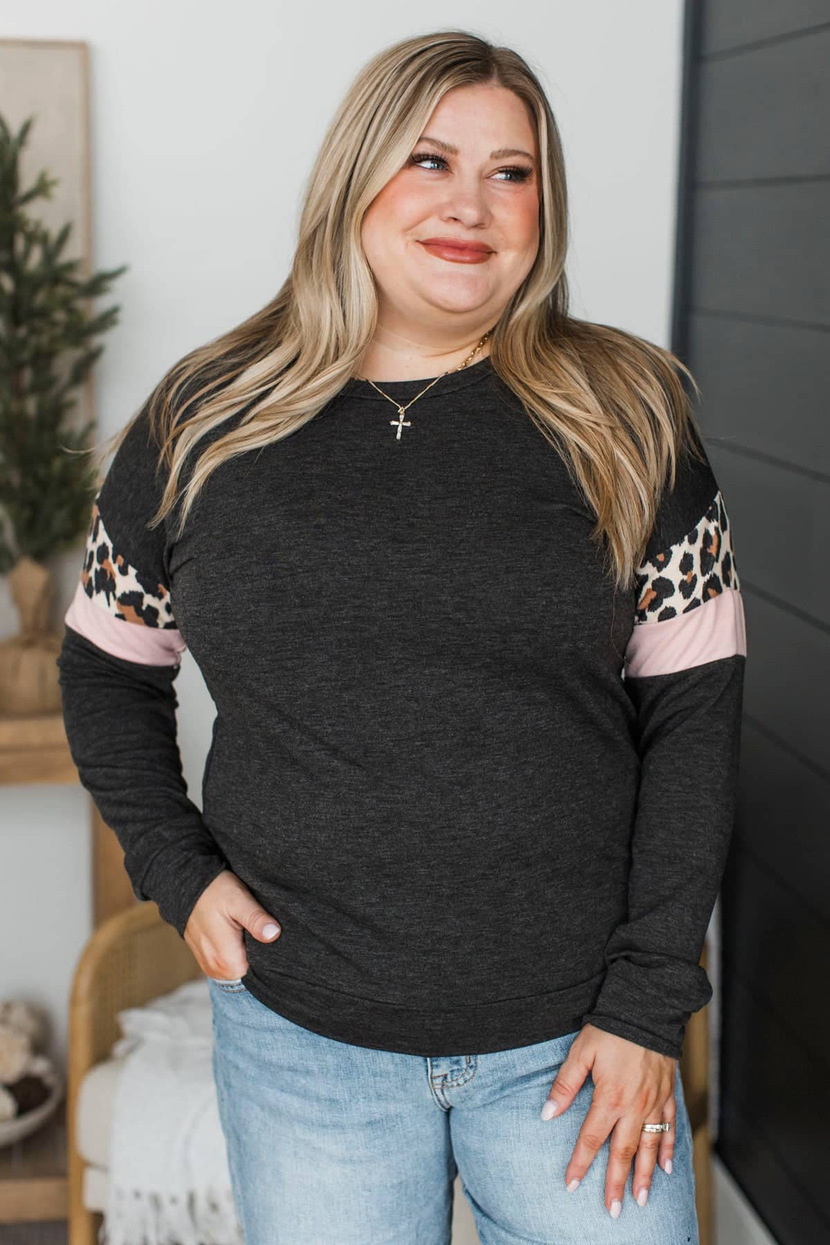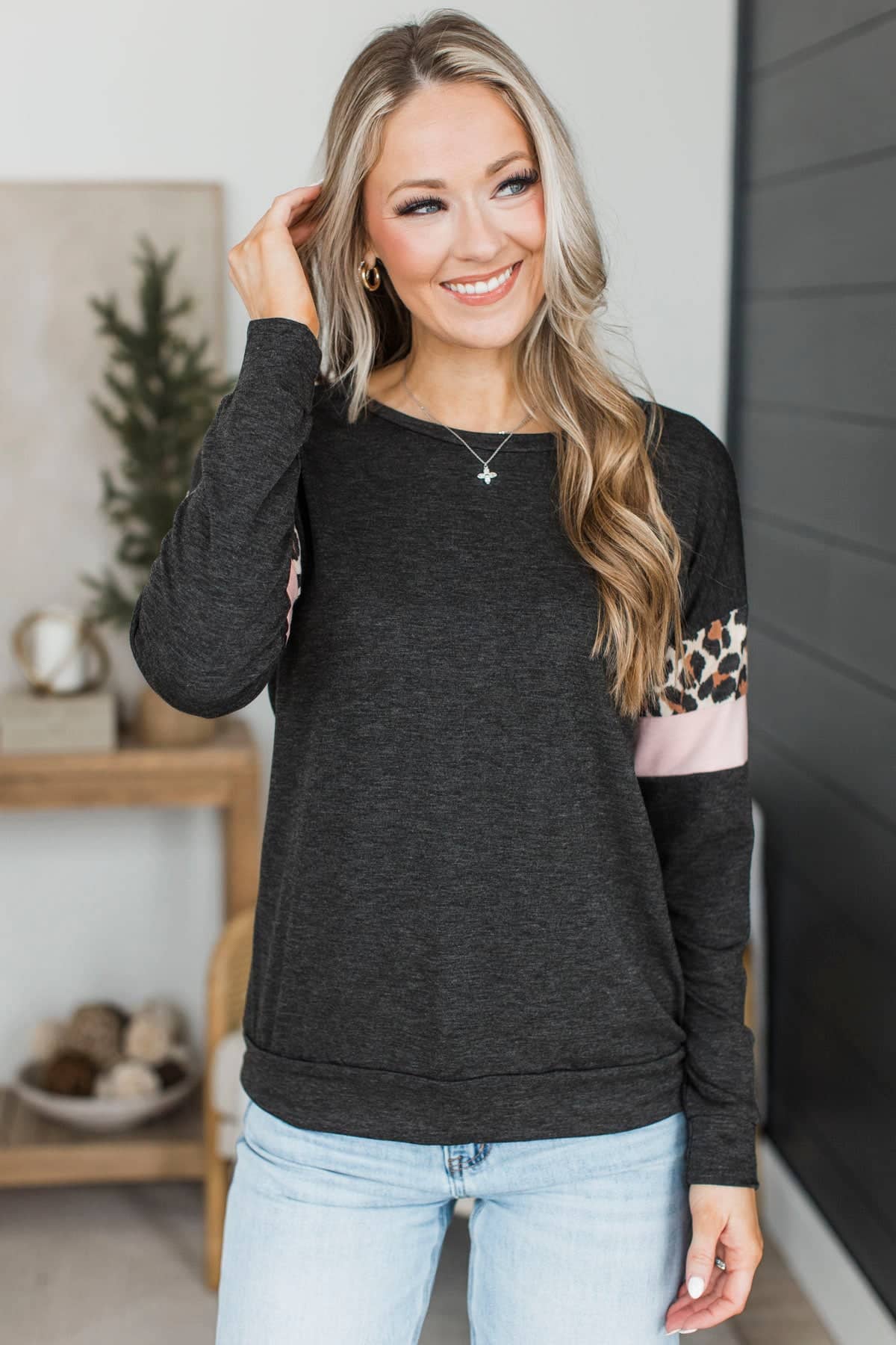 Can't Be Tamed Long Sleeve Top- Charcoal & Blush