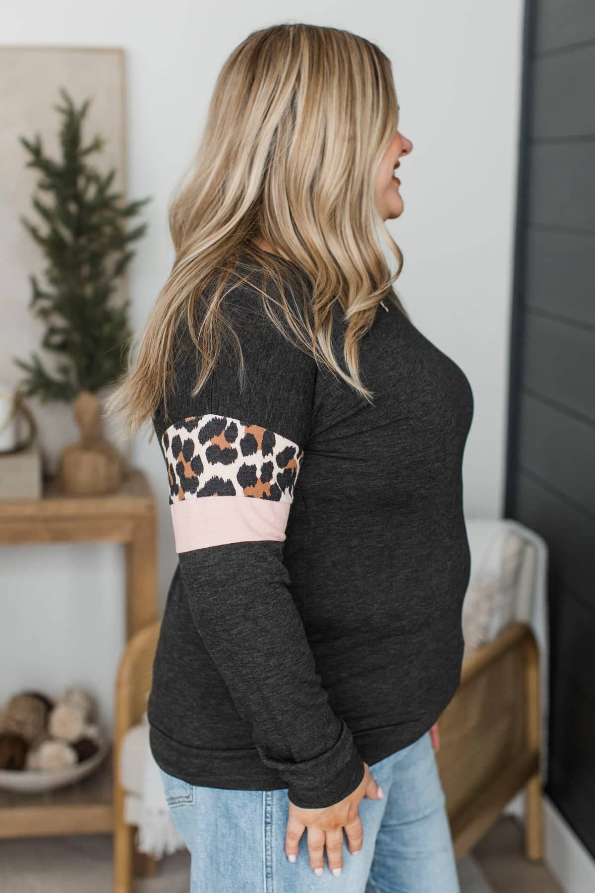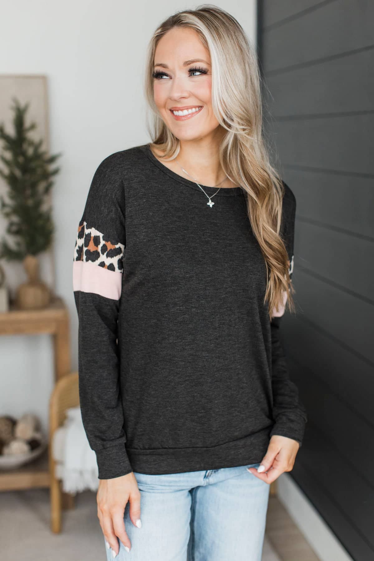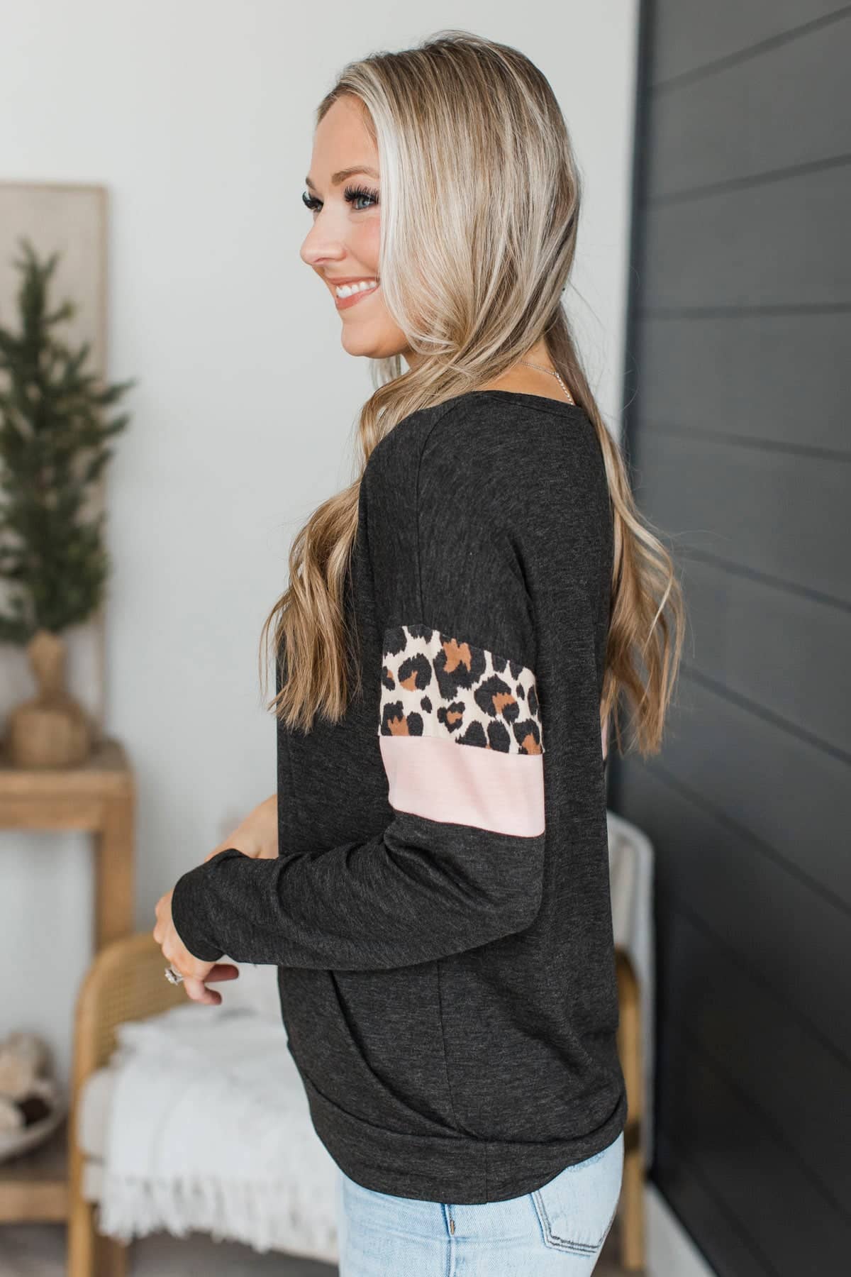Can't Be Tamed Long Sleeve Top- Charcoal & Blush