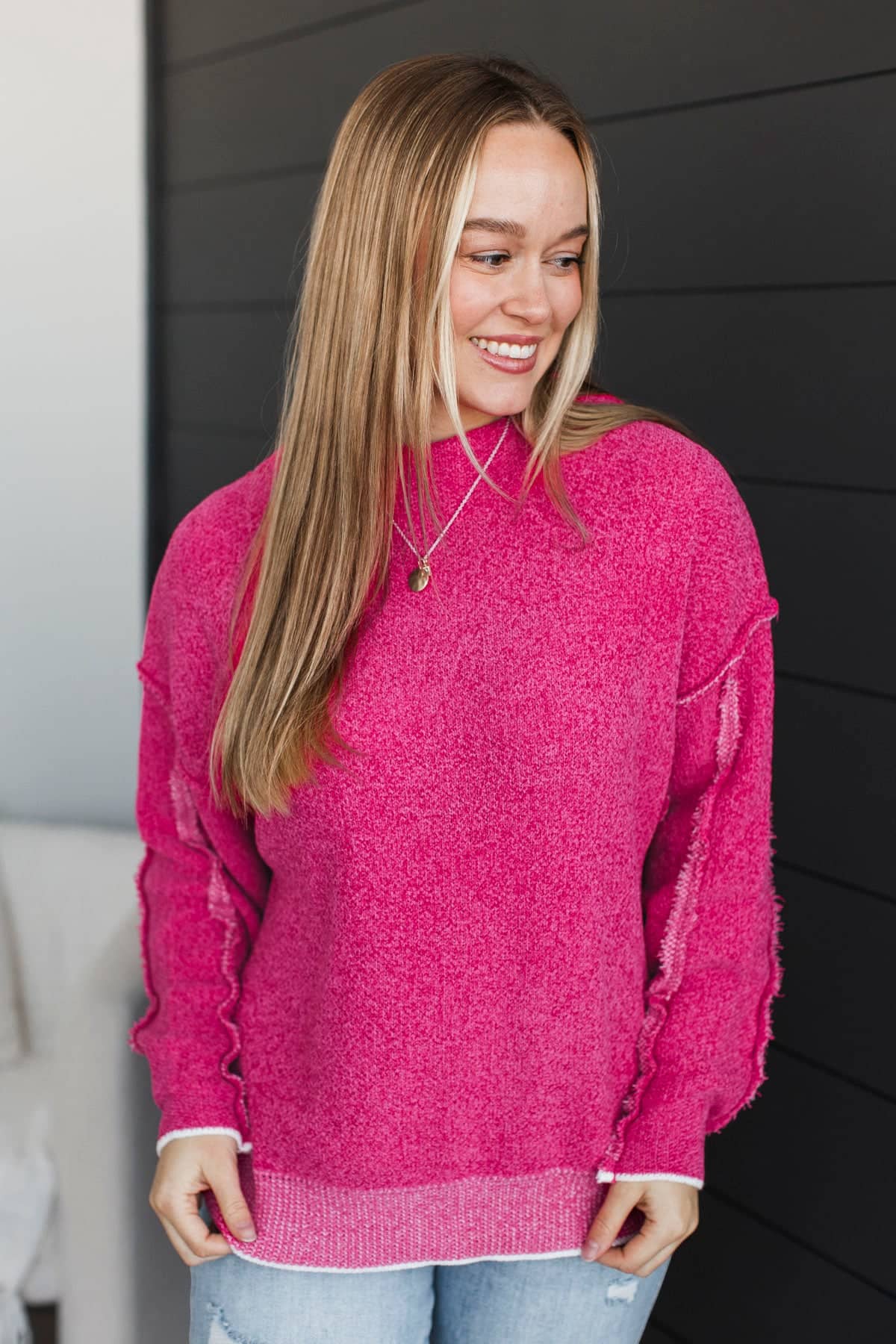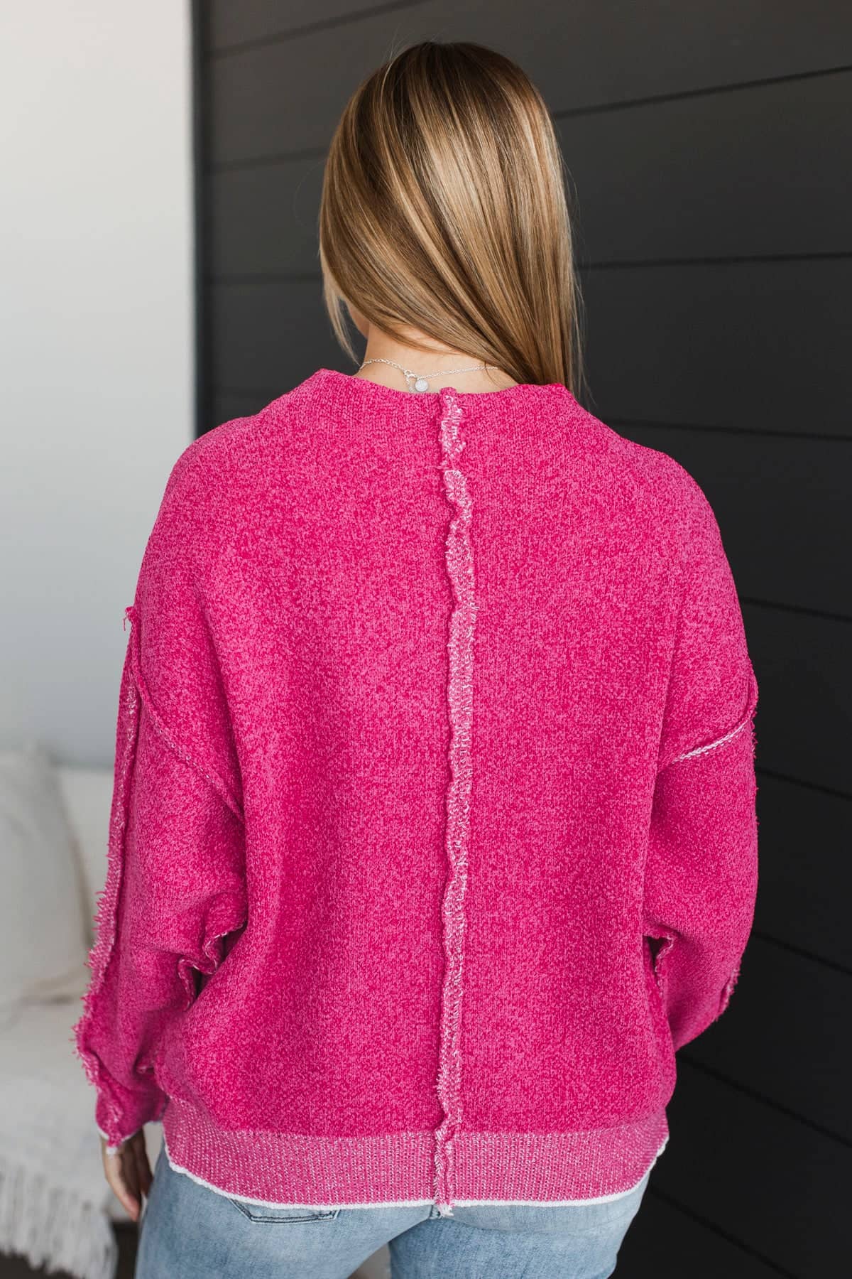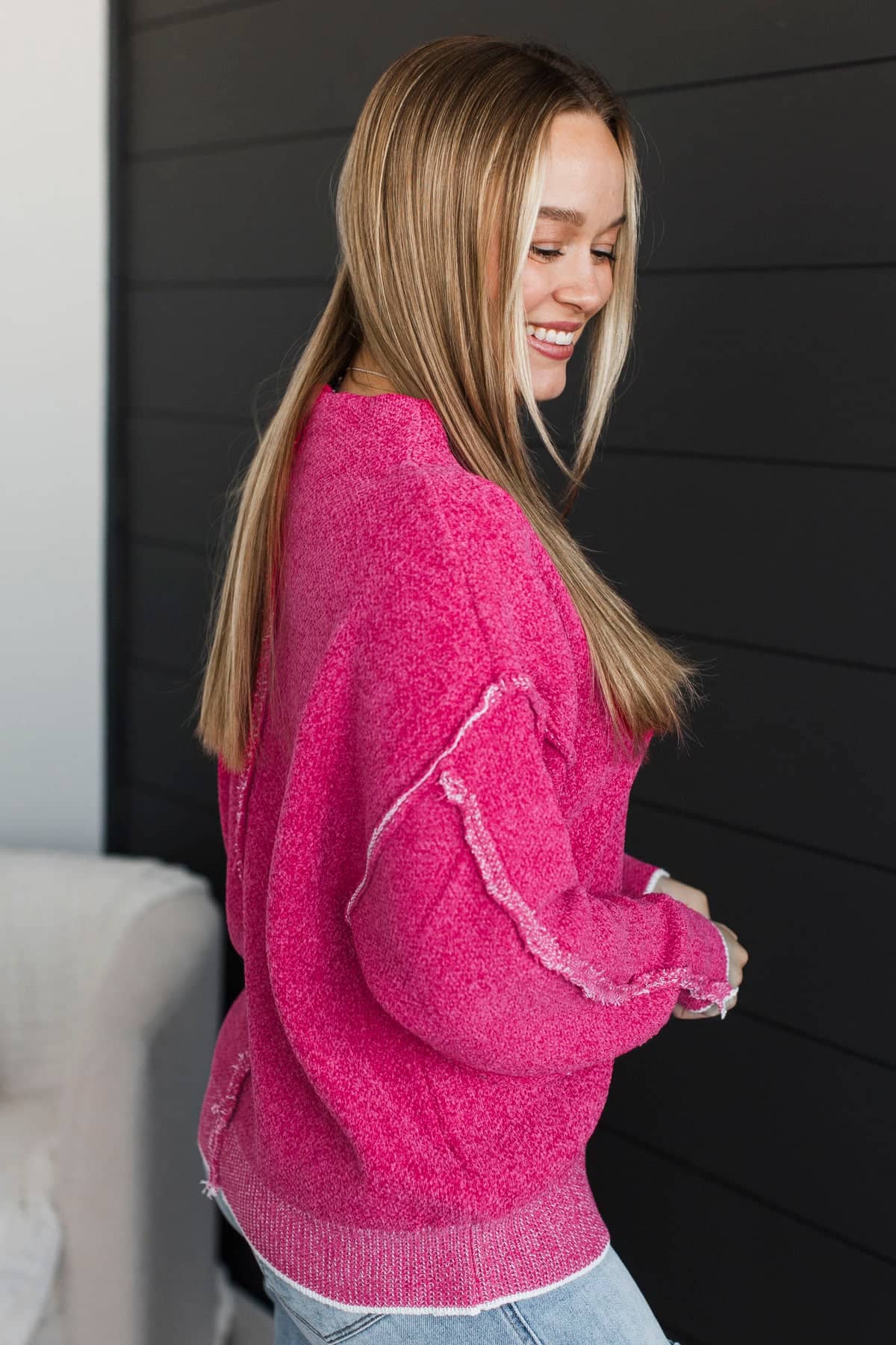 Completely Unbothered Chenille Knit Sweater- Hot Pink
