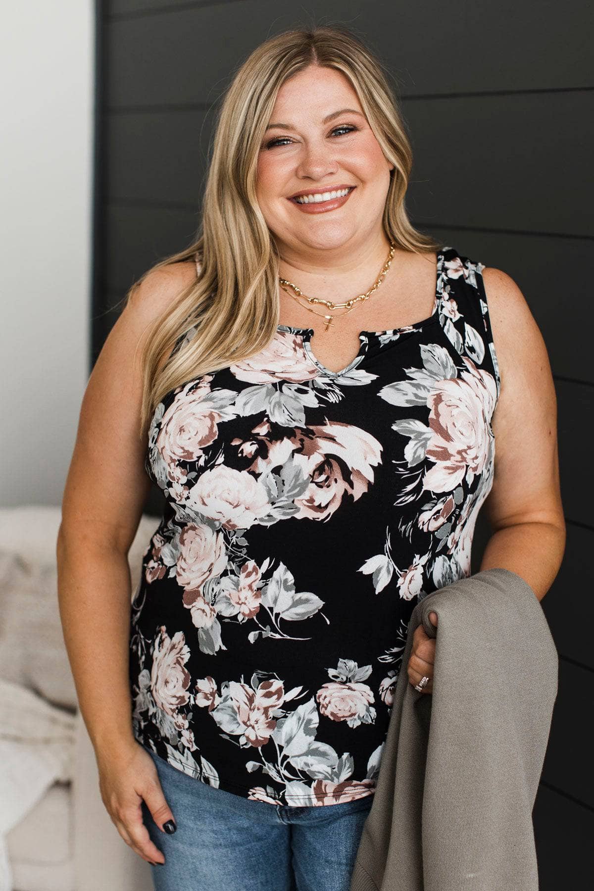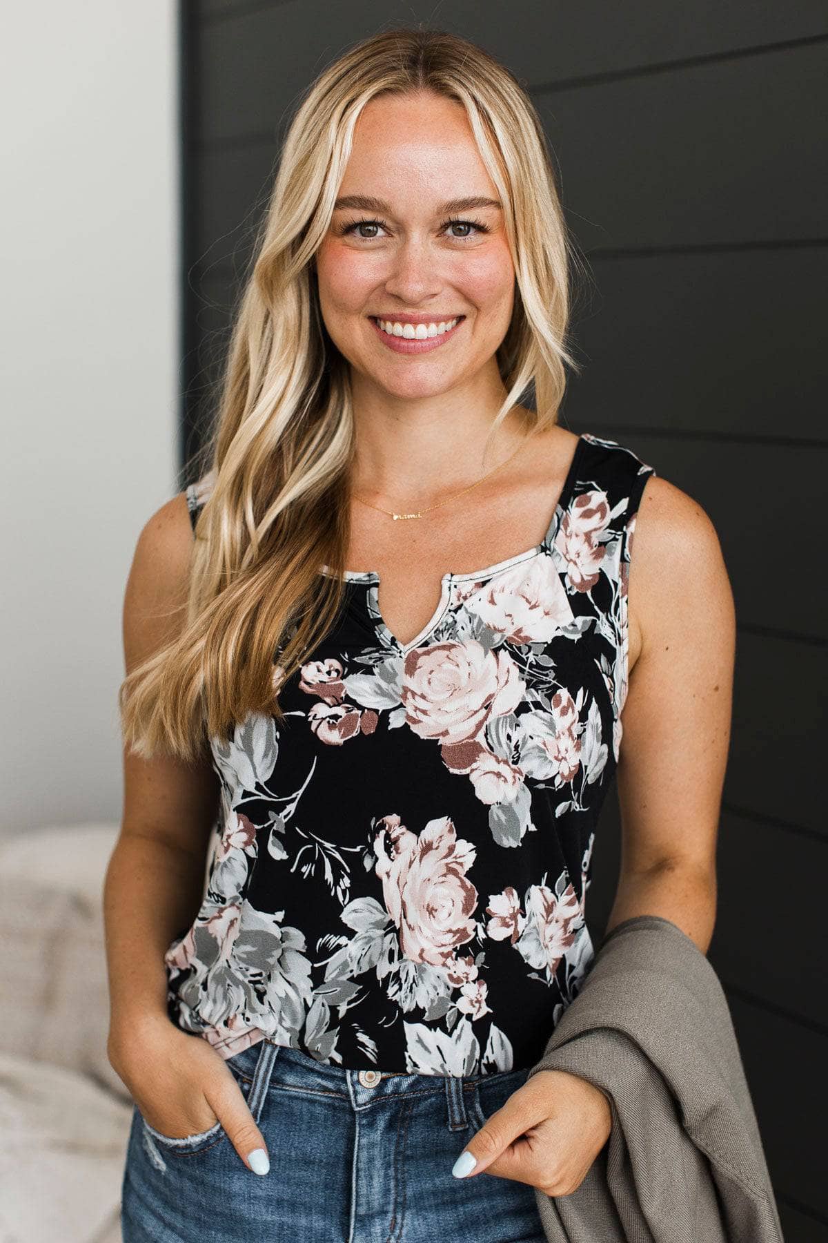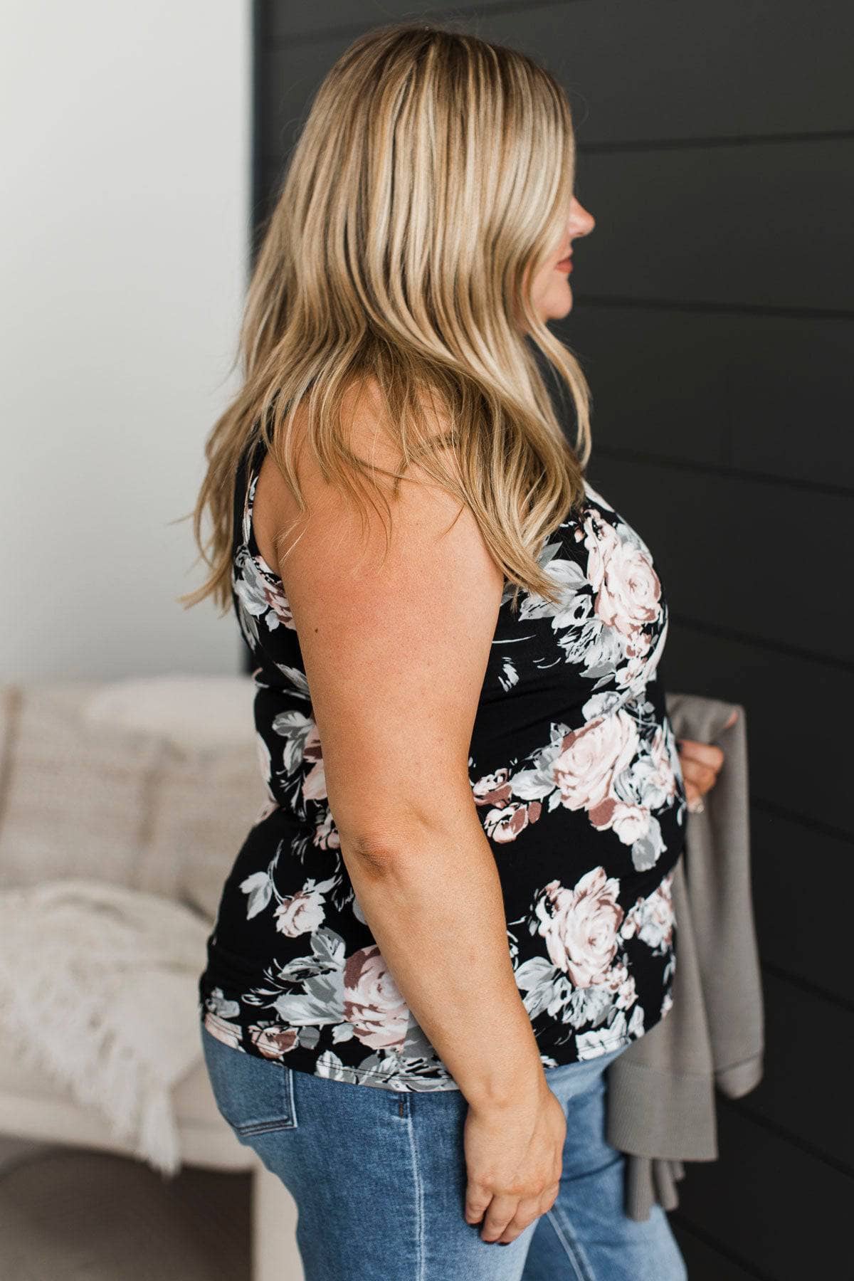 Black floral tank