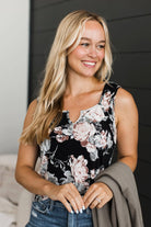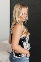Echo Through Time Floral Tank Top- Black