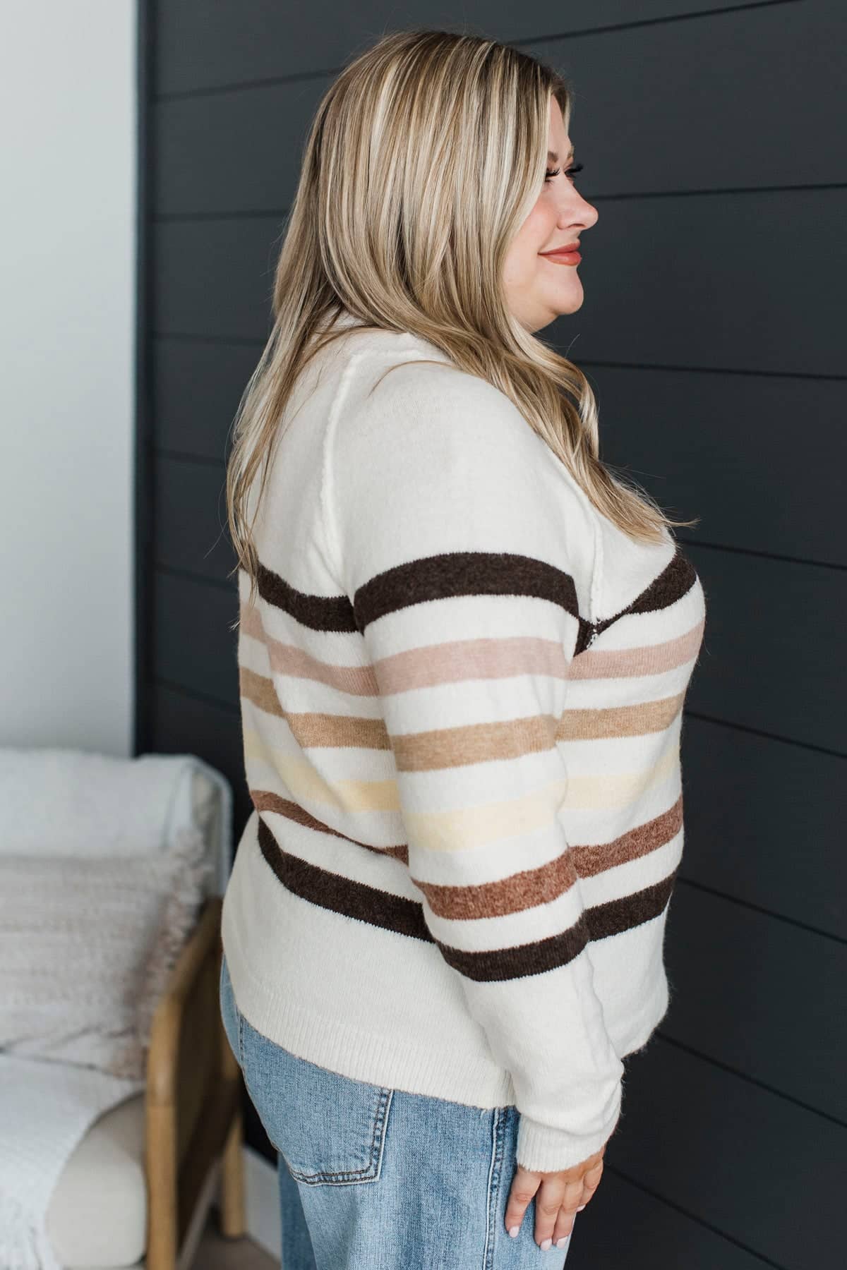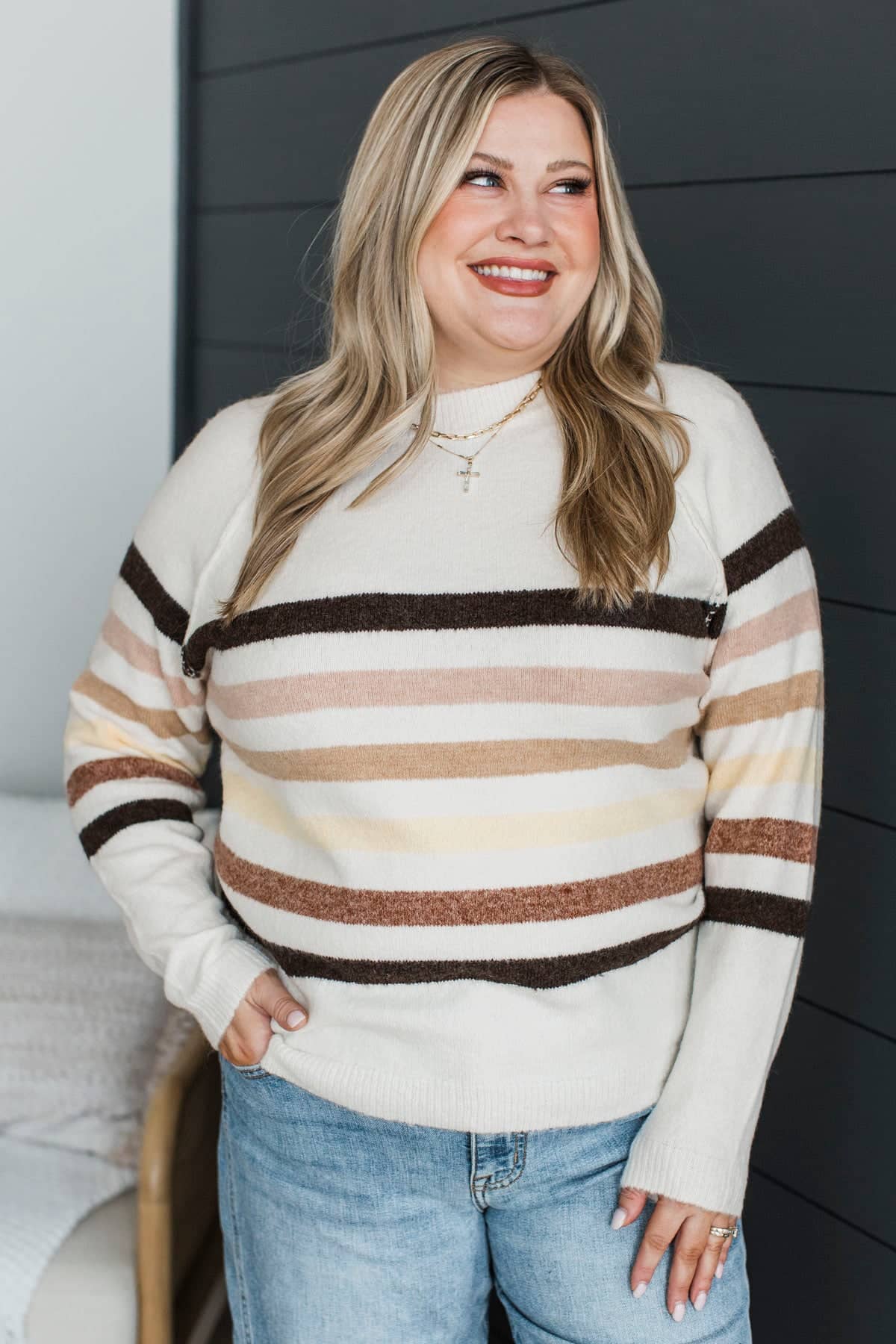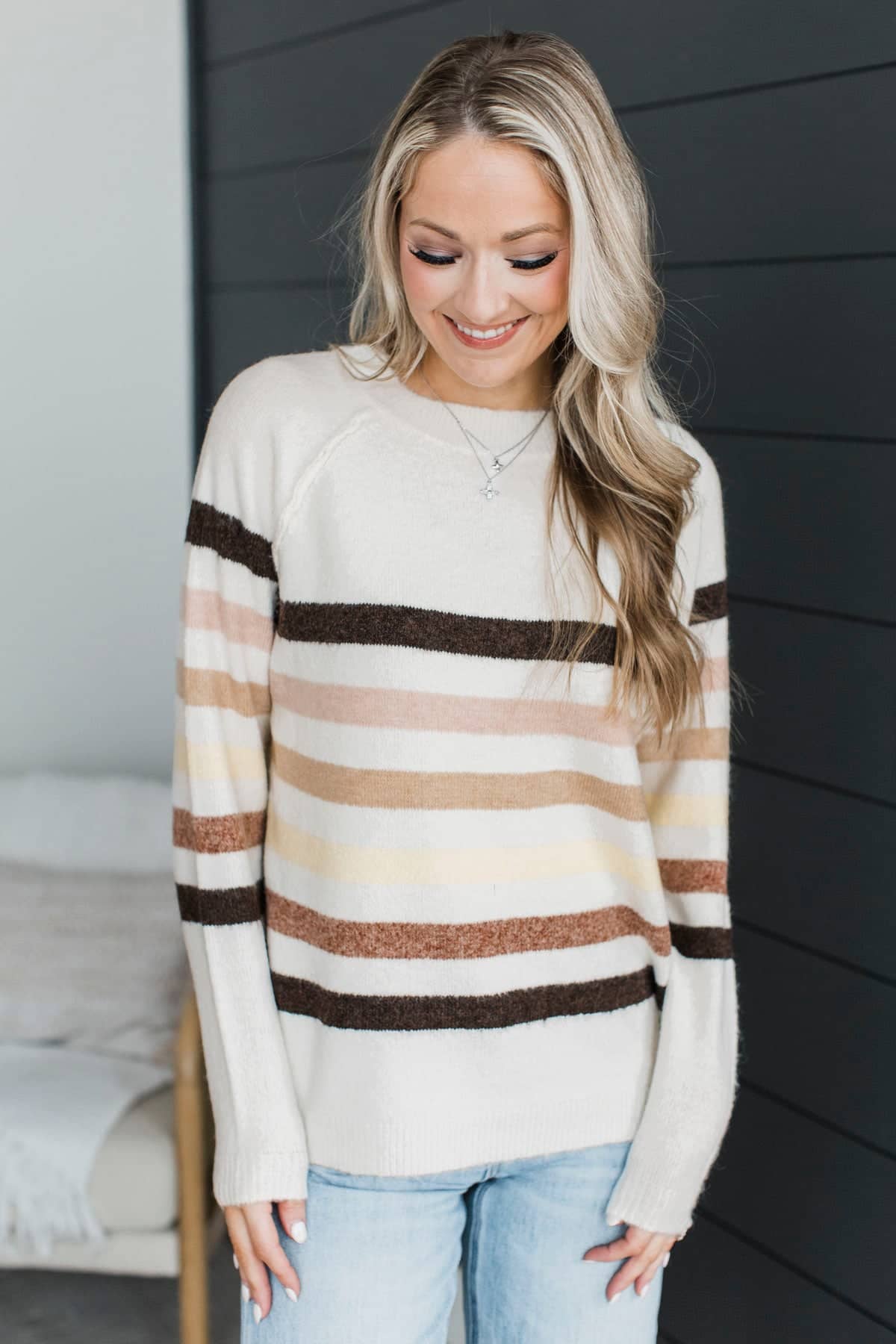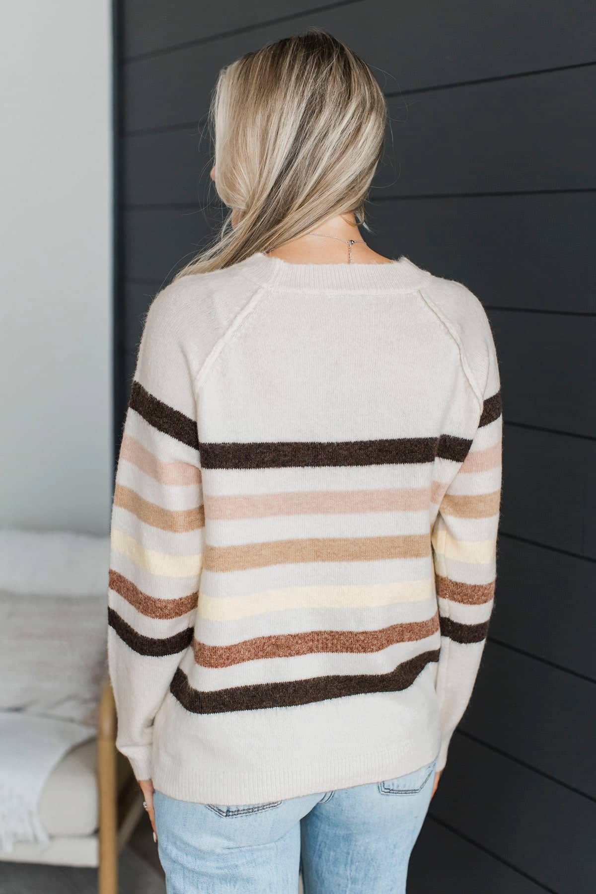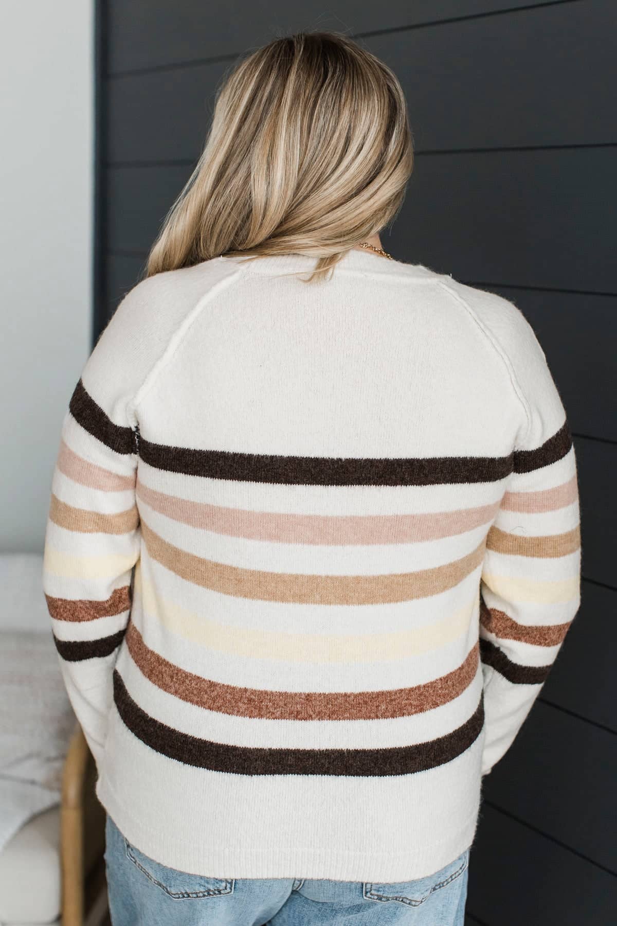 Effortlessly Inspired Striped Knit Sweater- Ivory
