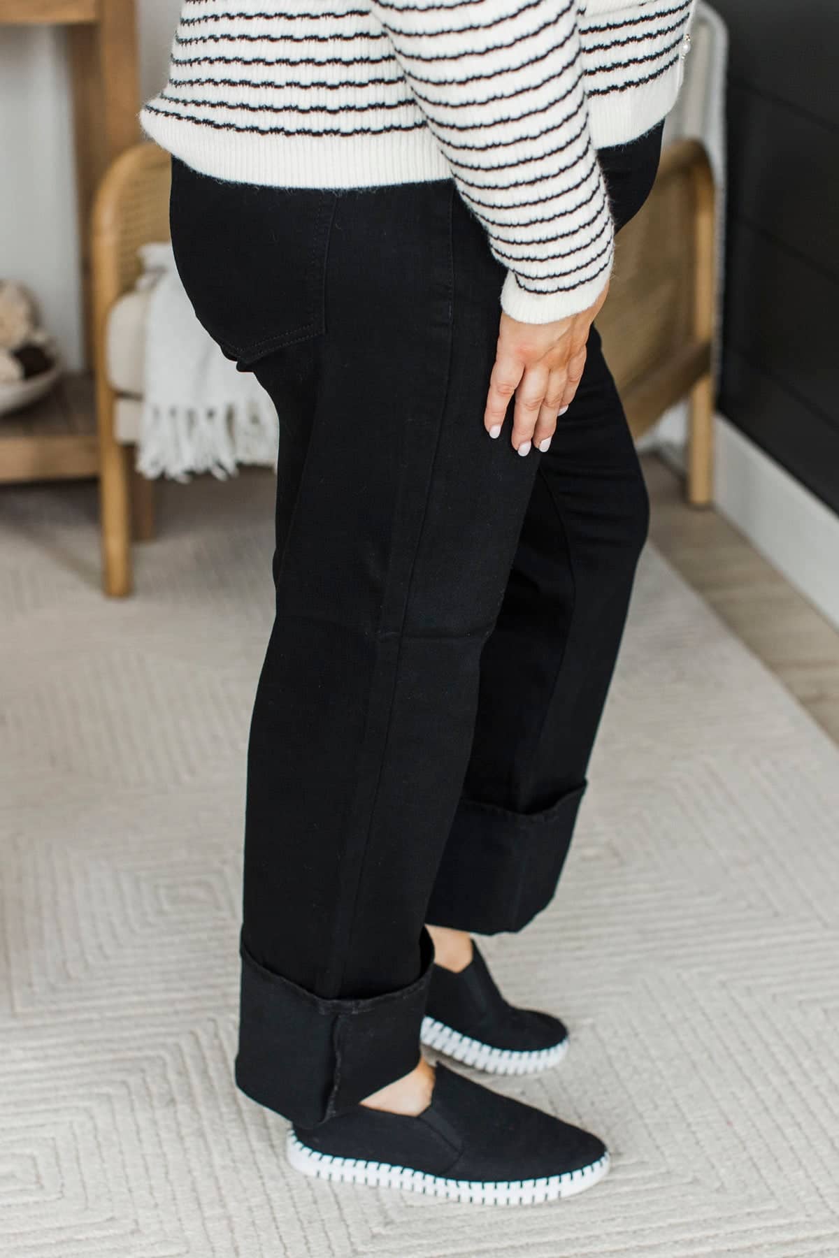 • High-rise straight leg jeans with wide cuffs. *Cuffs can be unrolled.