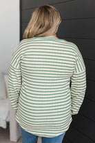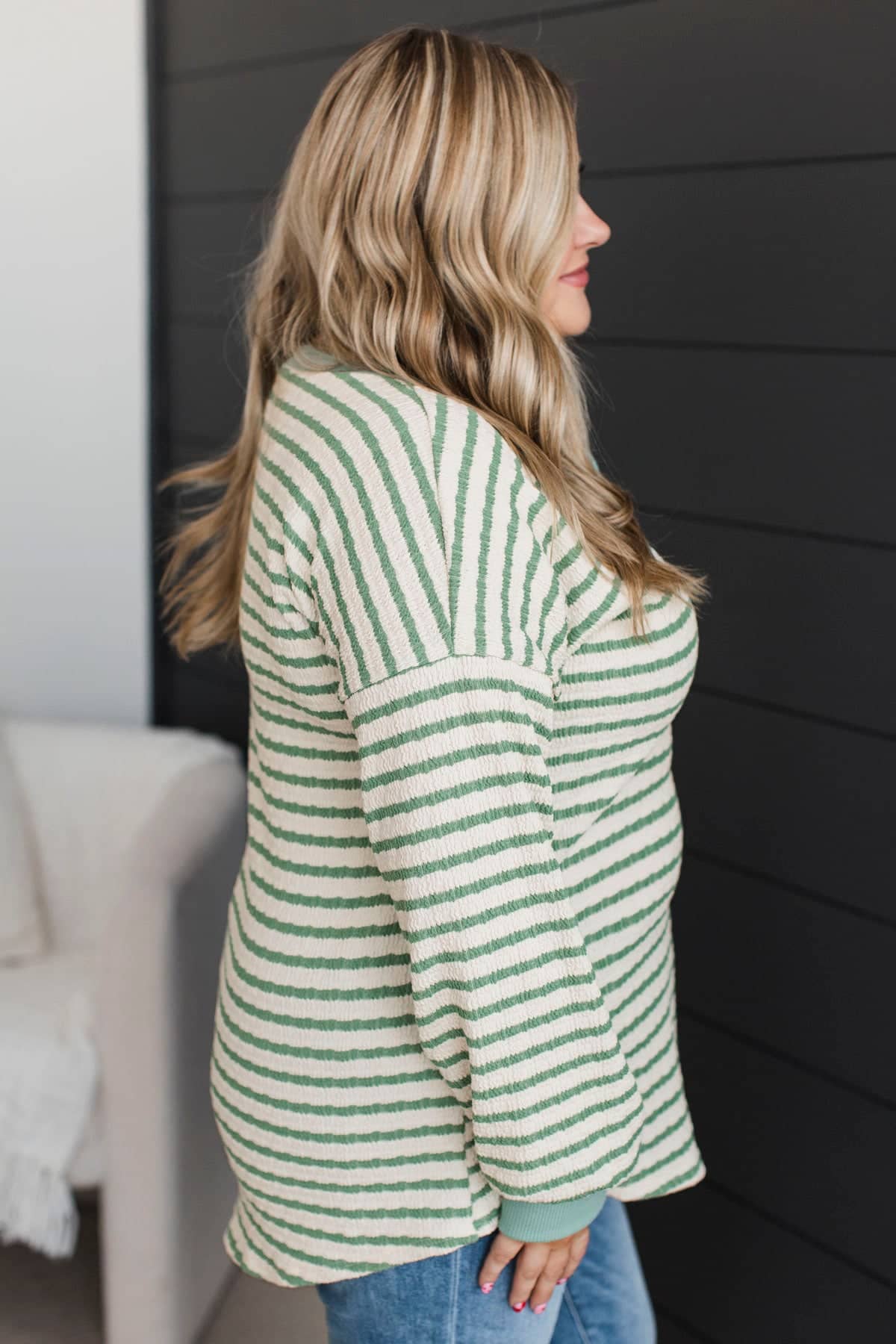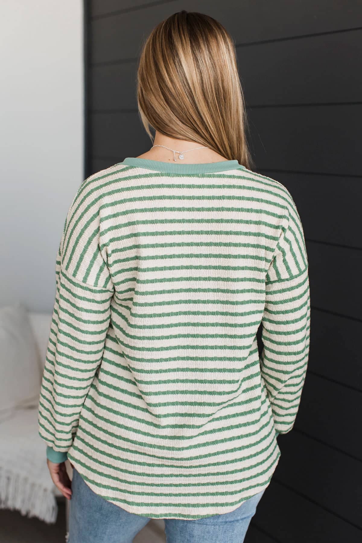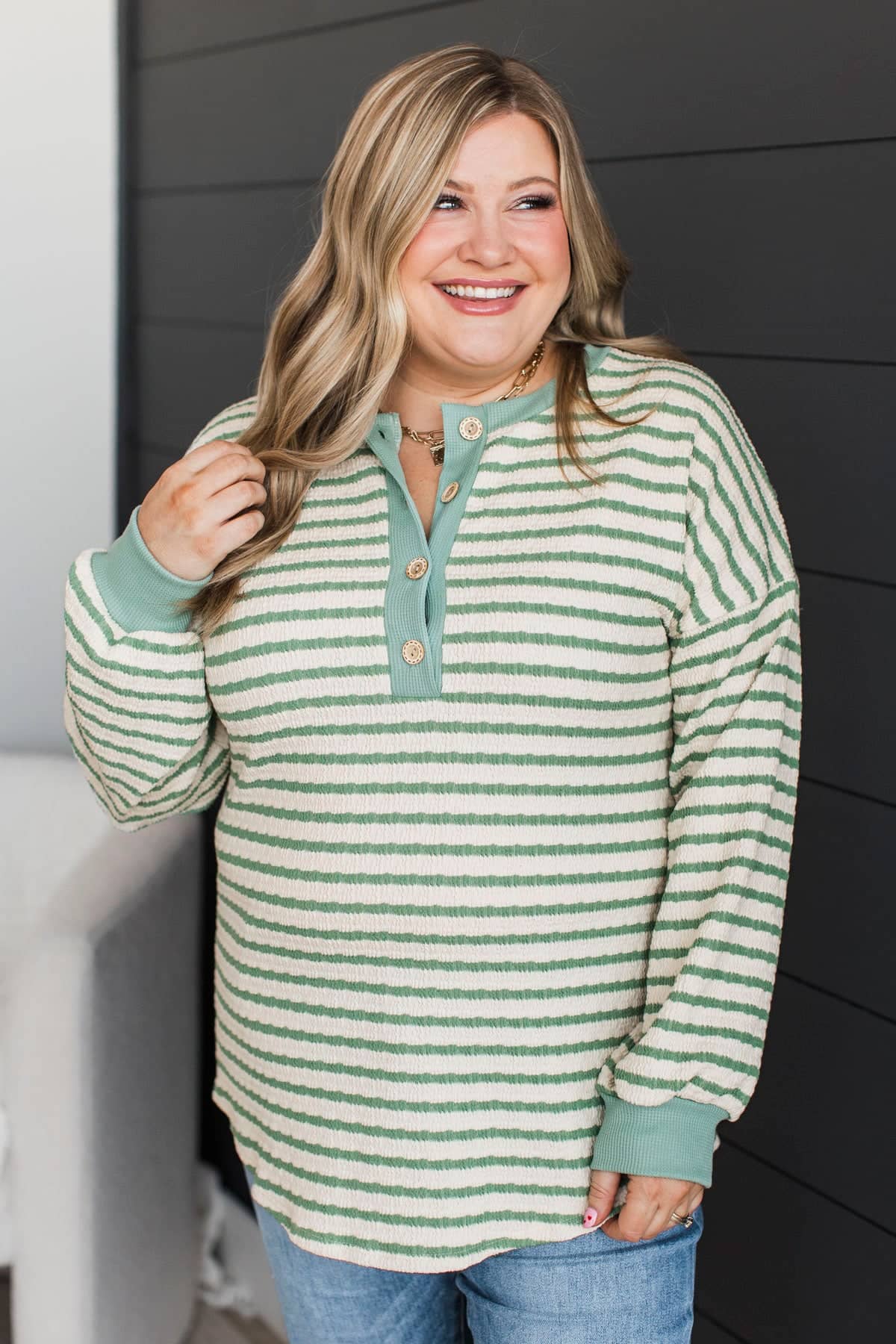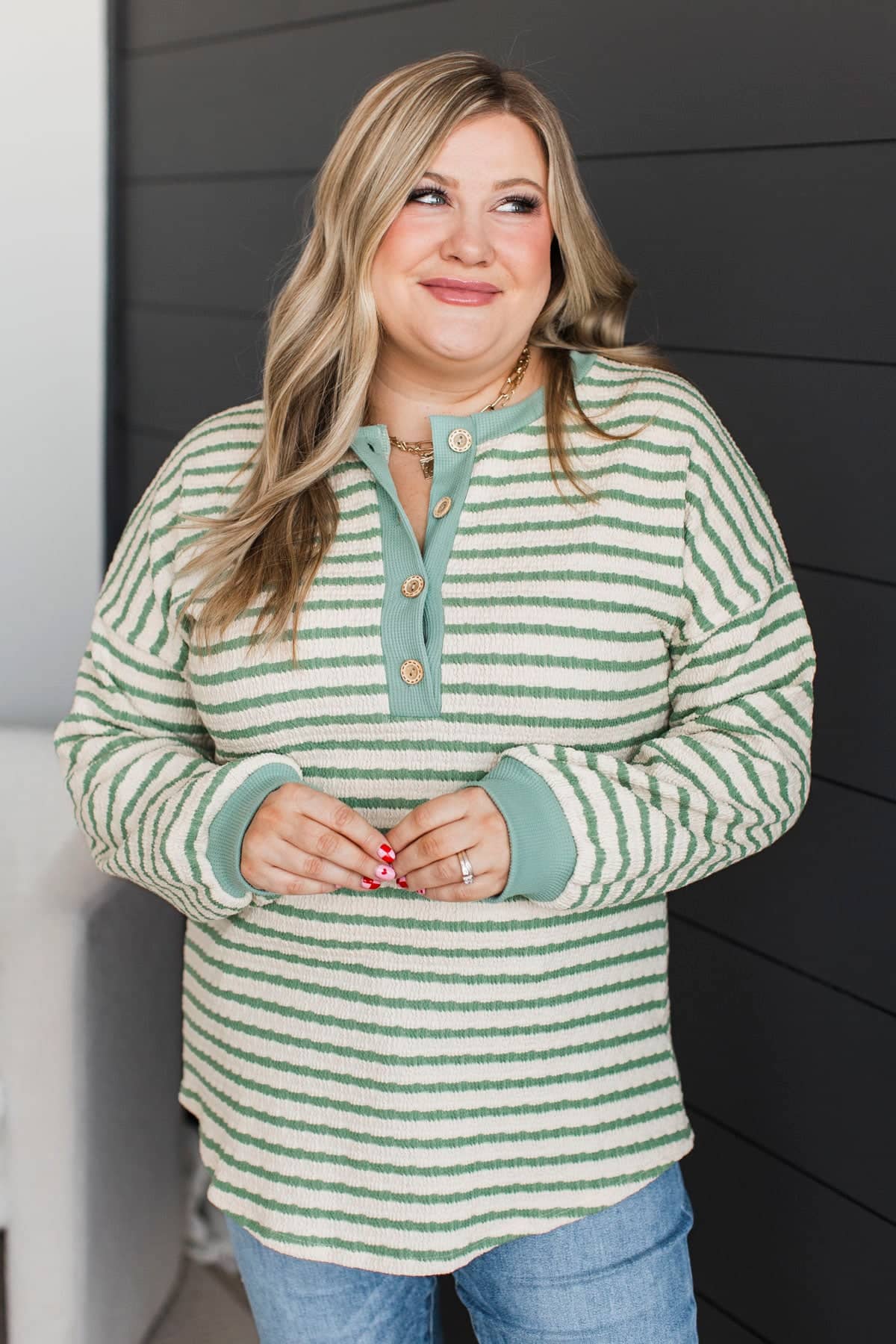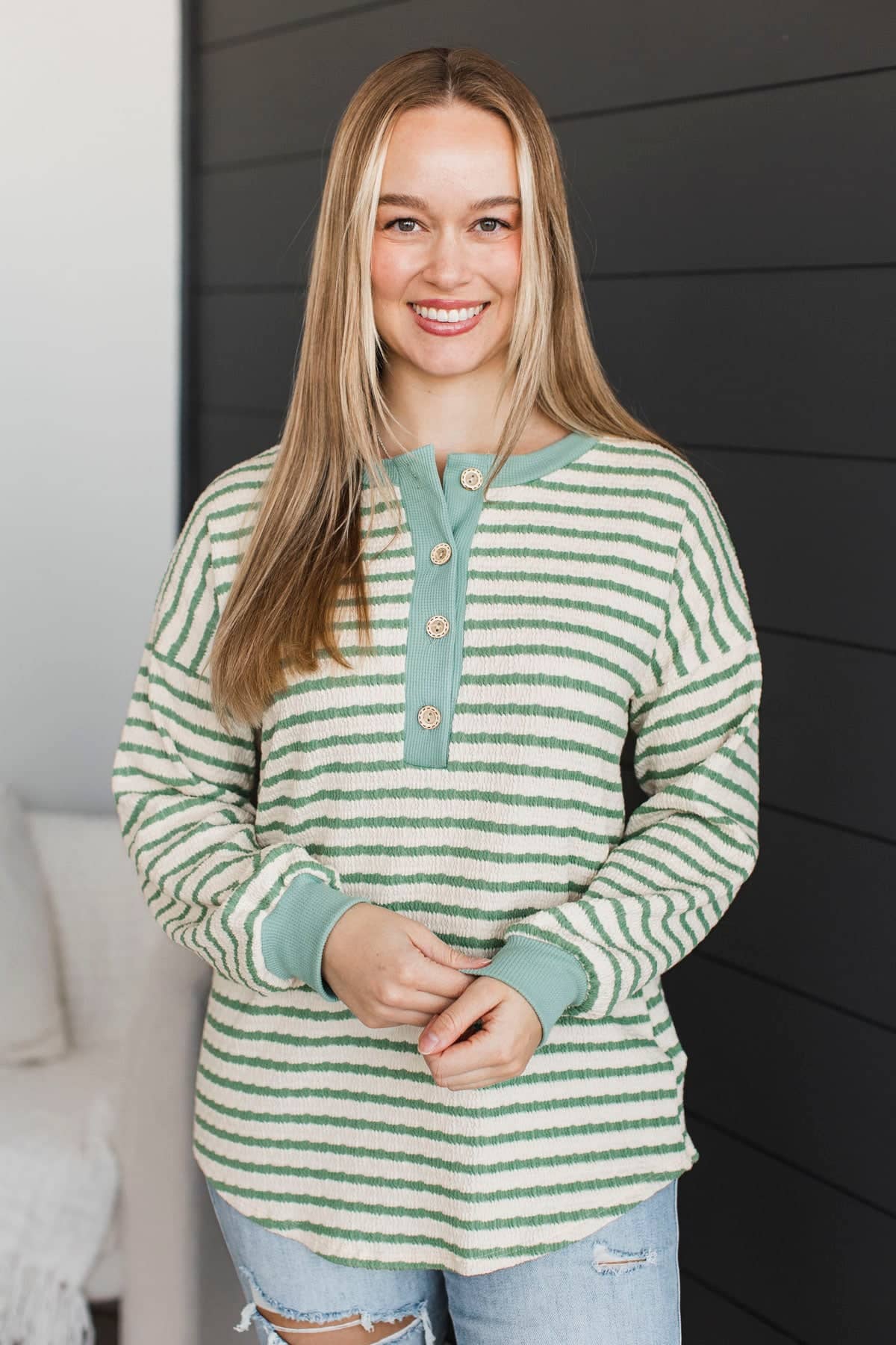 Hello Beautiful Day Striped Henley Top- Ivory & Sage