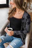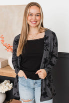 Mindful Presence Open Front Floral Cardigan- Charcoal & Black