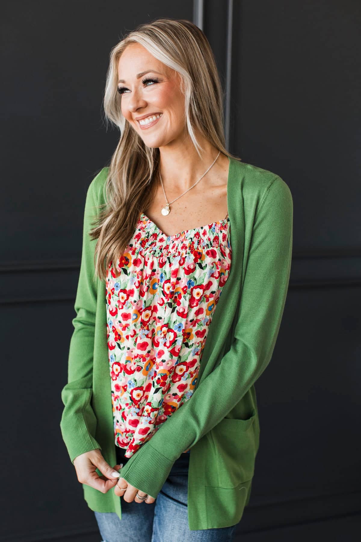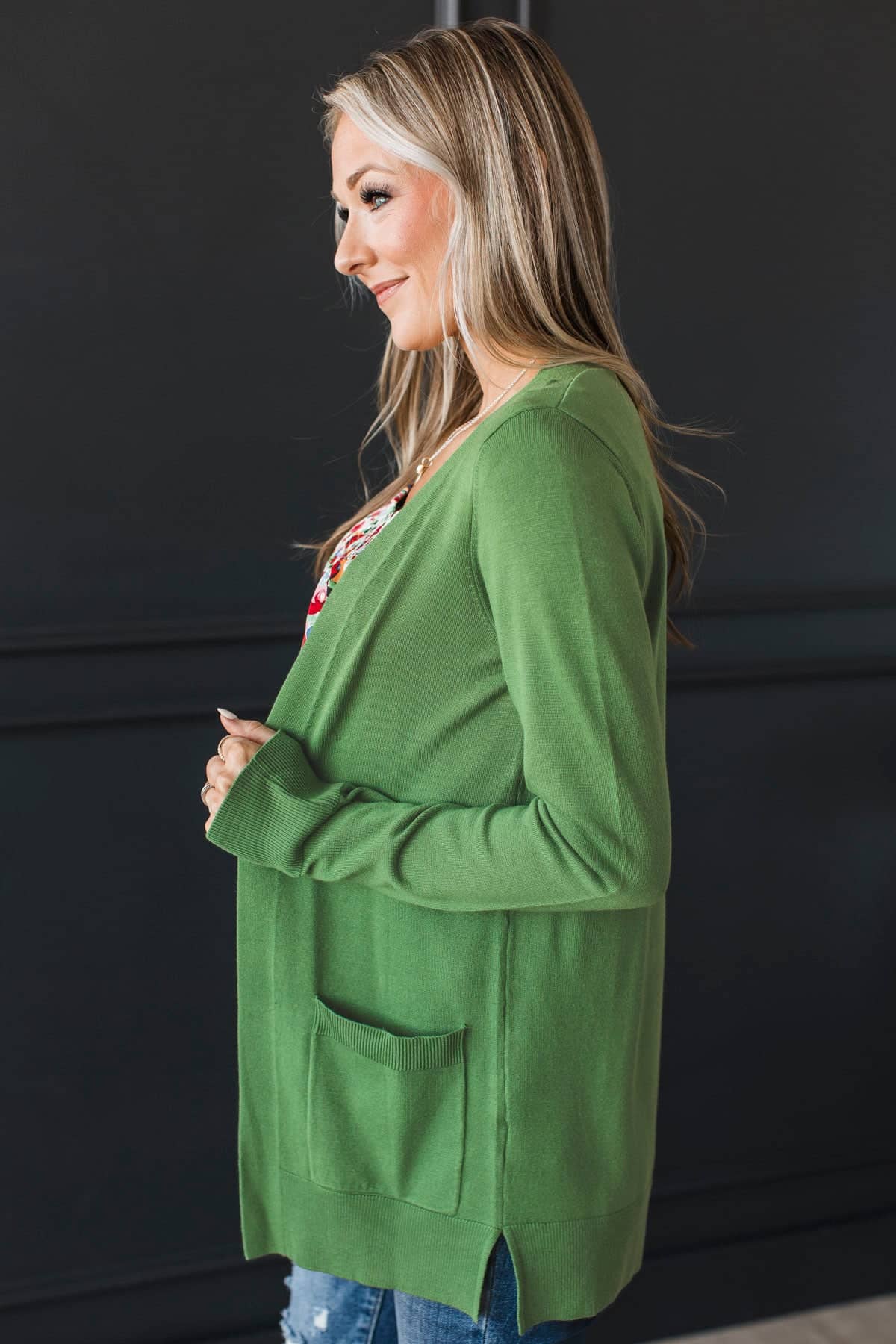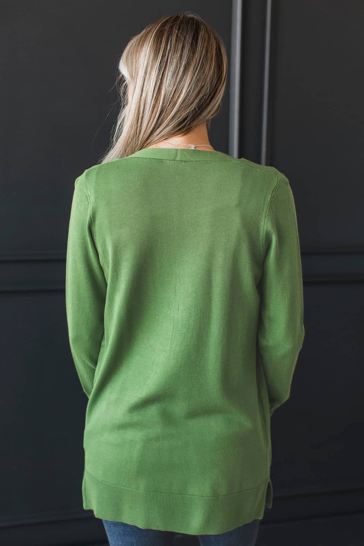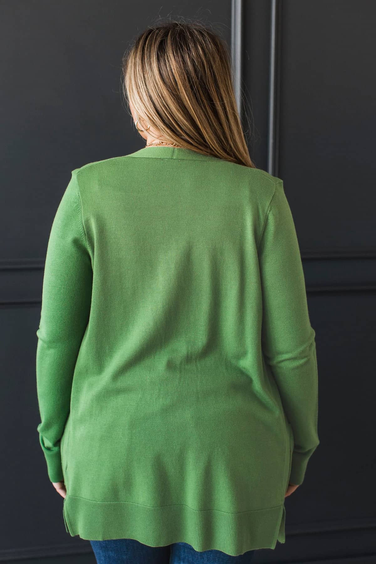 Positive Outlook Open Front Cardigan- Green