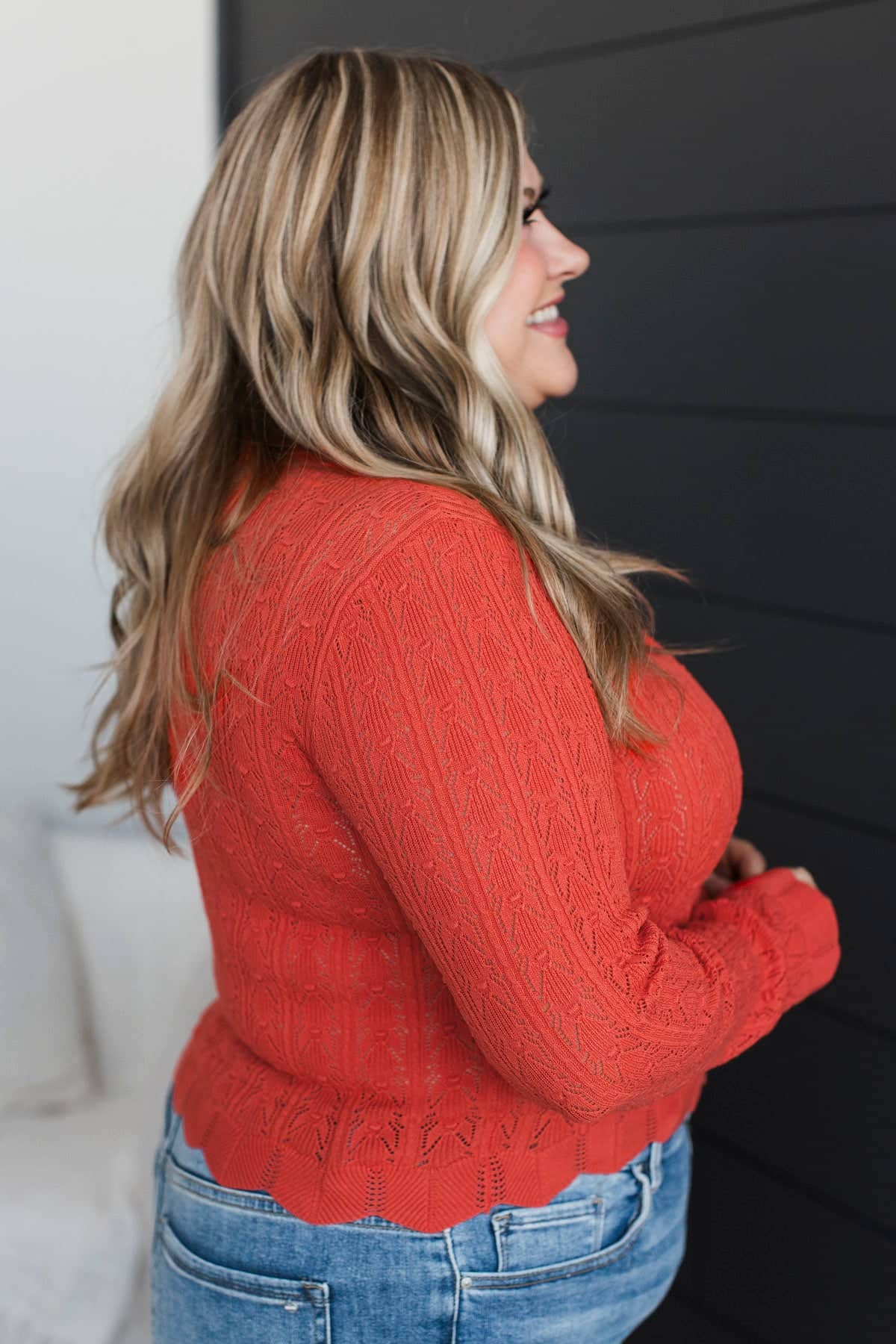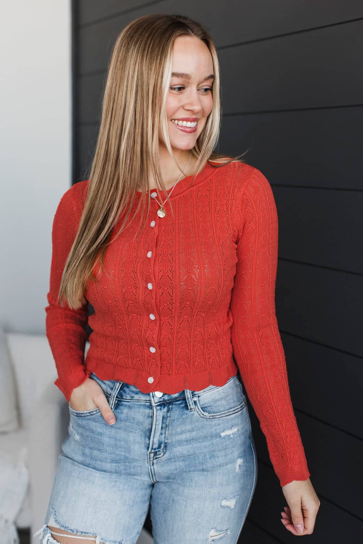 Priceless Memories Pointelle Knit Button Cardigan- Poppy