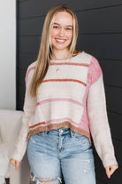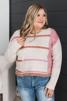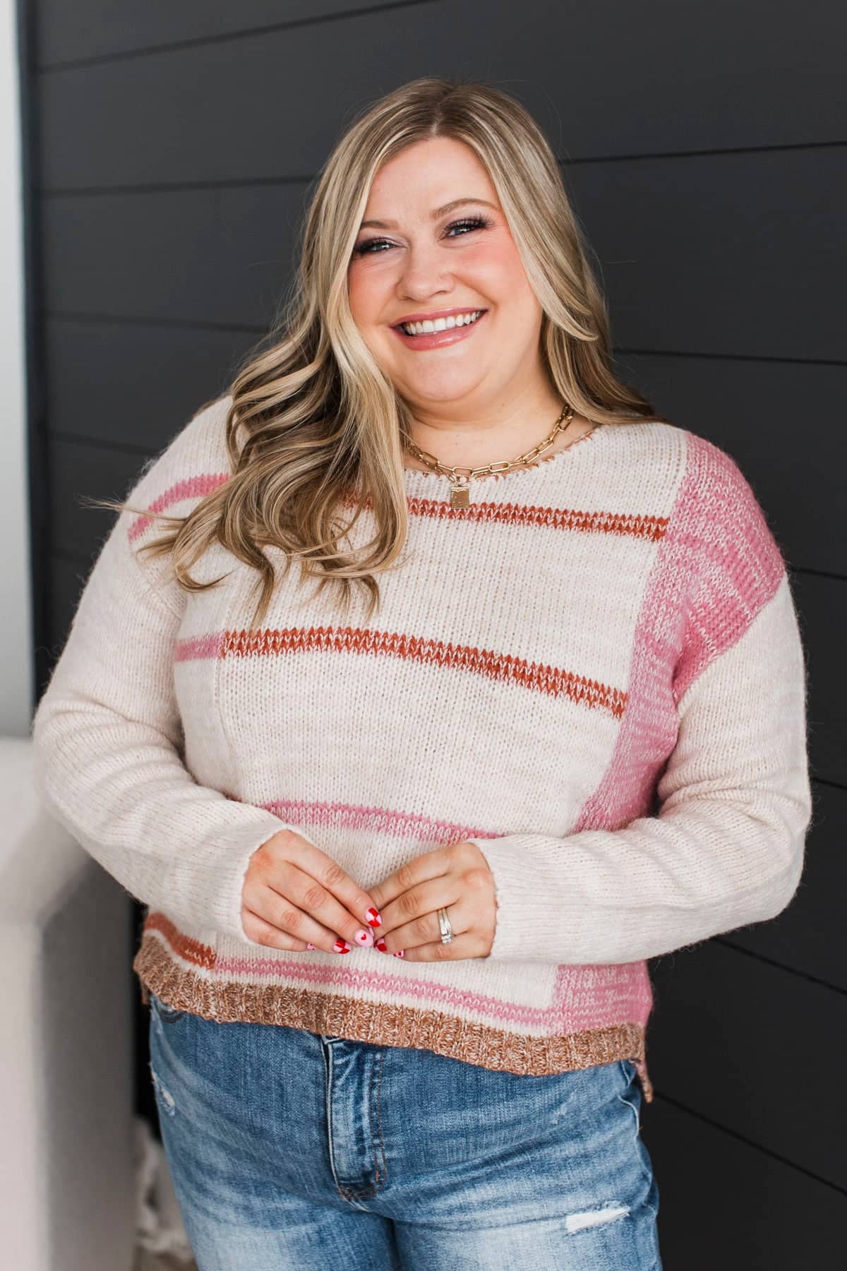 Purely Content Striped Color Block Sweater- Cream & Pink