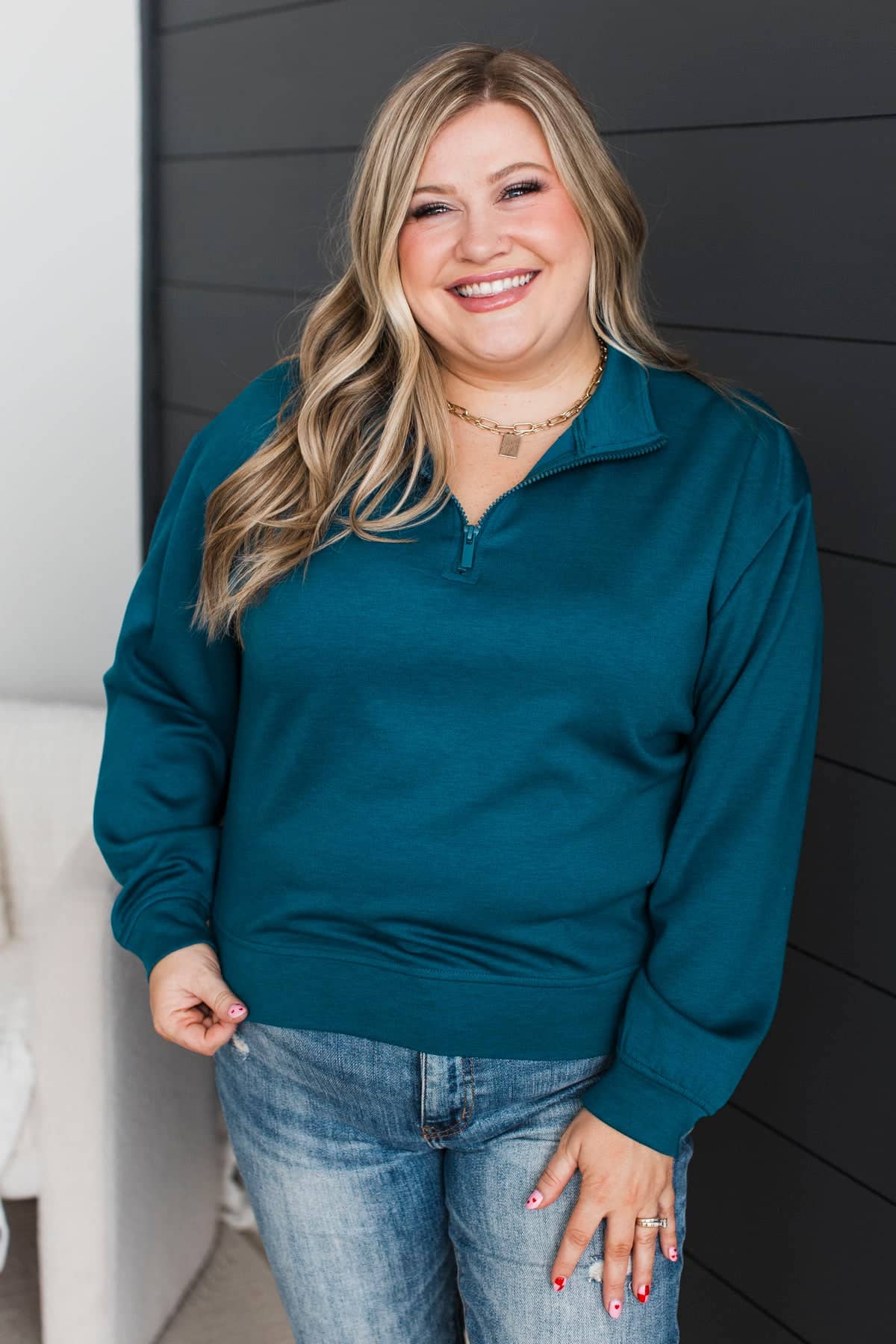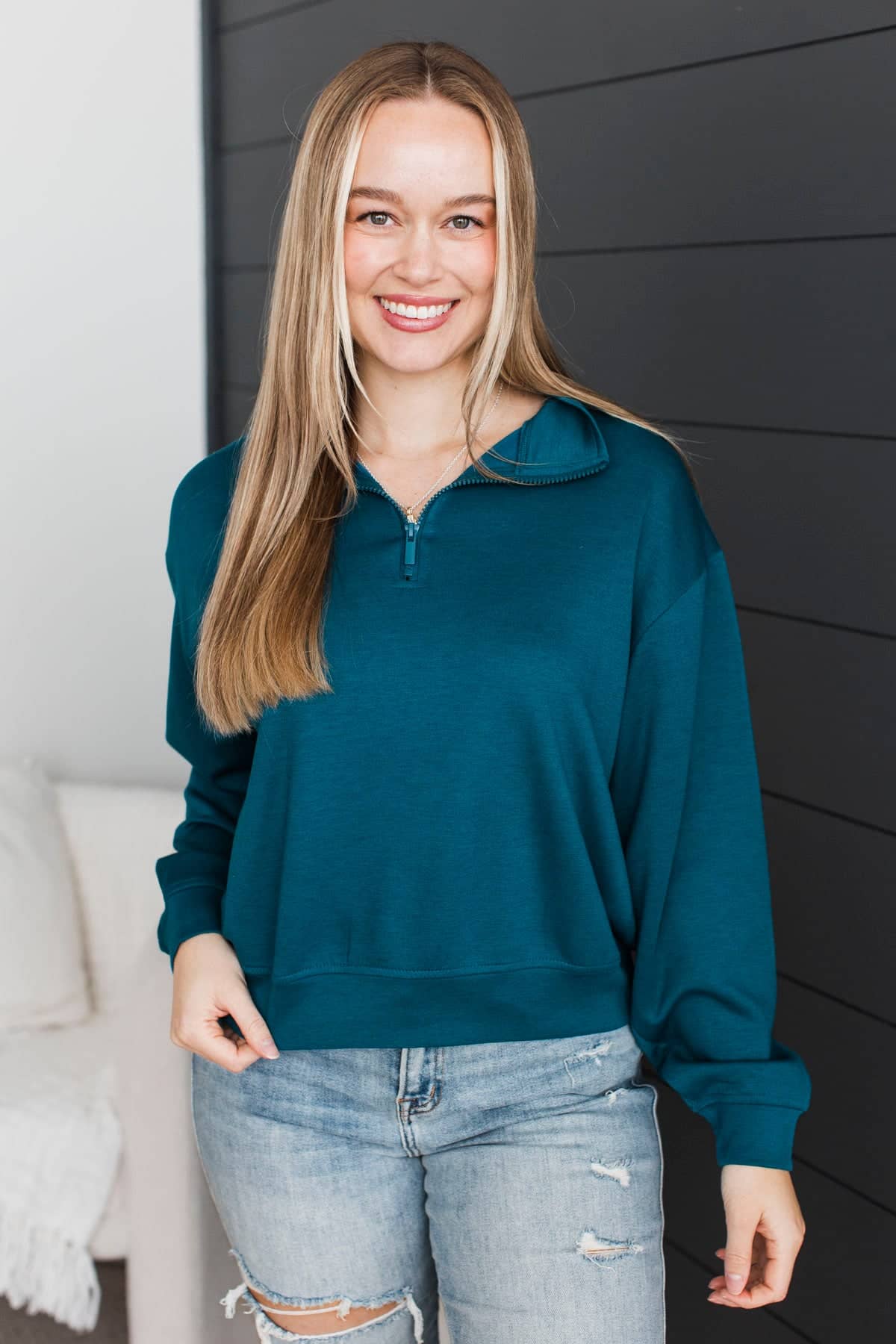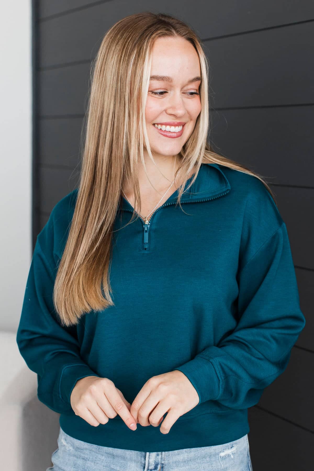 Quietly Happy Lightweight Quarter Zip Pullover- Dark Teal