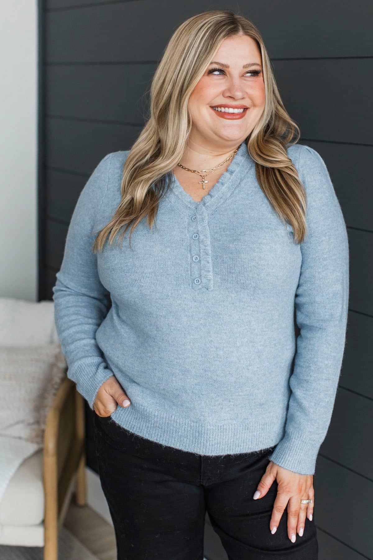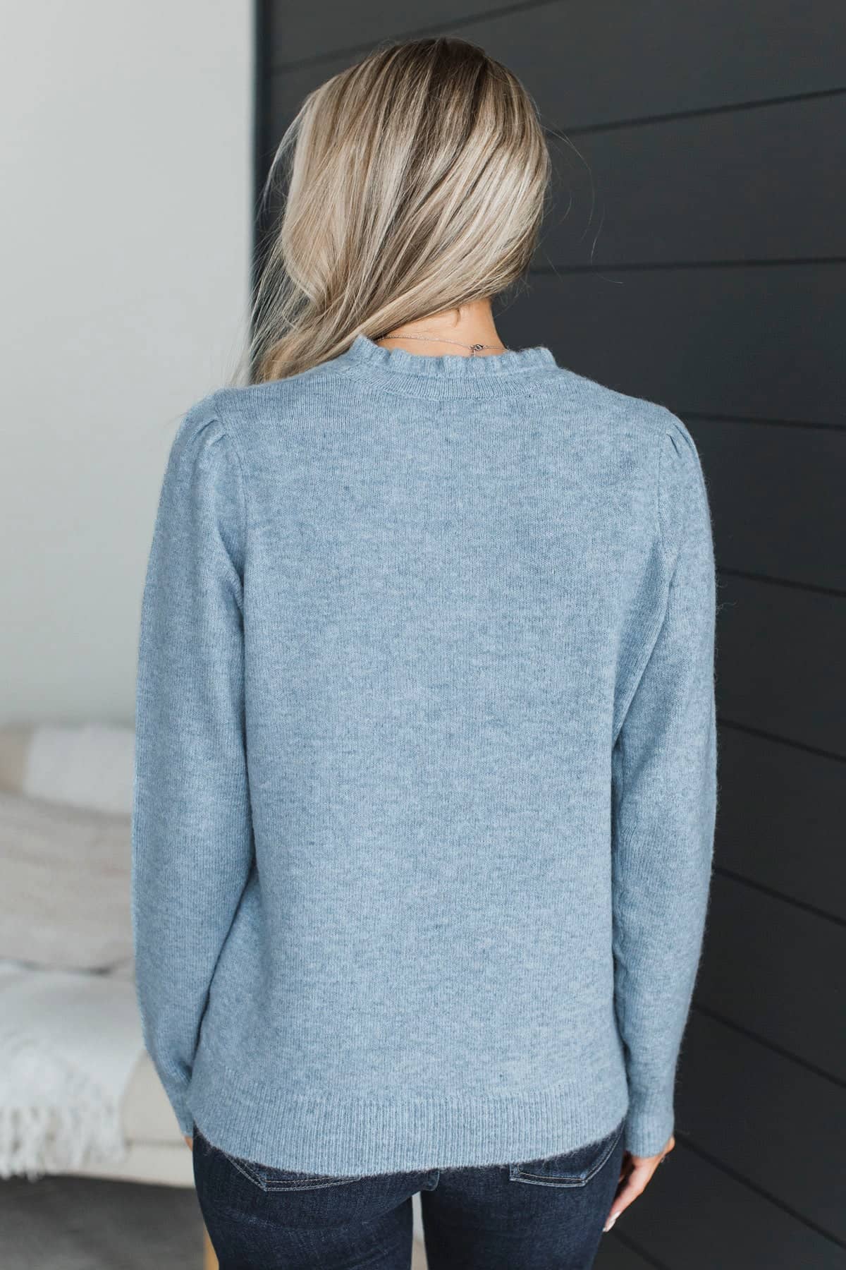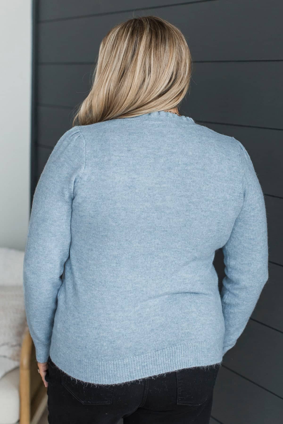 Romantic Love Ruffle V-Neck Sweater- Blue