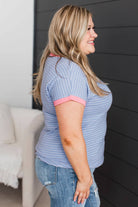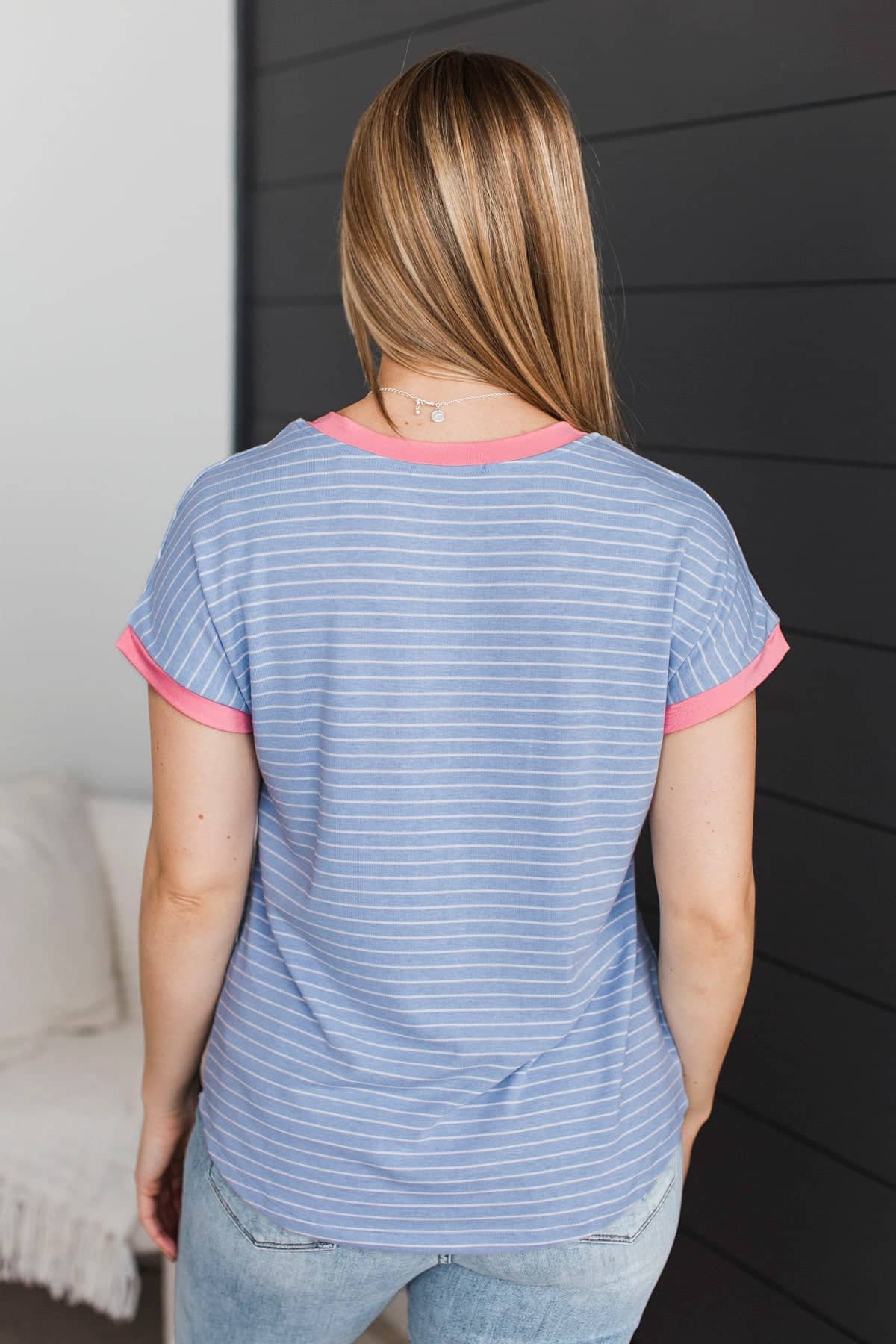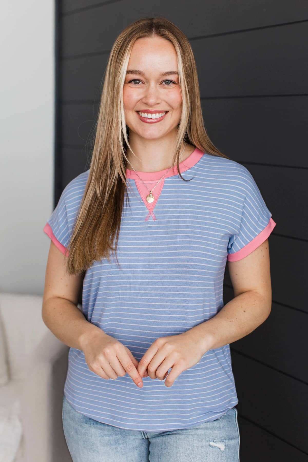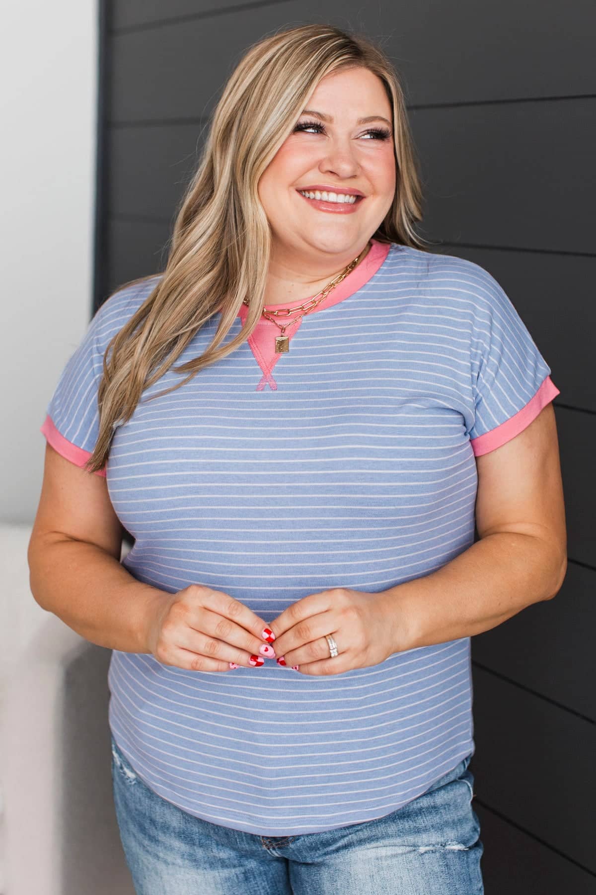 Sprinkles Of Delight Striped Contrast Top- Denim Blue & Pink