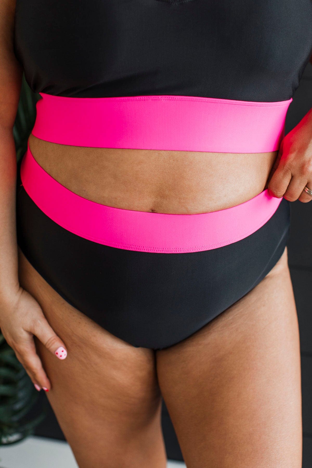 Ray Of Sunshine Swim Bottoms- Black & Neon Pink