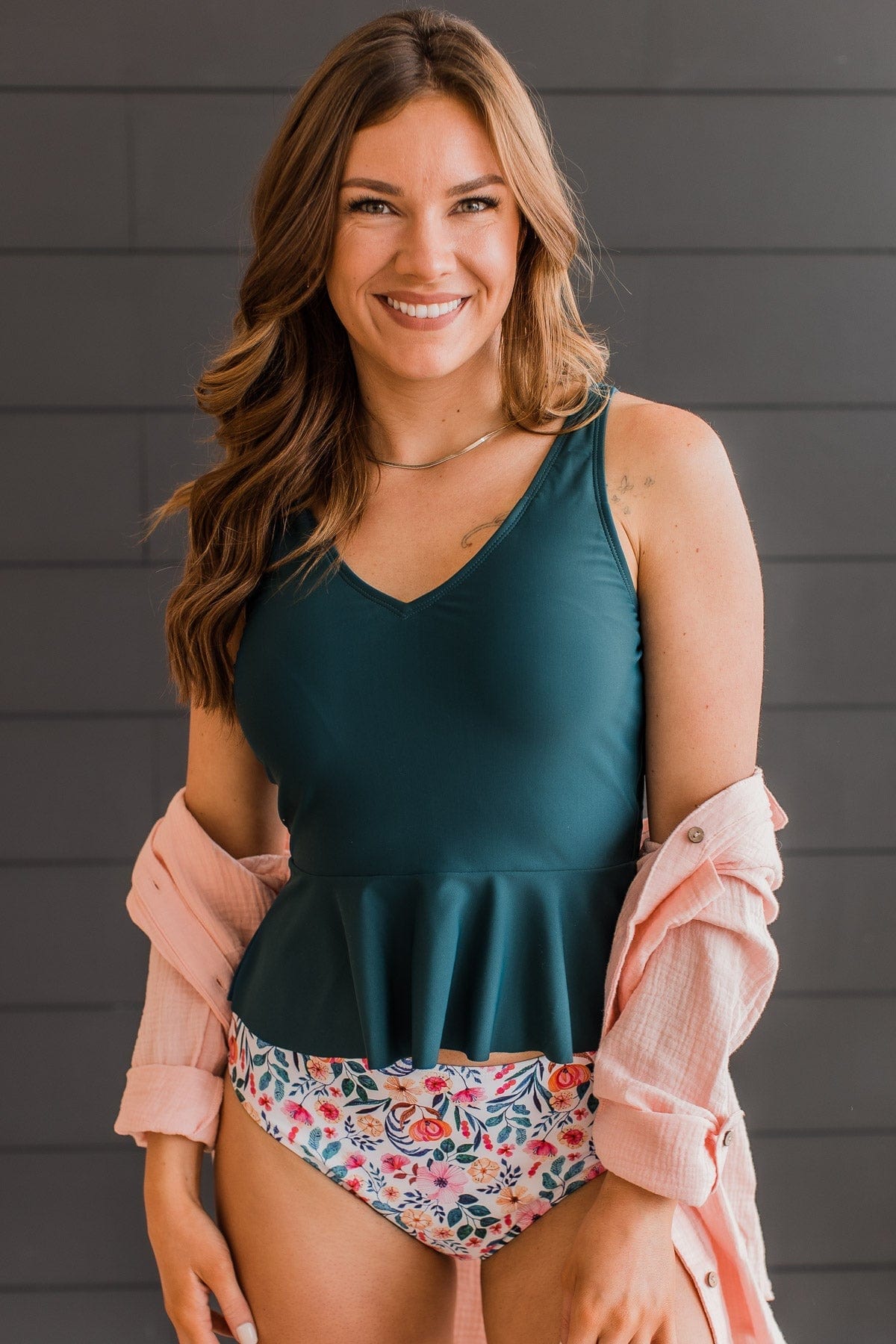 Near To Paradise Swim Bottoms- Teal & Ivory Floral