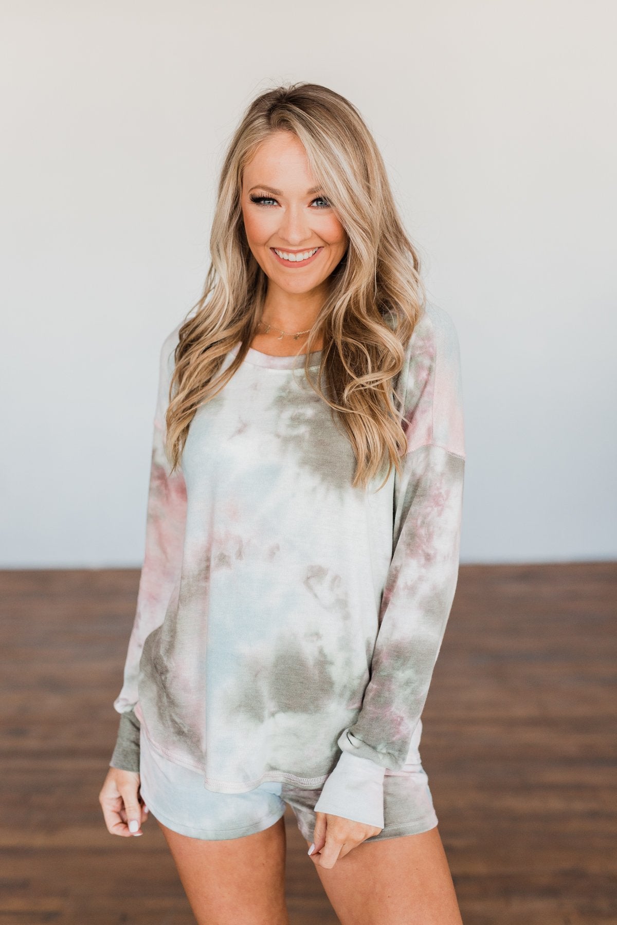 Tie Dye Lounge Shorts- Blue, Peach, & Olive