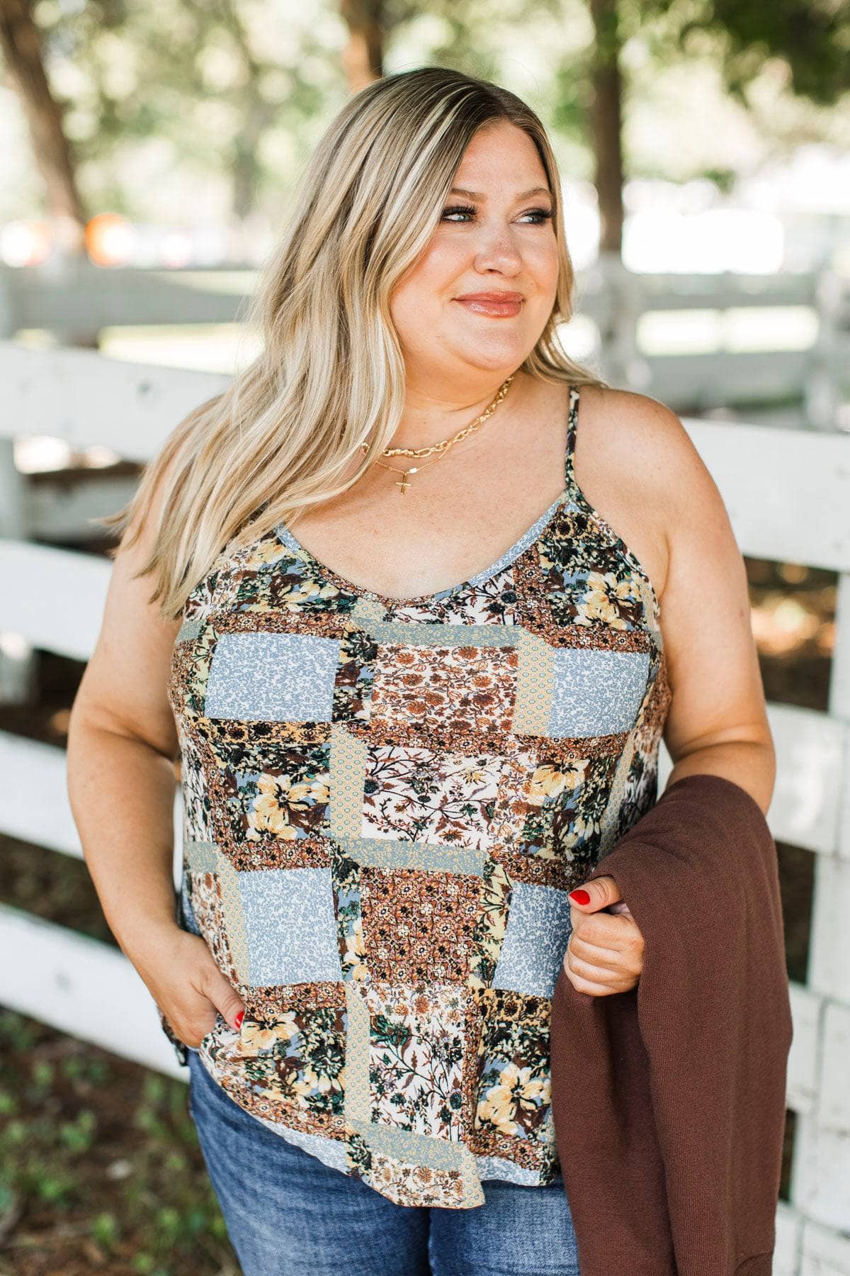 Pretty Awesome Patchwork Tank Top- Brown Multi