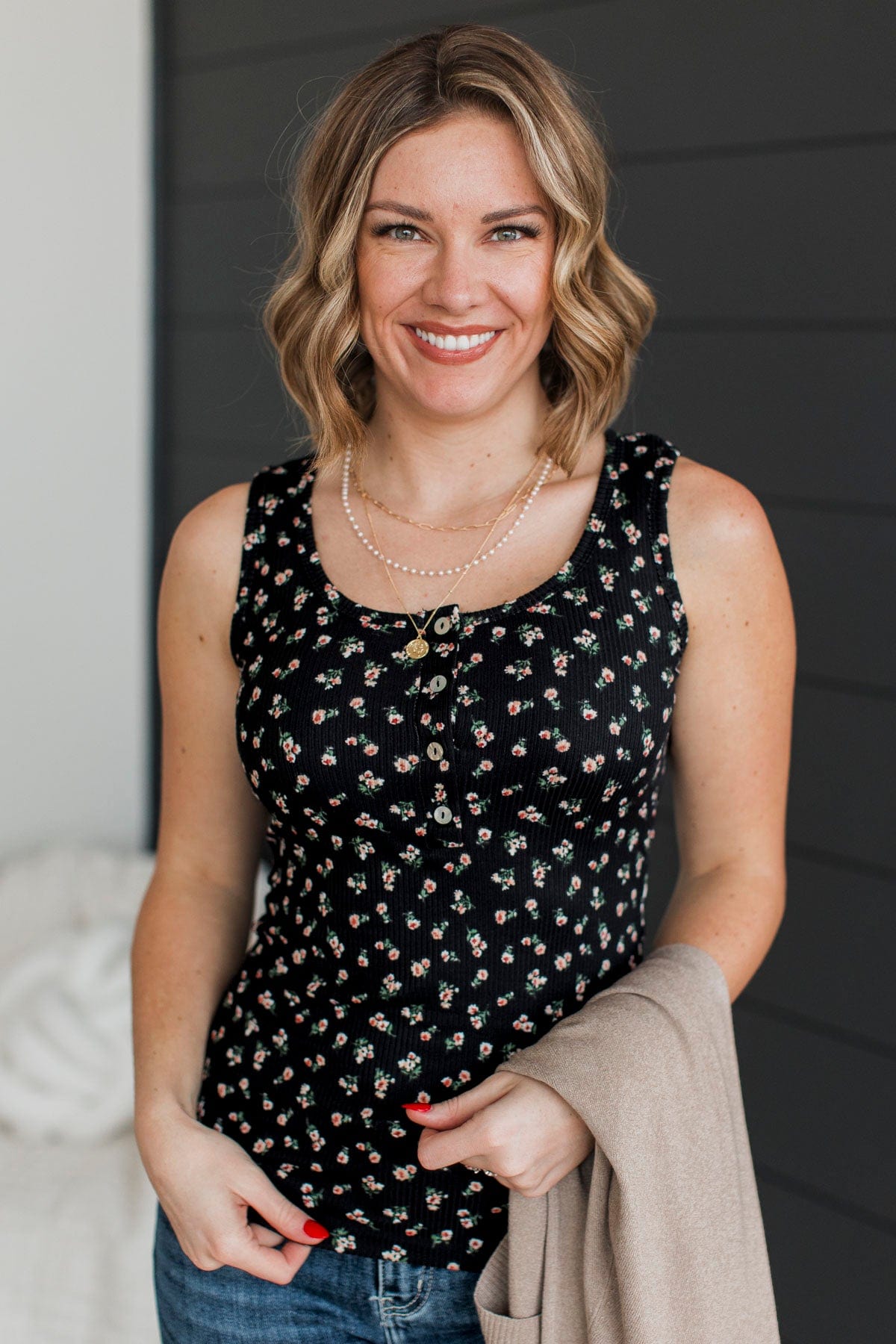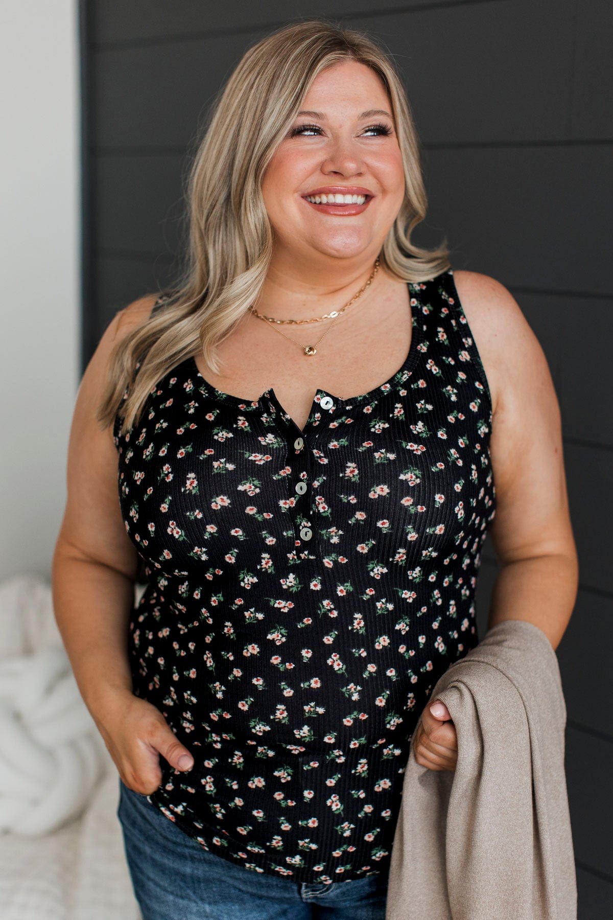 Gives Me Life Floral Tank Top- Black