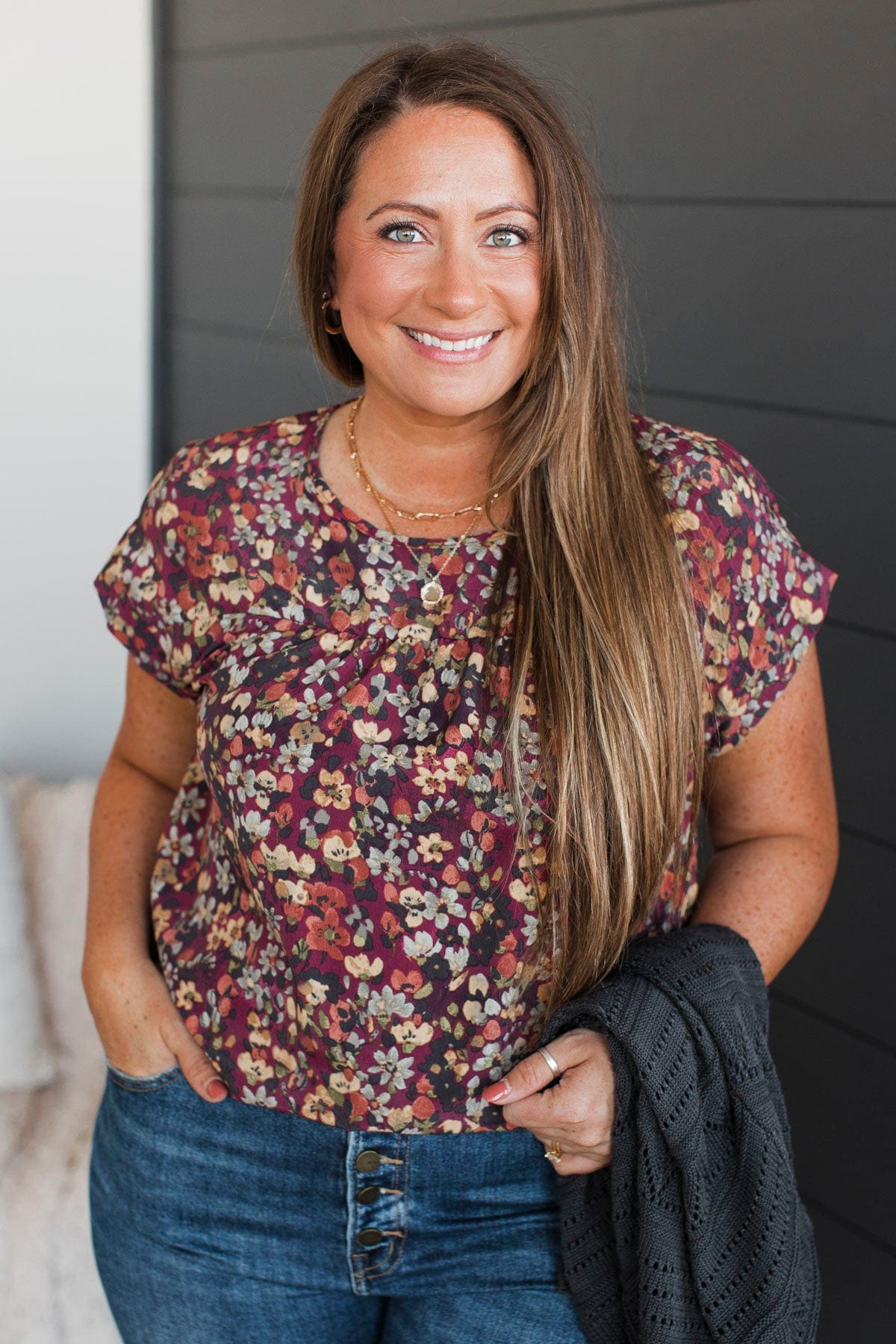 Finest Hour Short Sleeve Floral Top- Burgundy