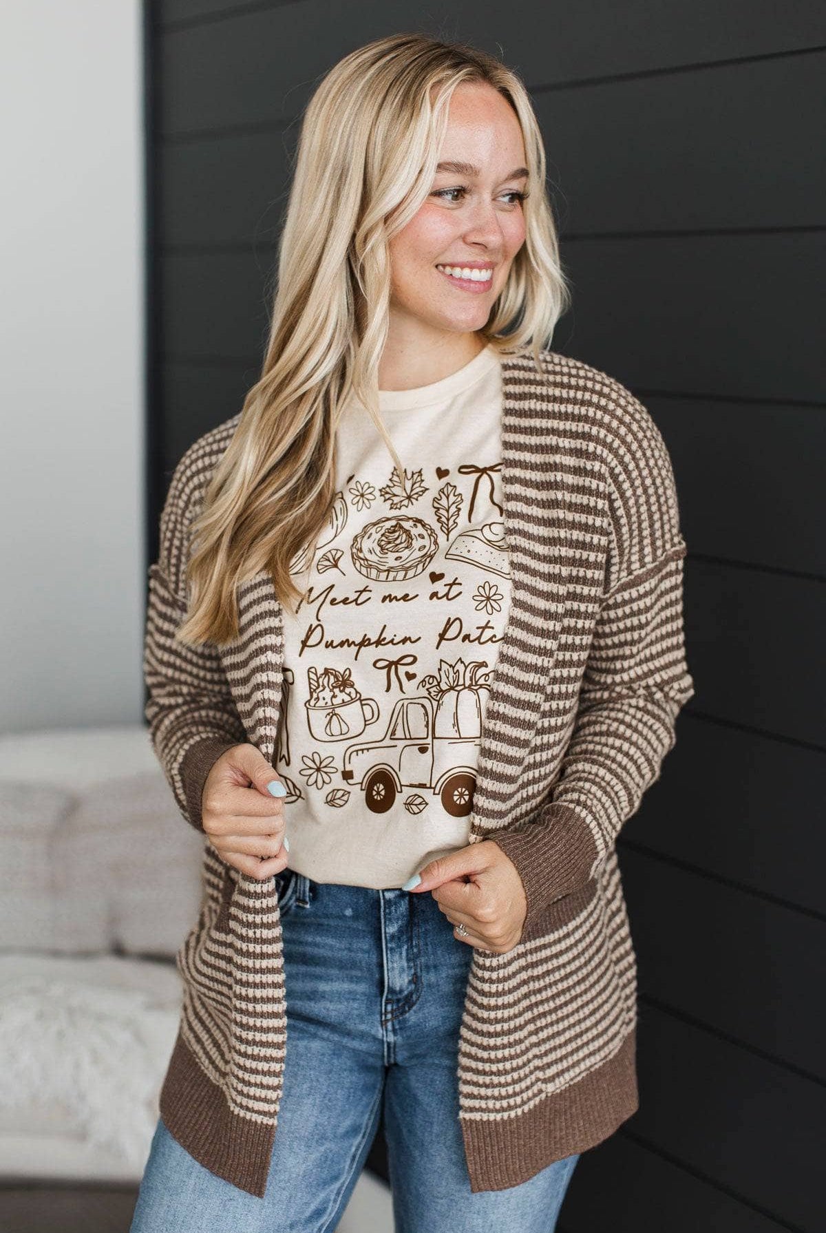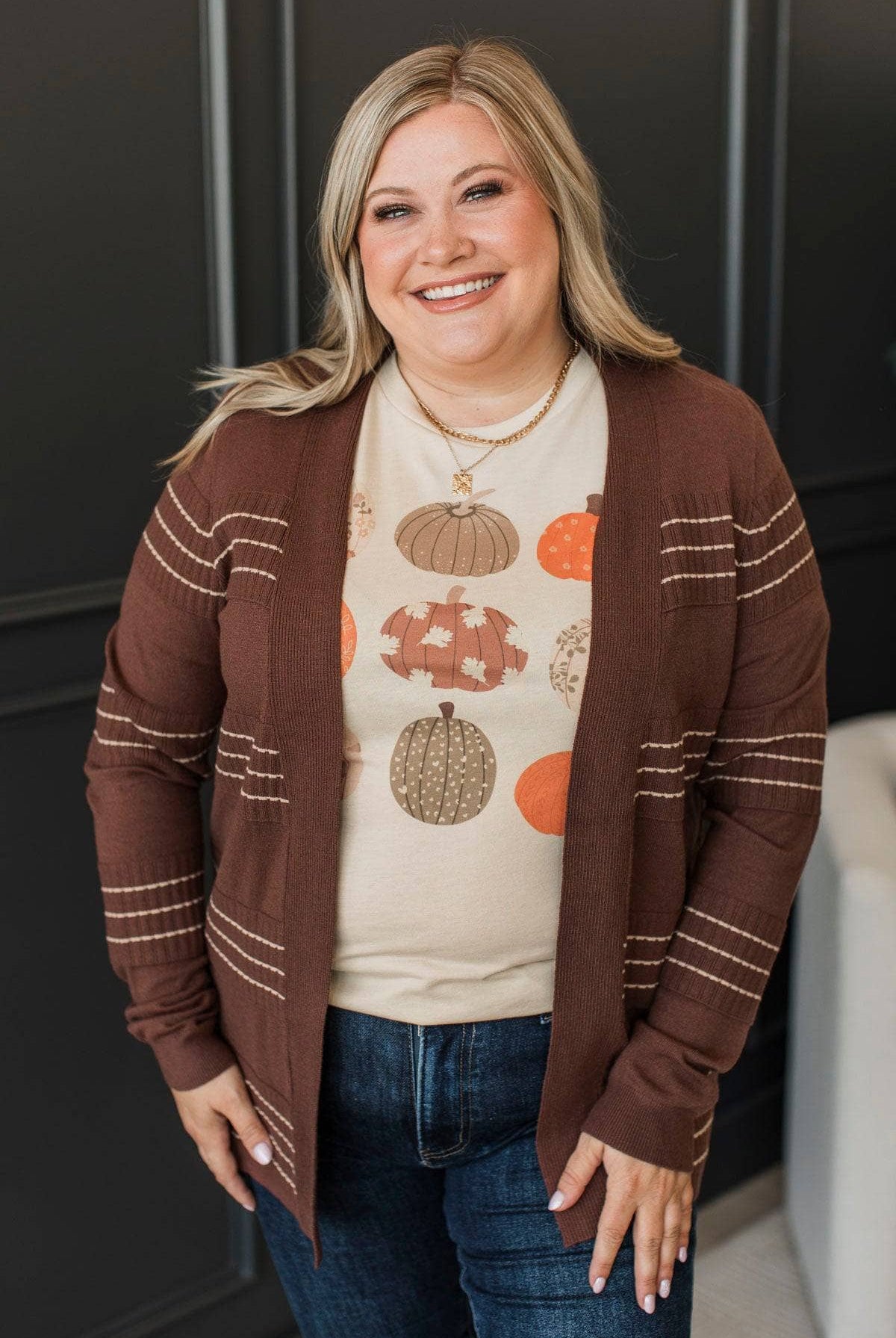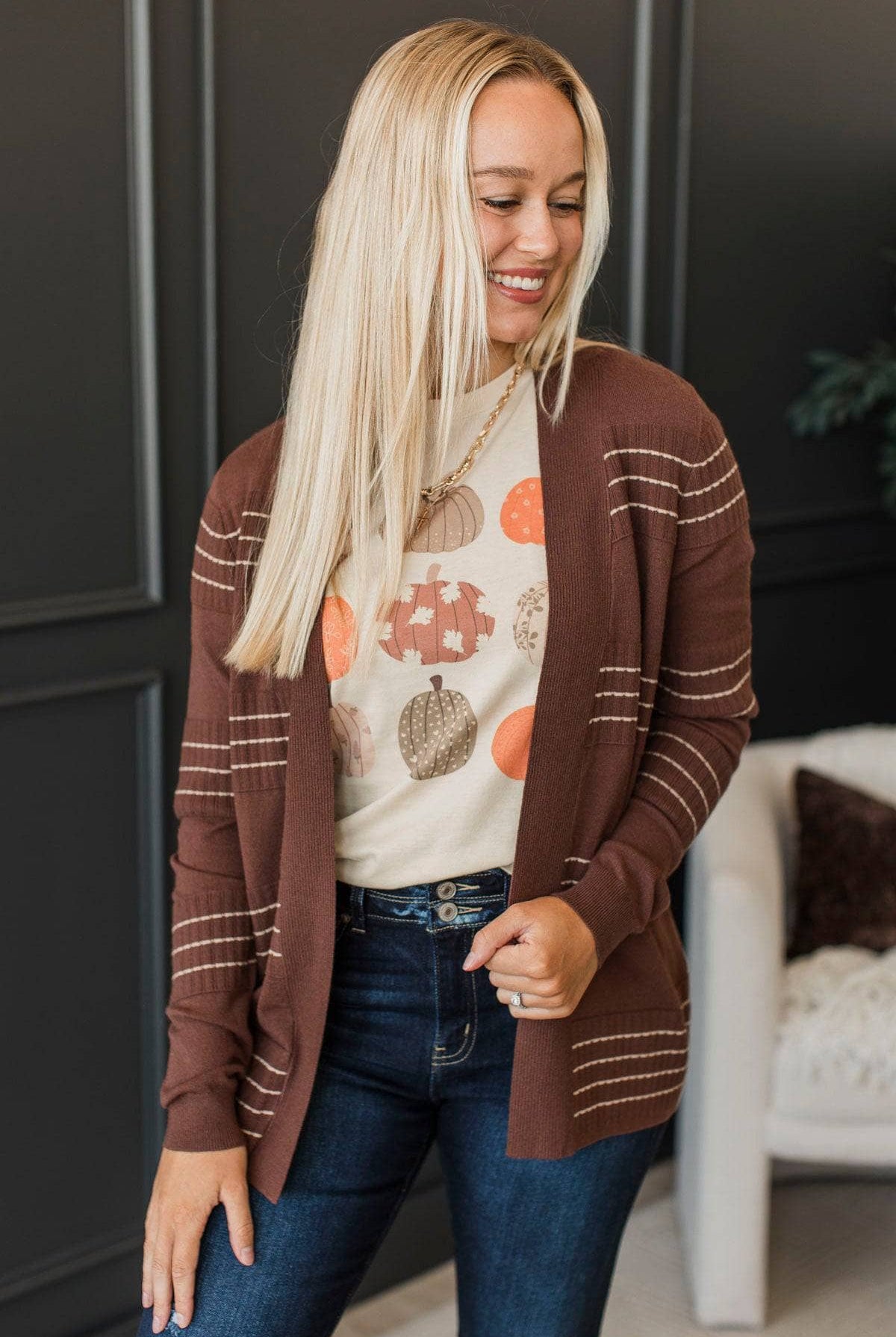 Keep In Mind Stitch Stripe Cardigan- Chocolate