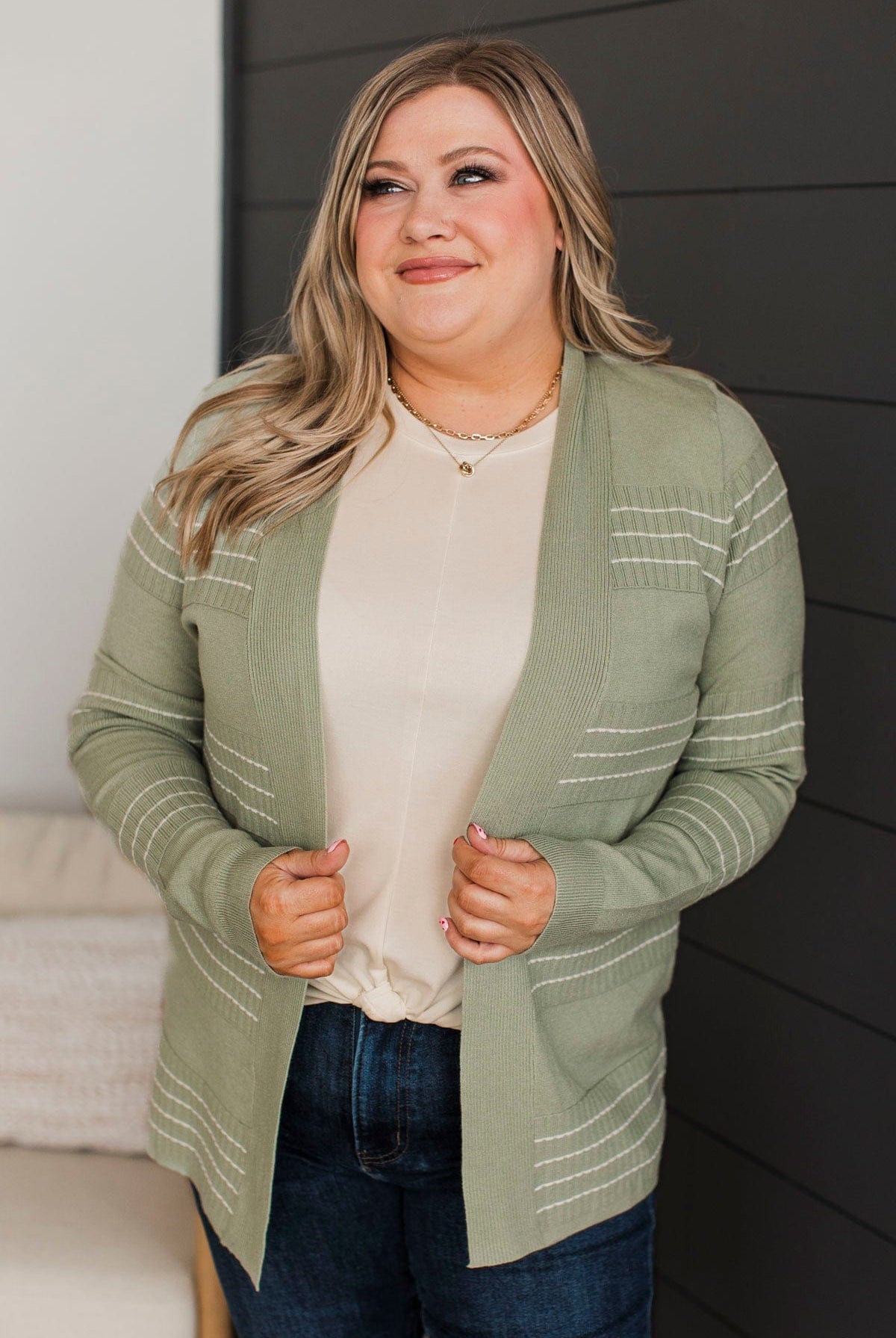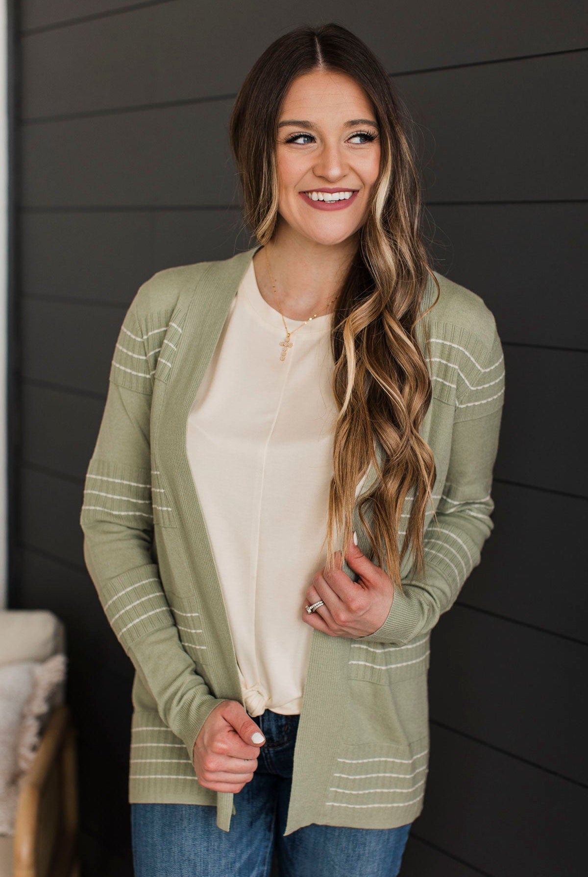 Keep In Mind Stitch Stripe Cardigan- Sage