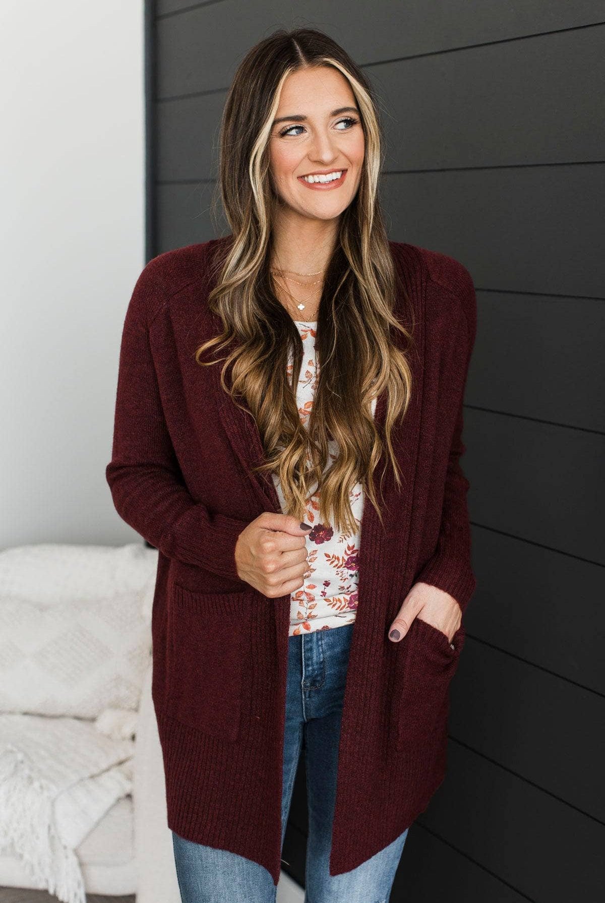 Embrace Today Open Front Knit Cardigan- Dark Plum