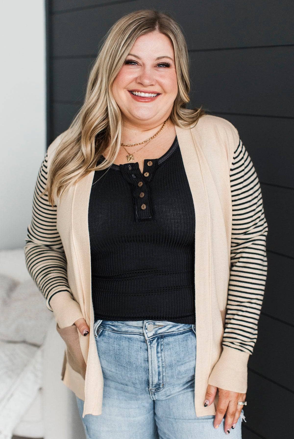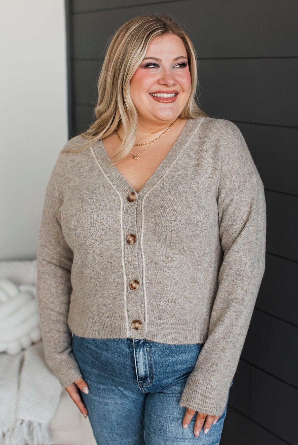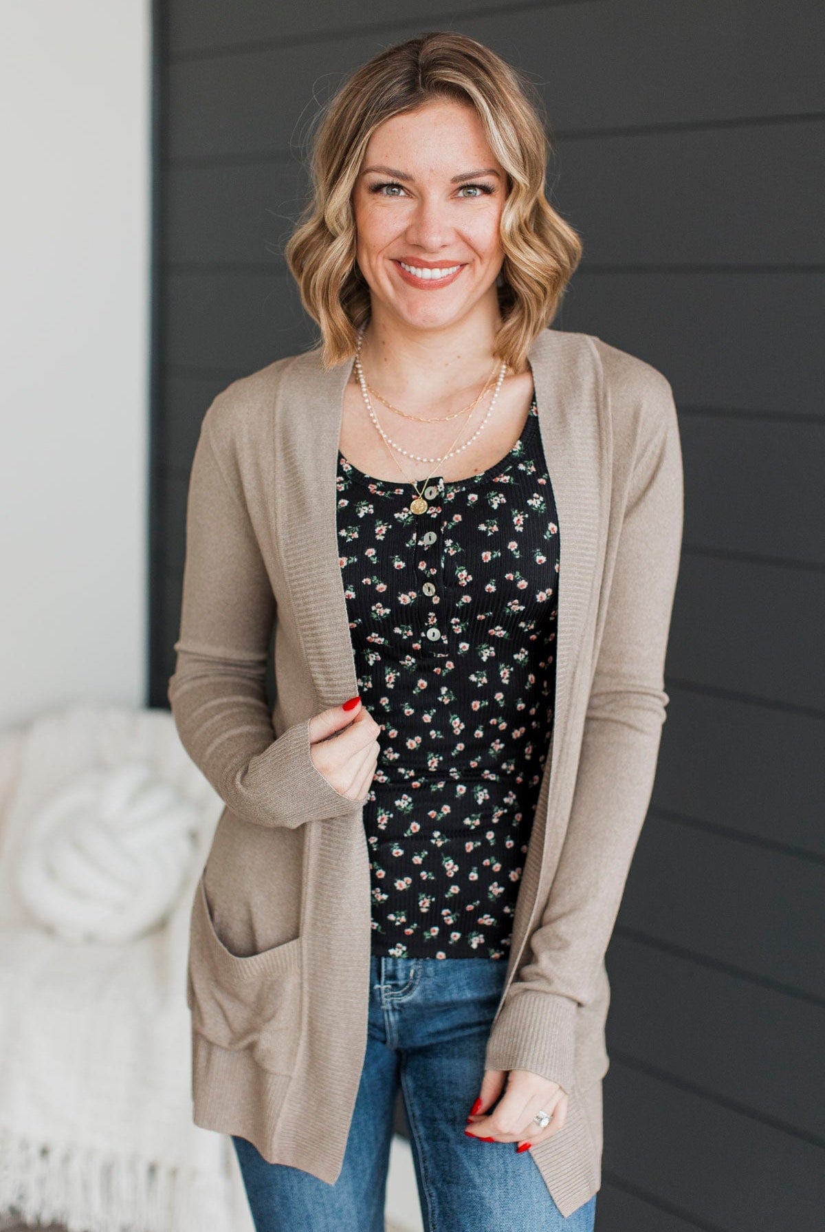 Find Me Here Open Front Cardigan- Taupe & Cream