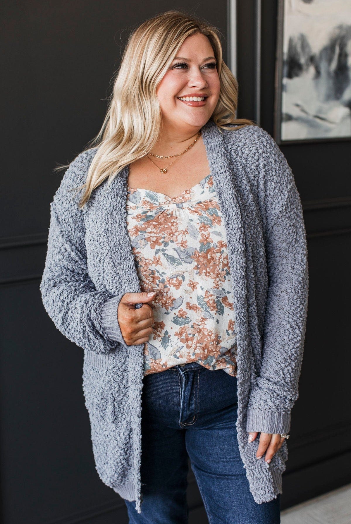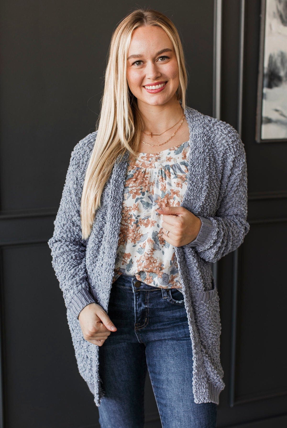 Movie Date Popcorn Knit Cardigan- Dusty Blue