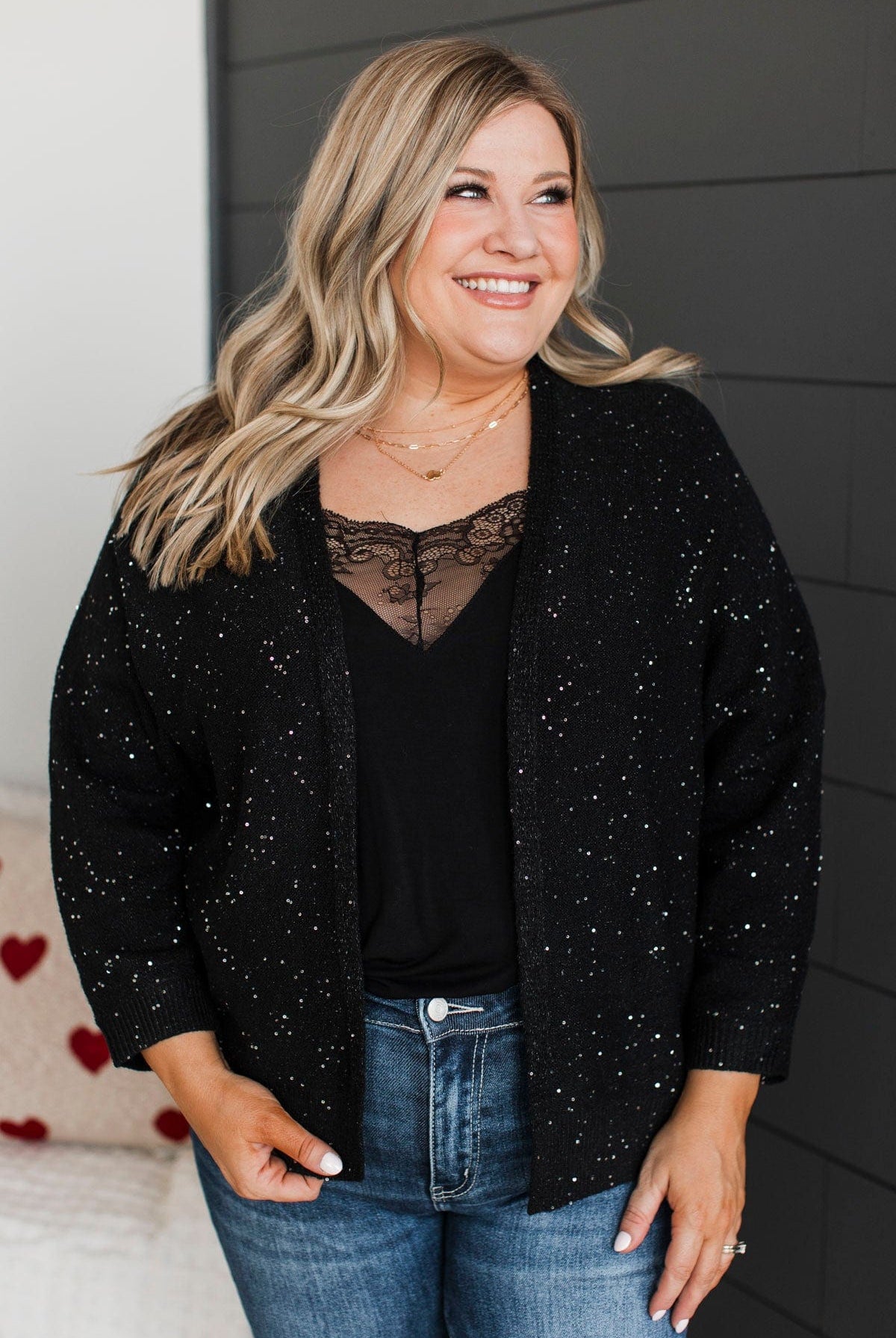 Looking Sophisticated Sequin Knit Cardigan- Black