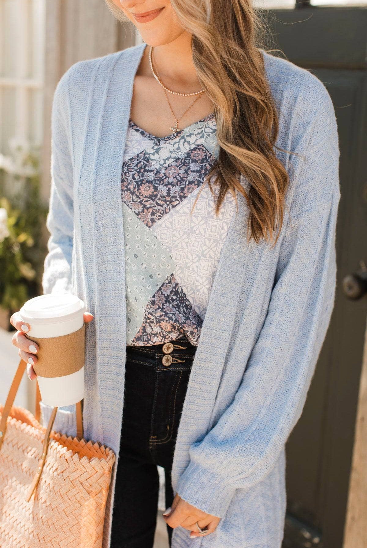 Keeping Cozy Open Front Cardigan- Two-Tone Blue