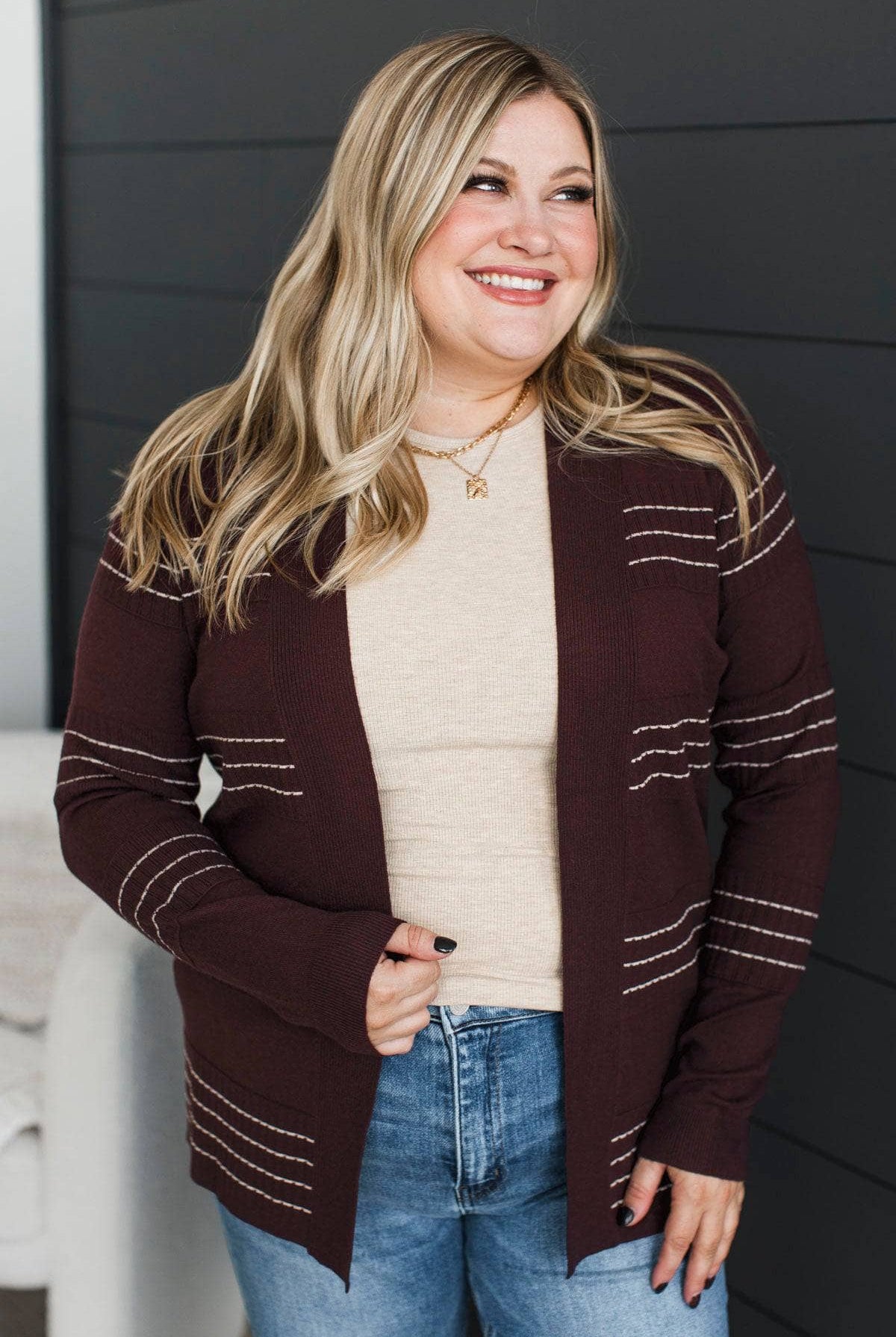 Keep In Mind Stitch Stripe Cardigan- Fig