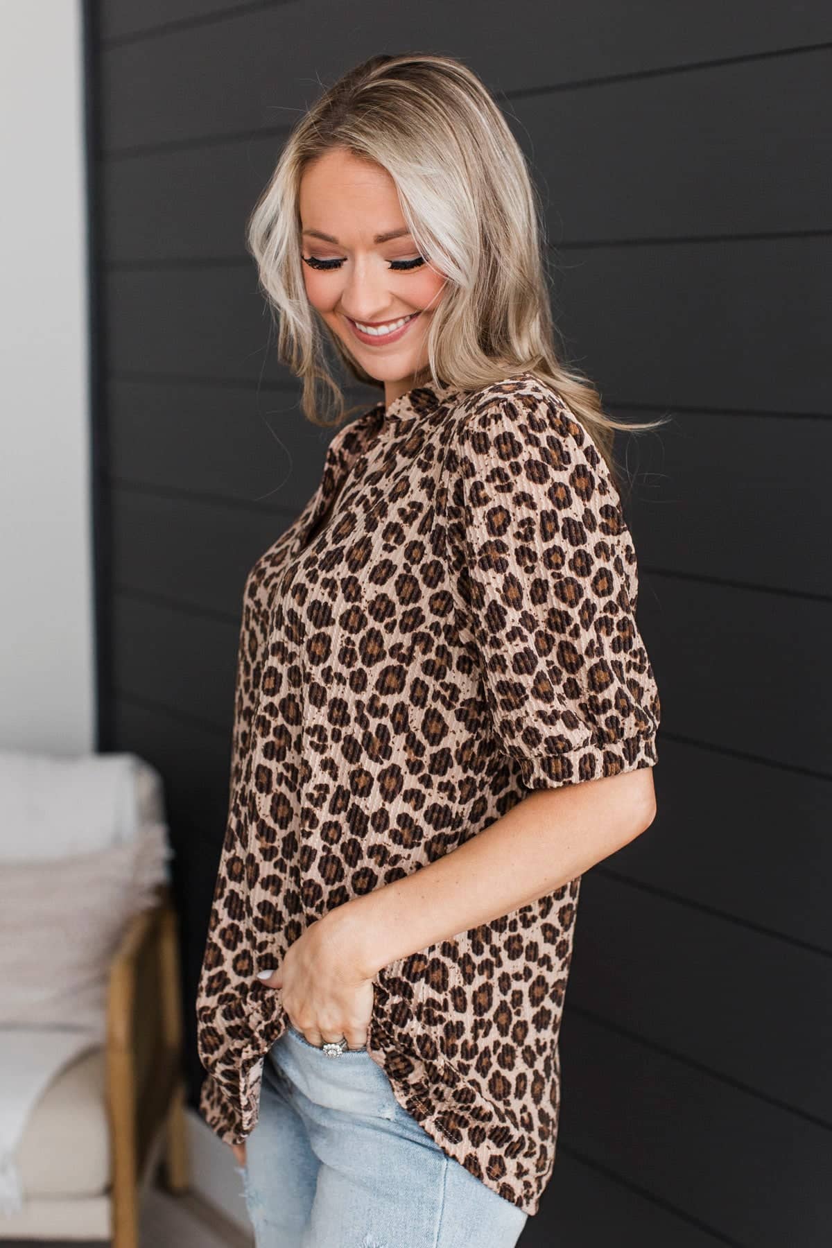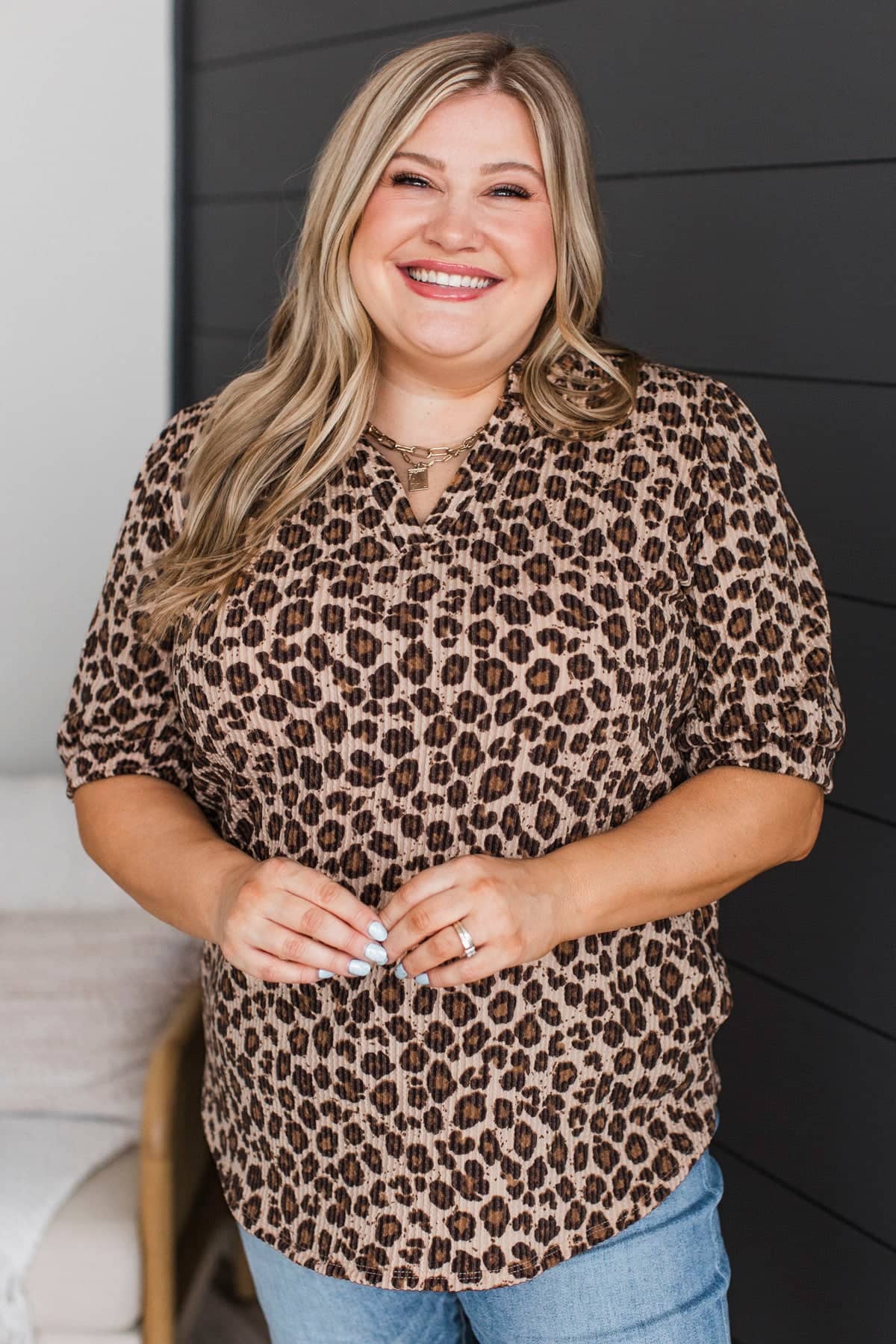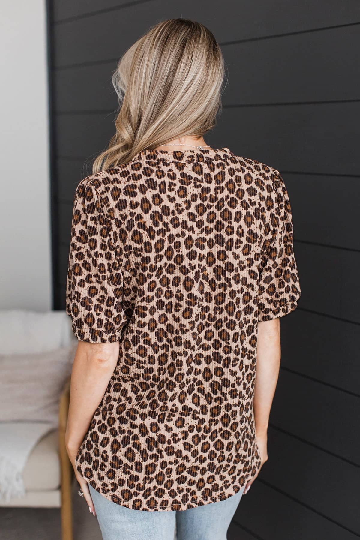 Adventurous Soul Puff Sleeve Animal Print Top- Tan