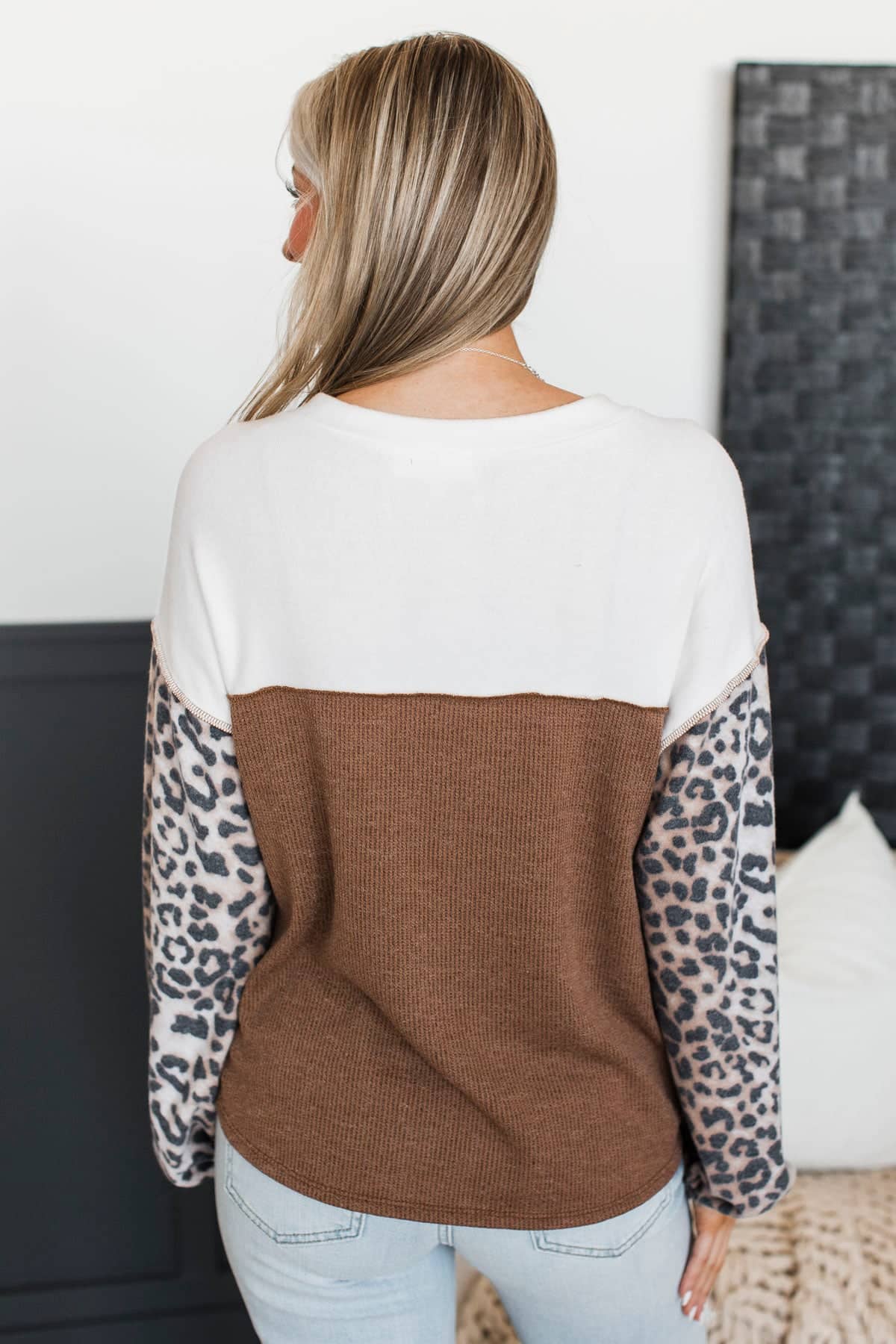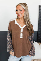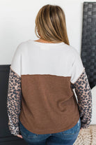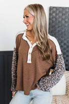 Born Bold Fabric Block Pullover Button Top- Ivory & Brown