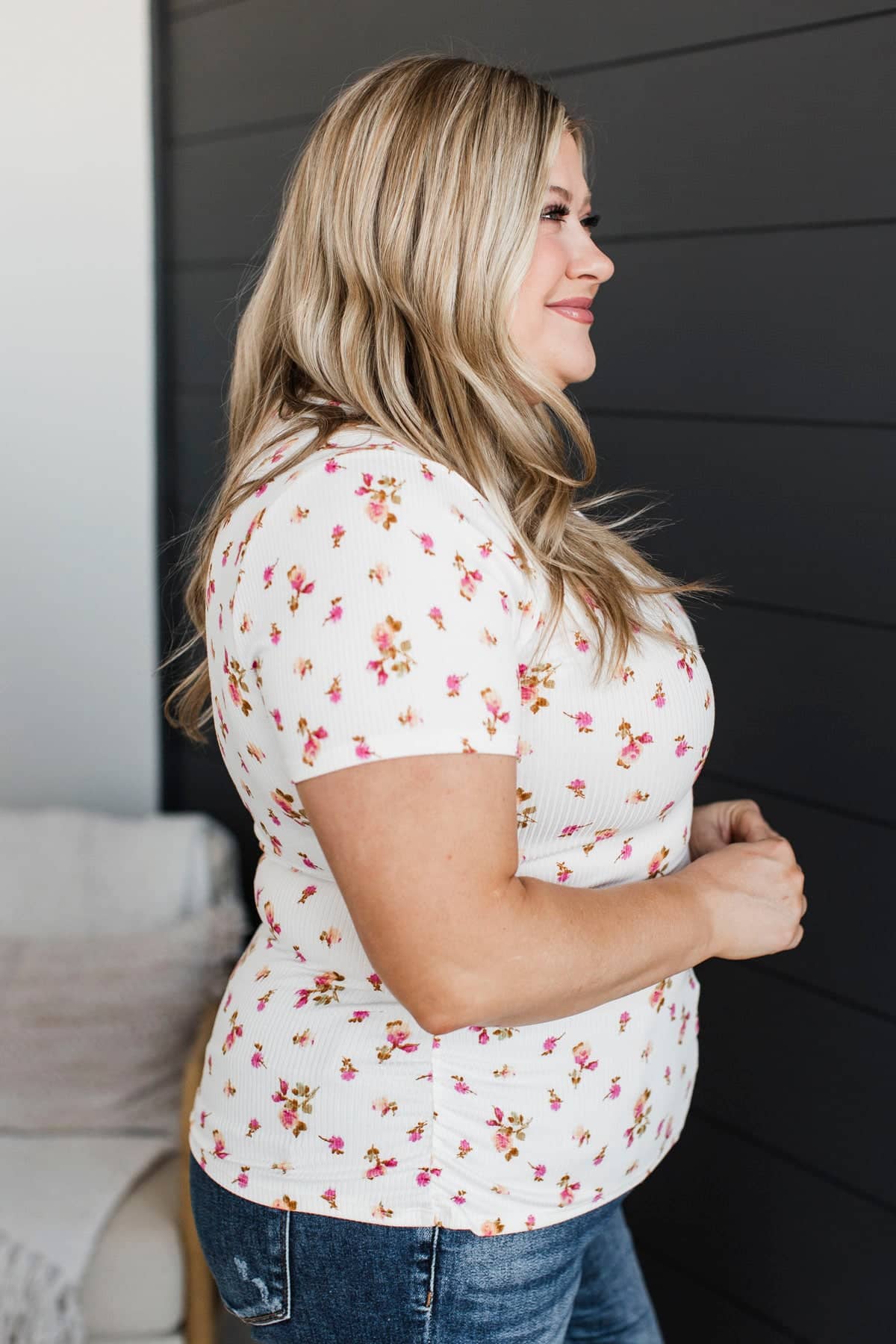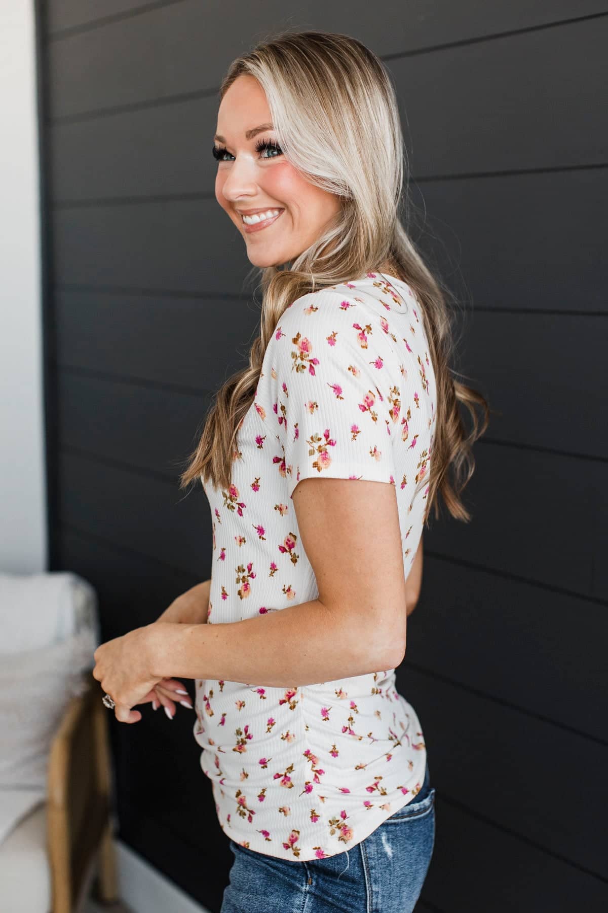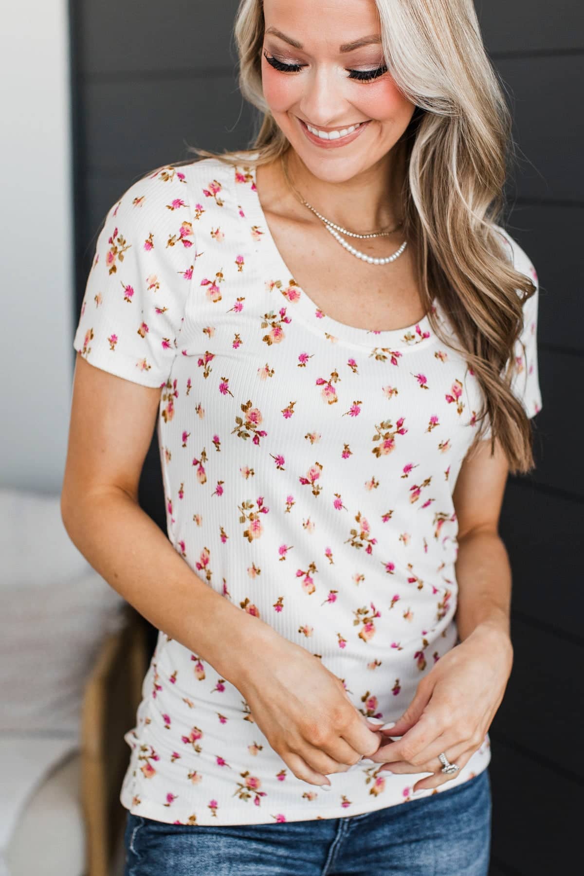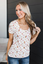 Definitely Adored Ruched Floral Top- Ivory & Pink
