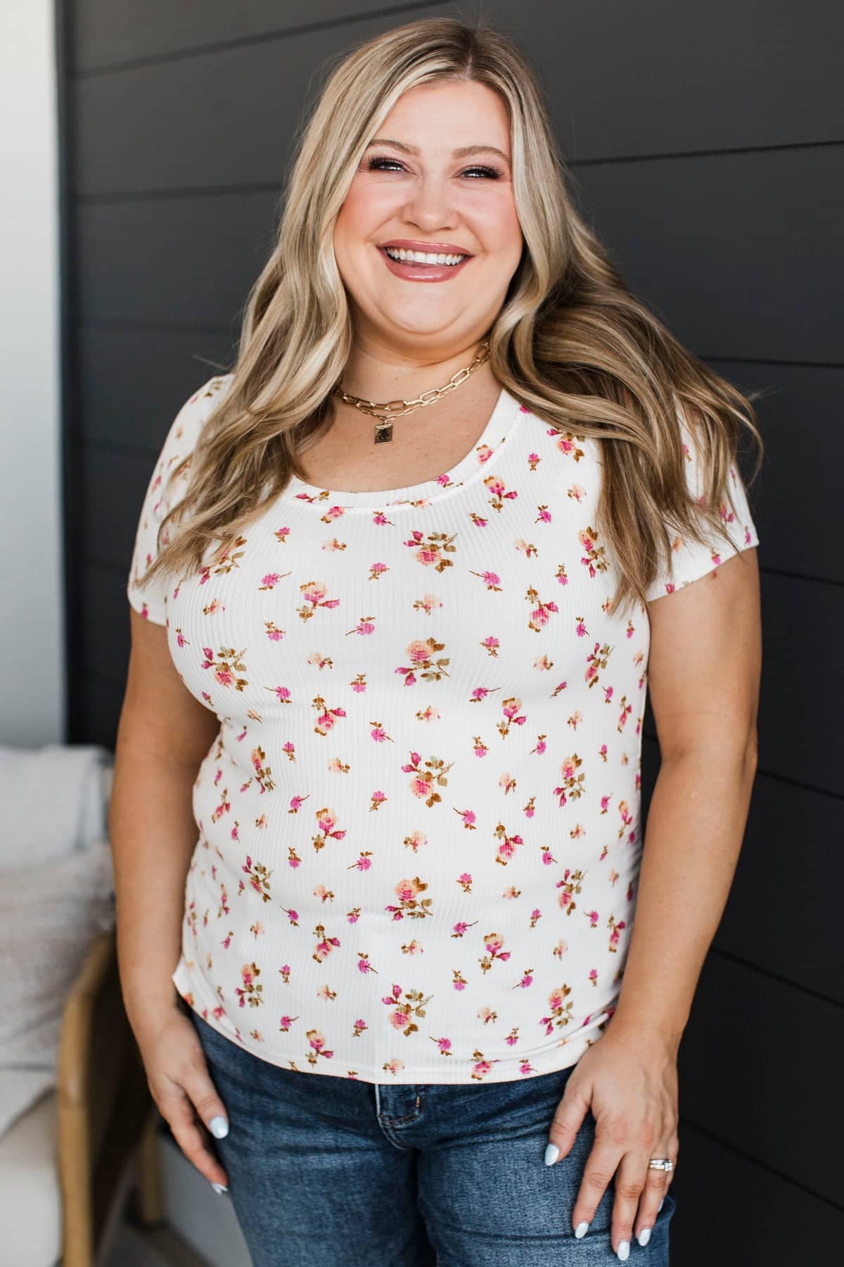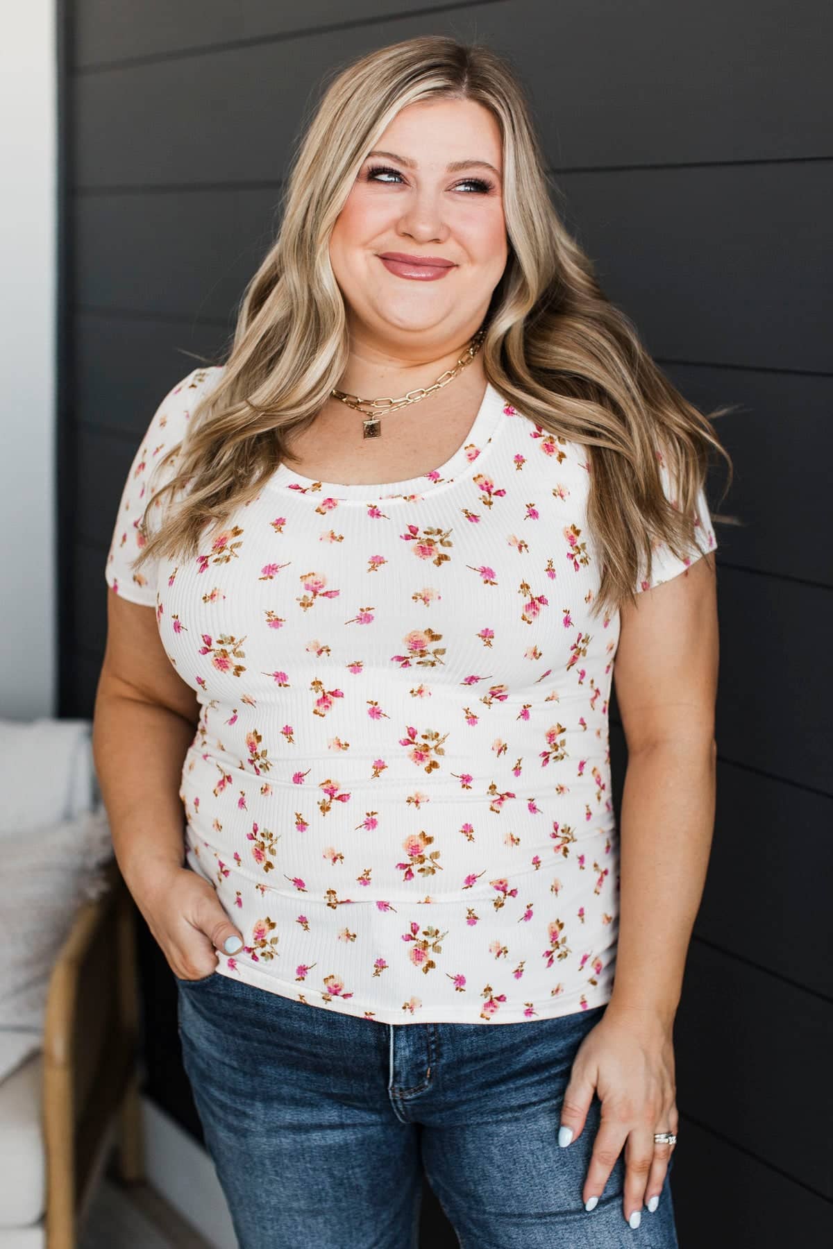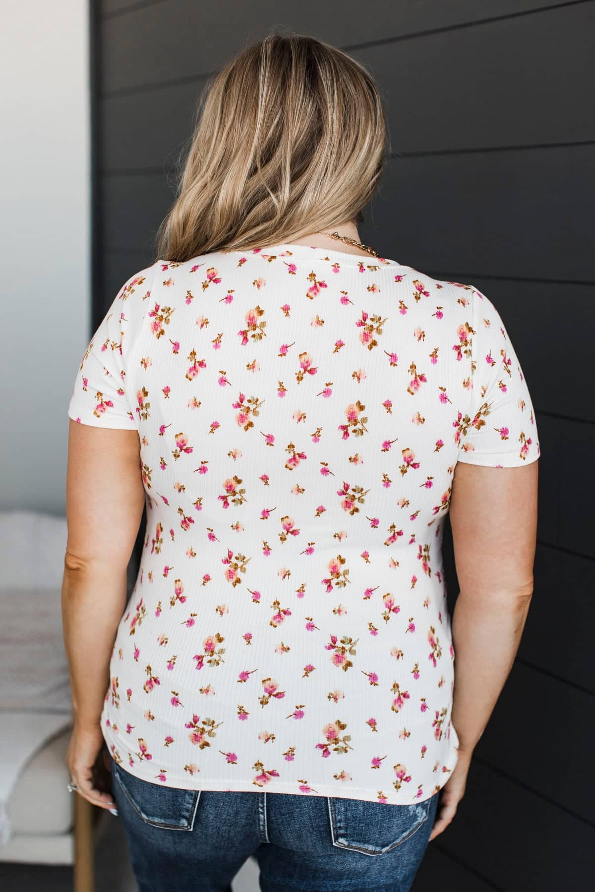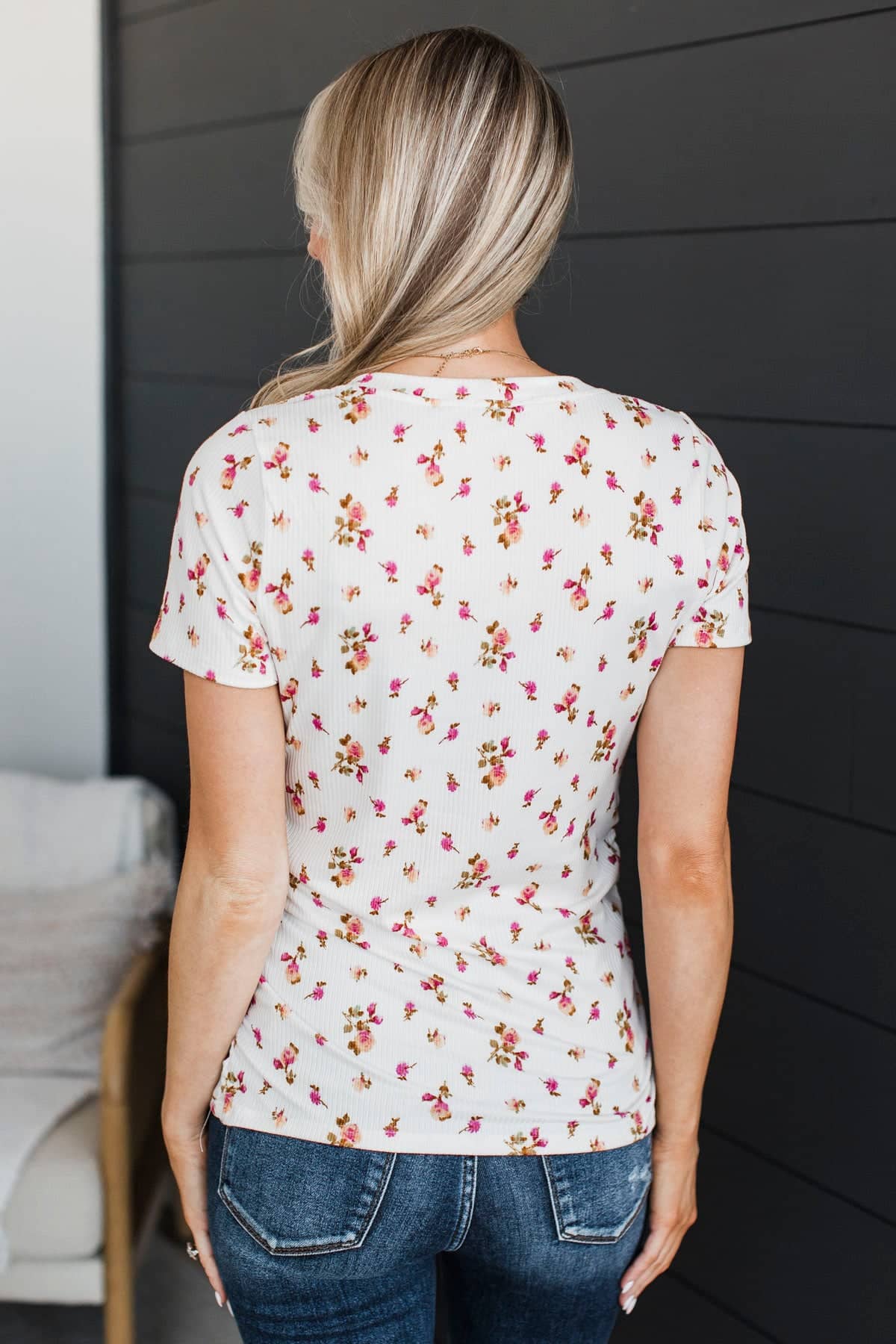Definitely Adored Ruched Floral Top- Ivory & Pink