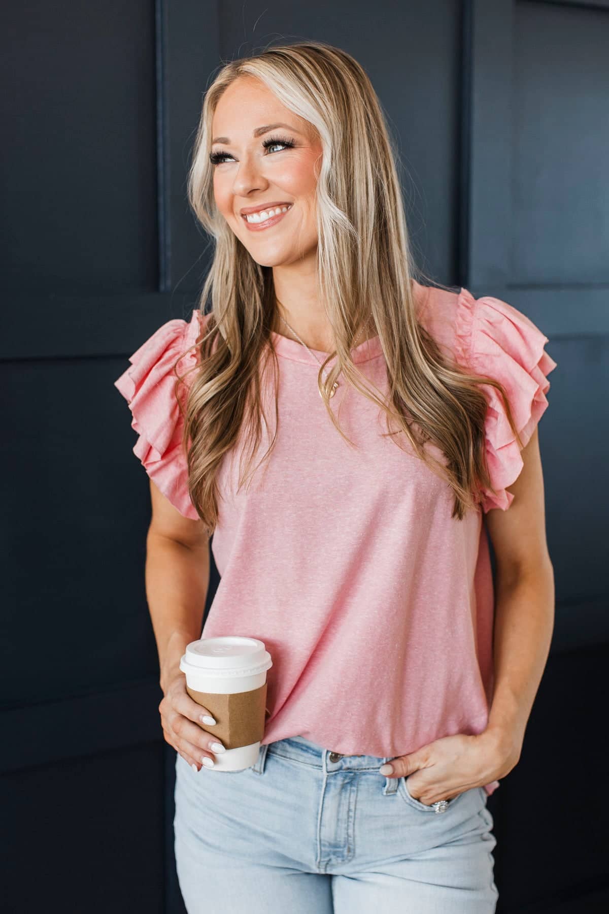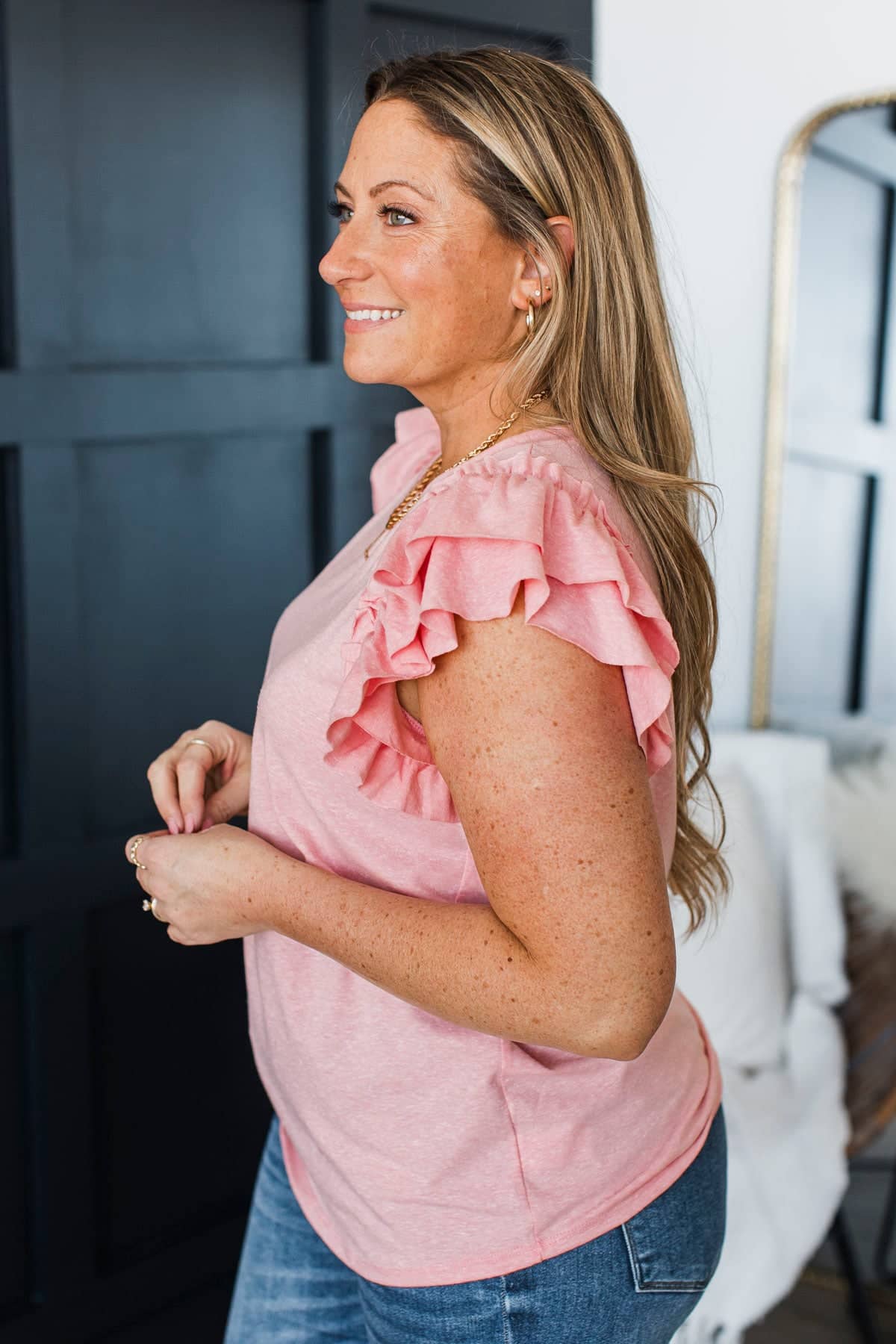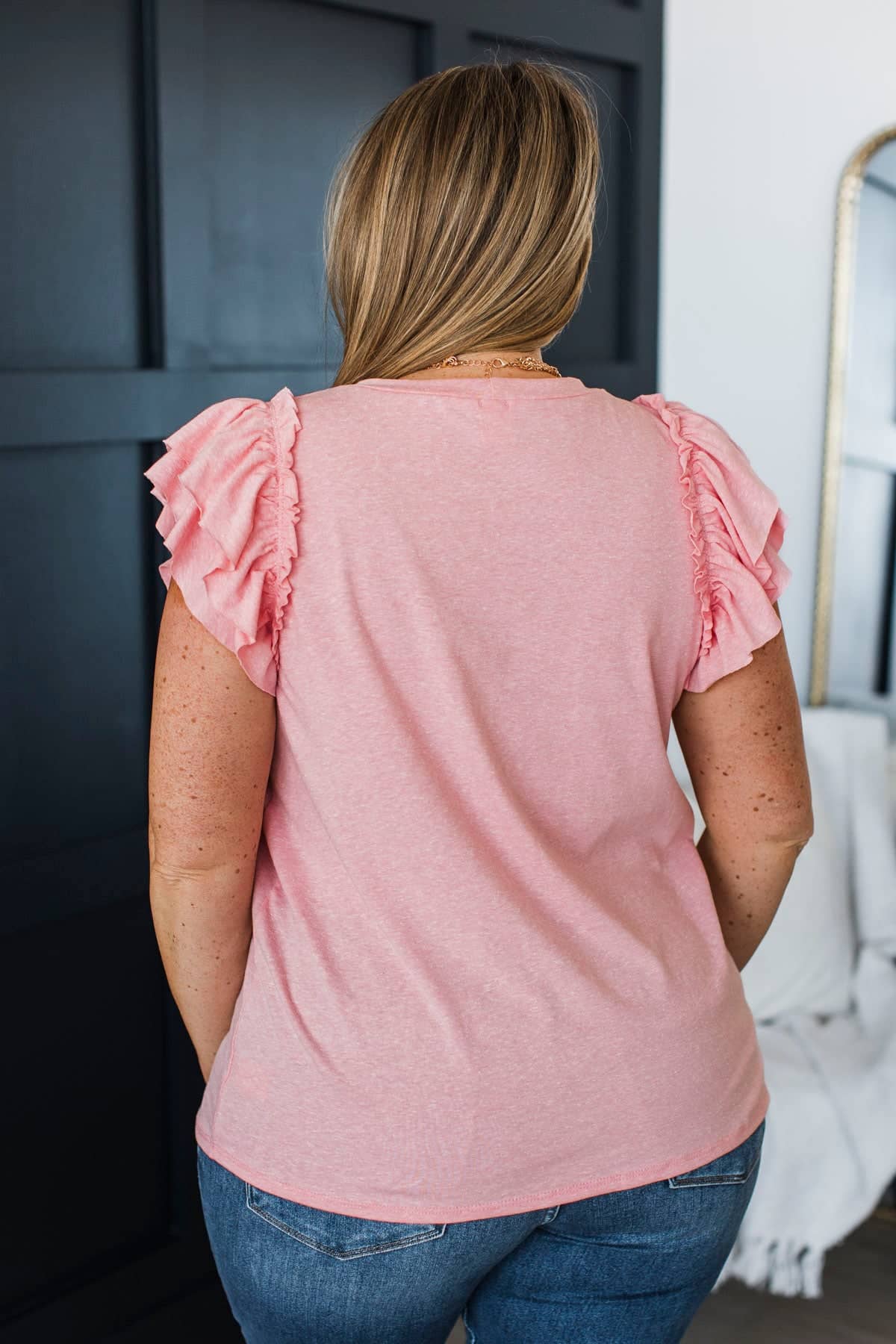 Desirable Outcome Ruffle Sleeve Top- Soft Pink