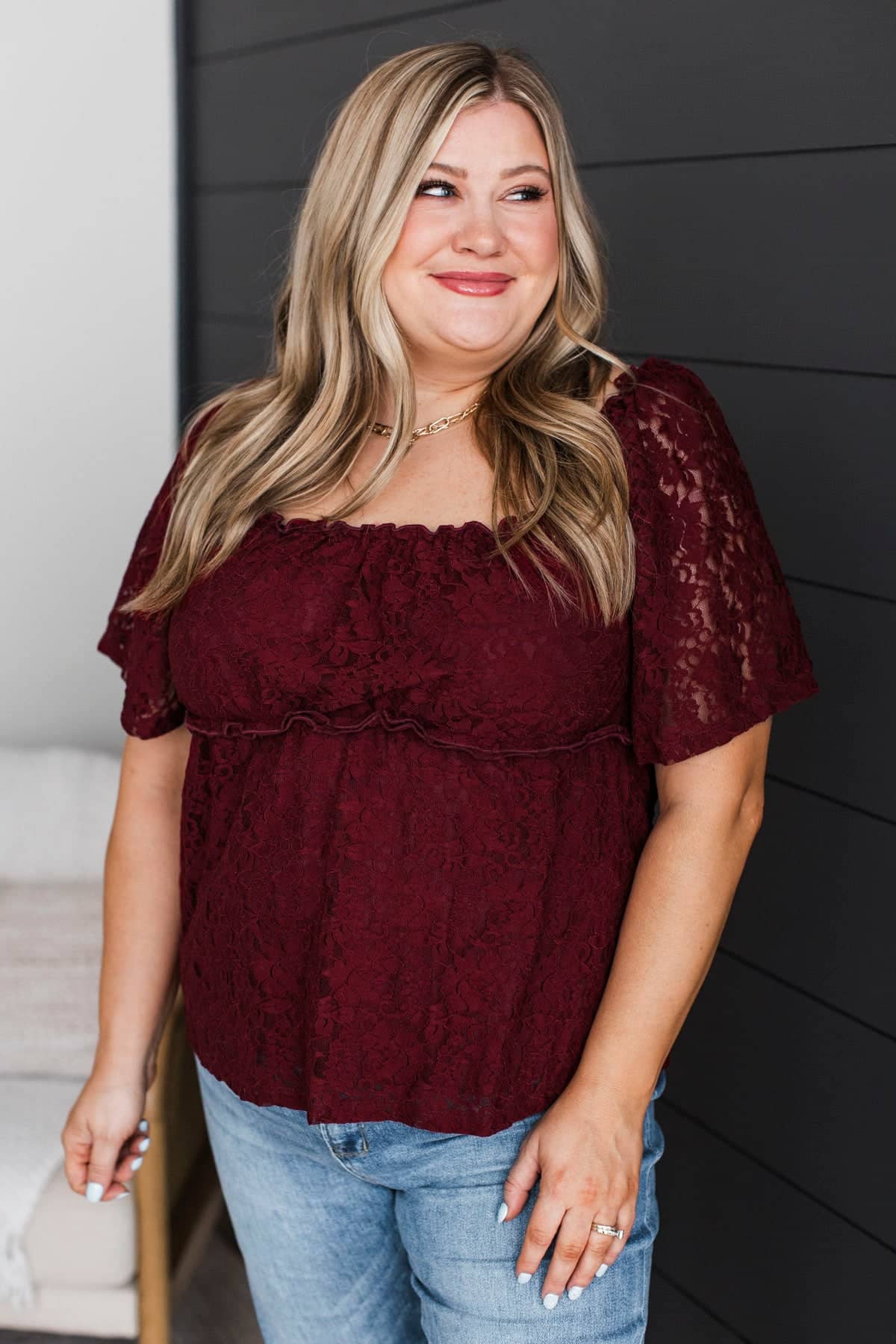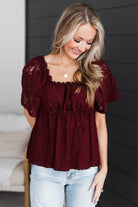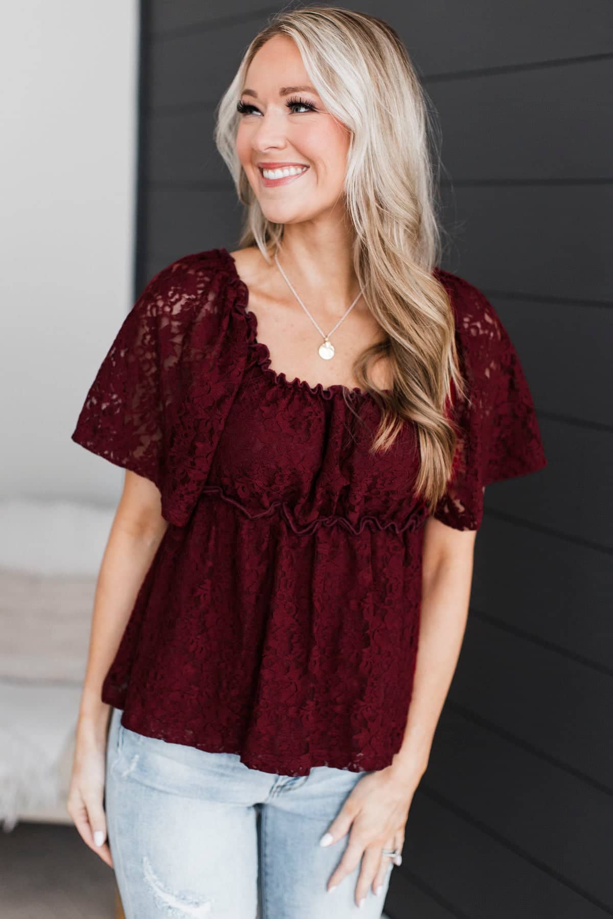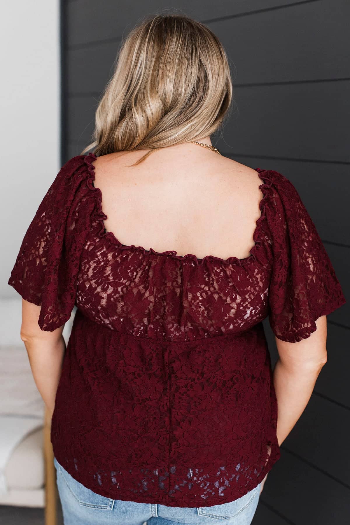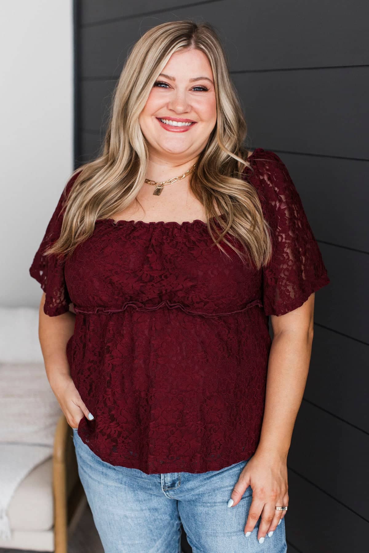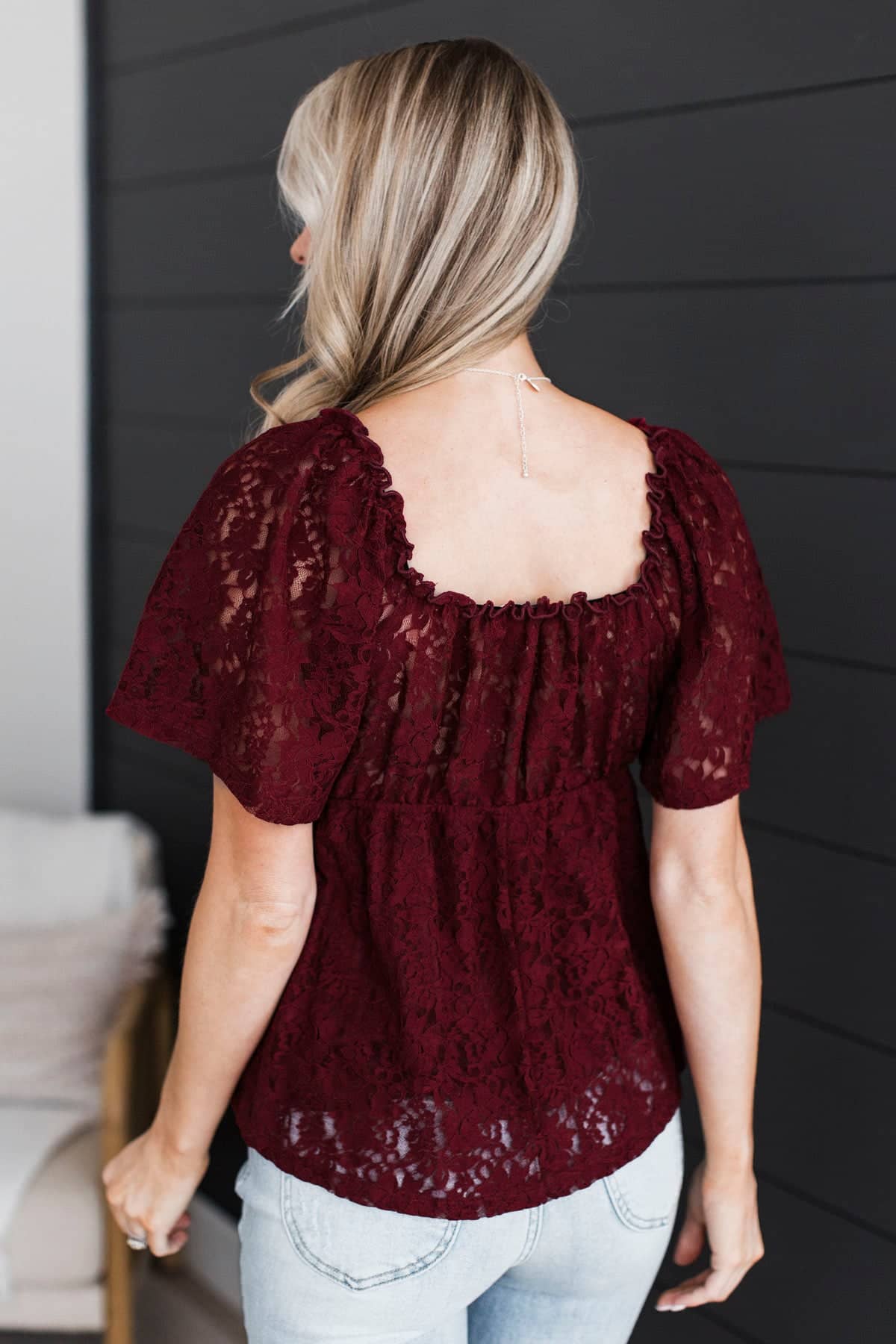 Dreaming Out Loud Floral Lace Blouse- Burgundy