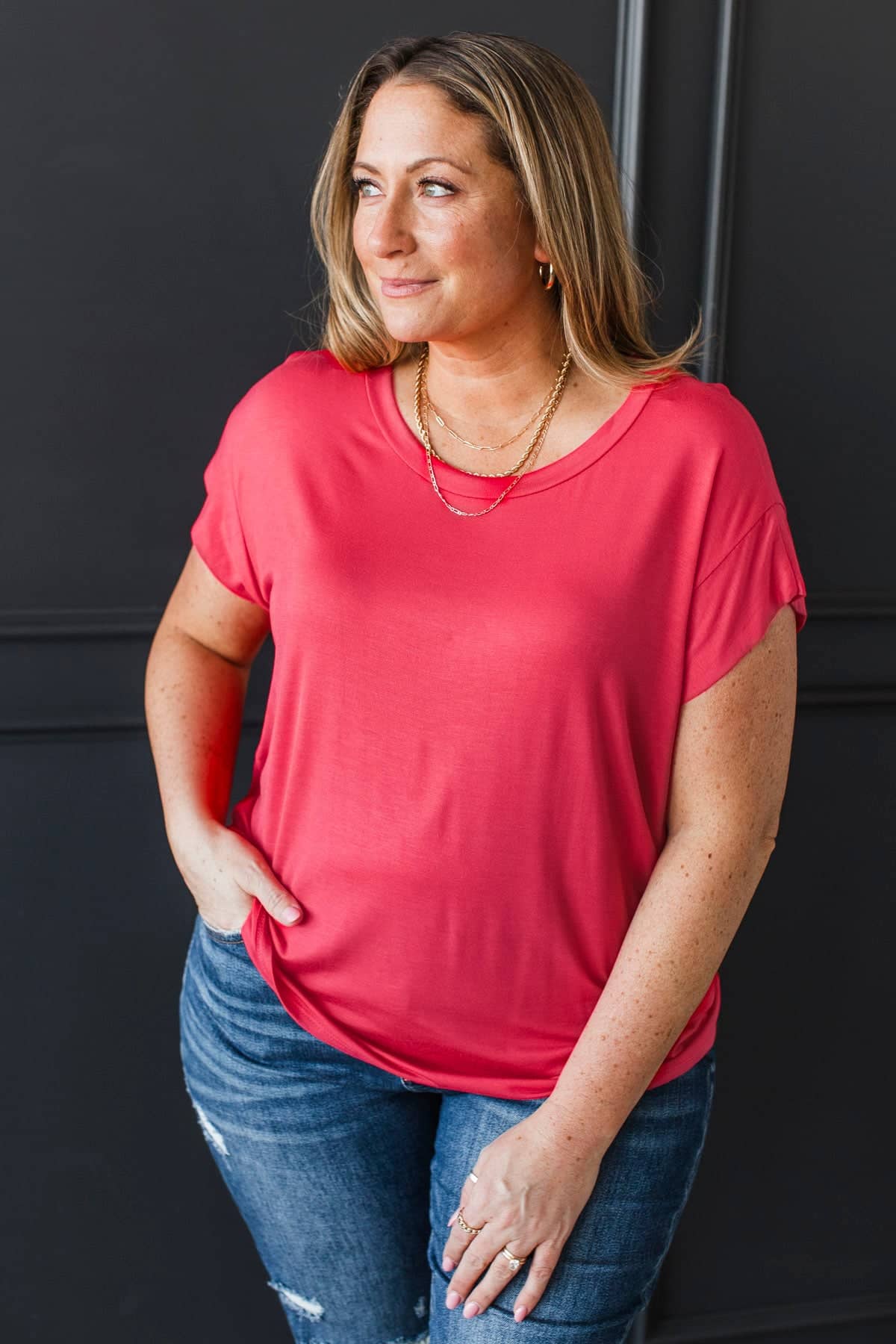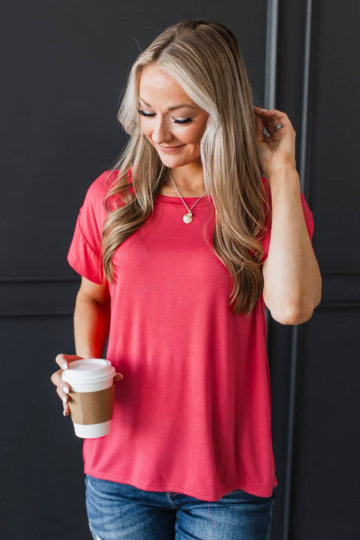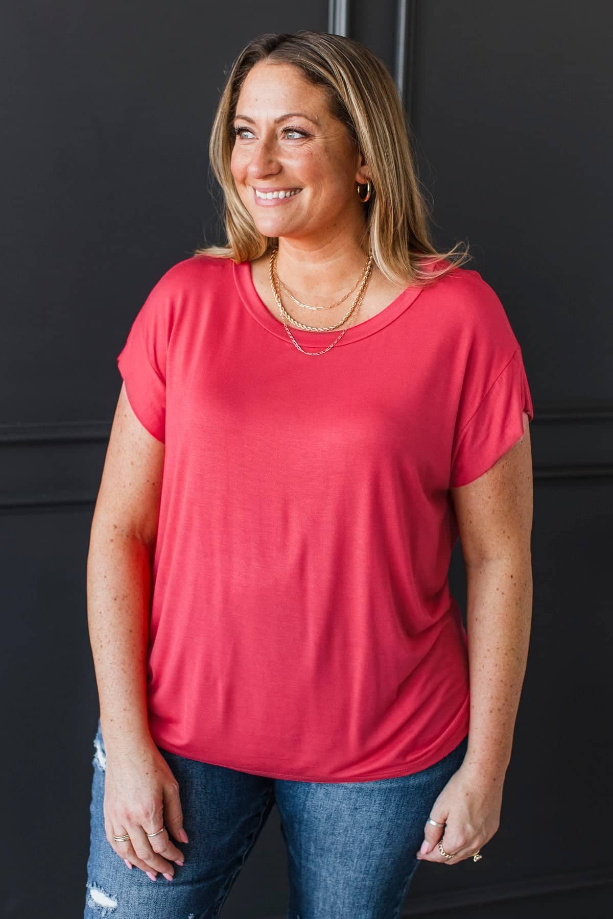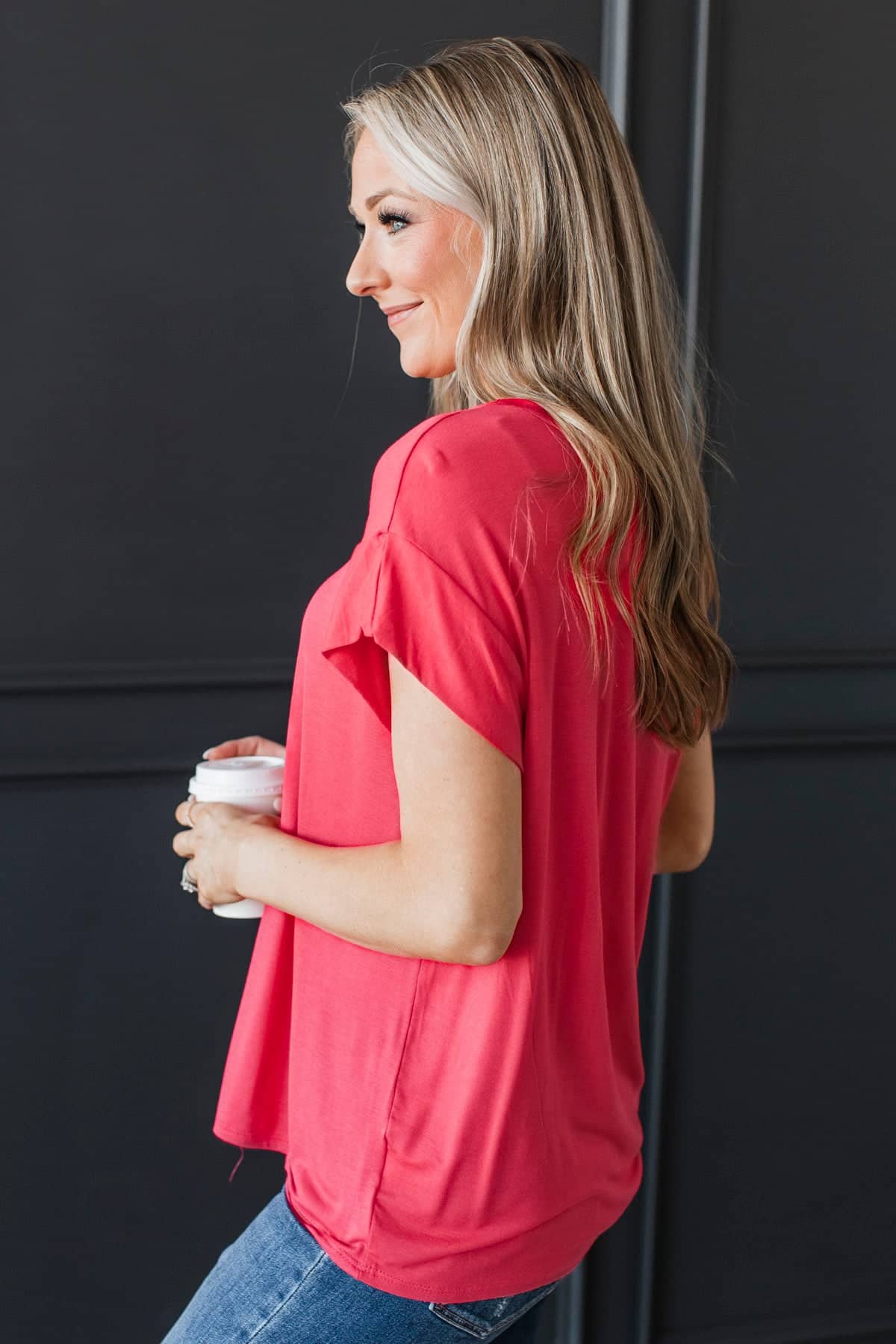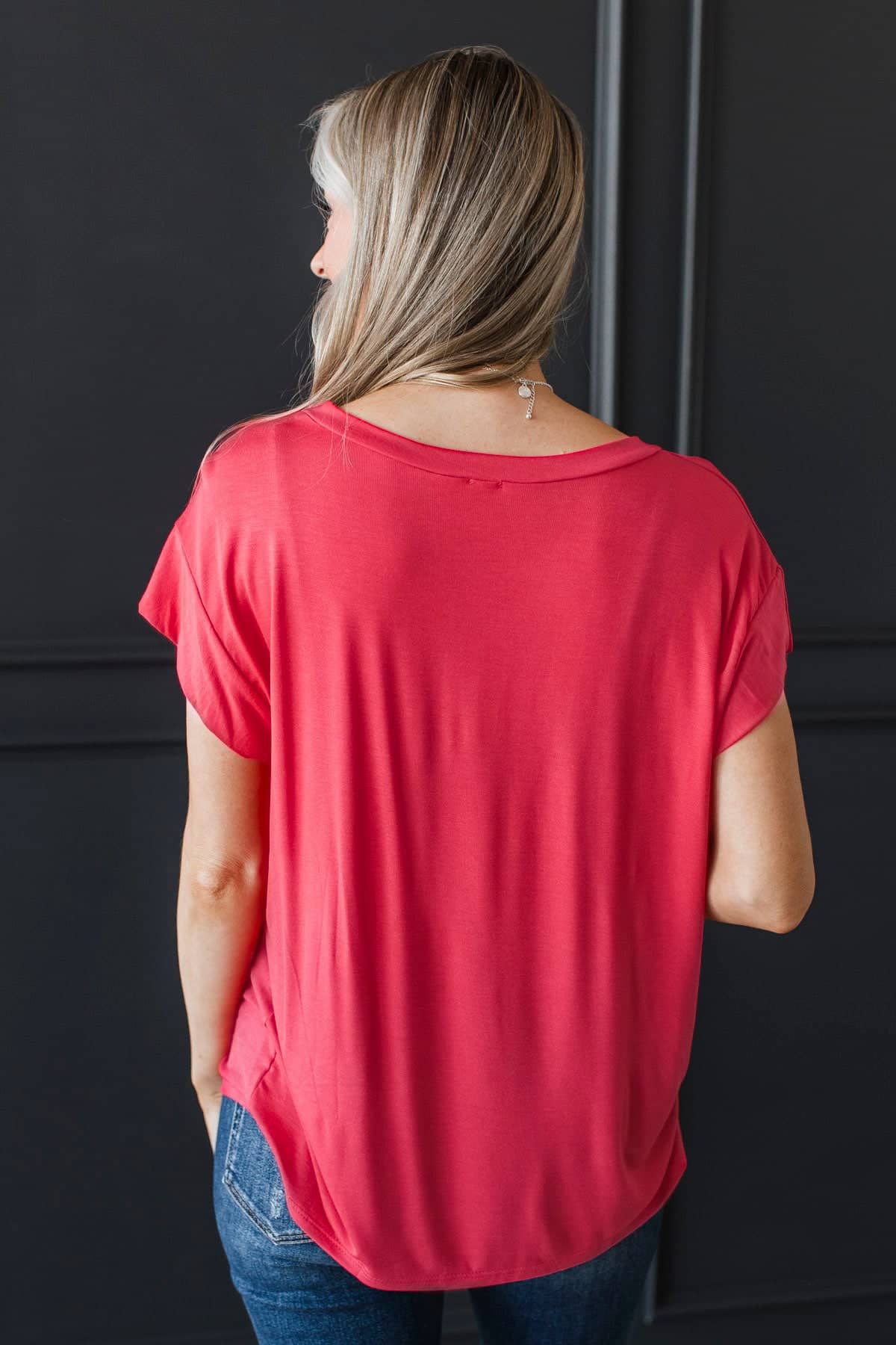 Good Karma Cap Sleeve Top- Coral Red