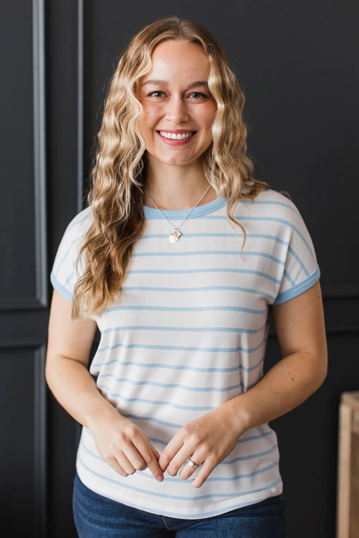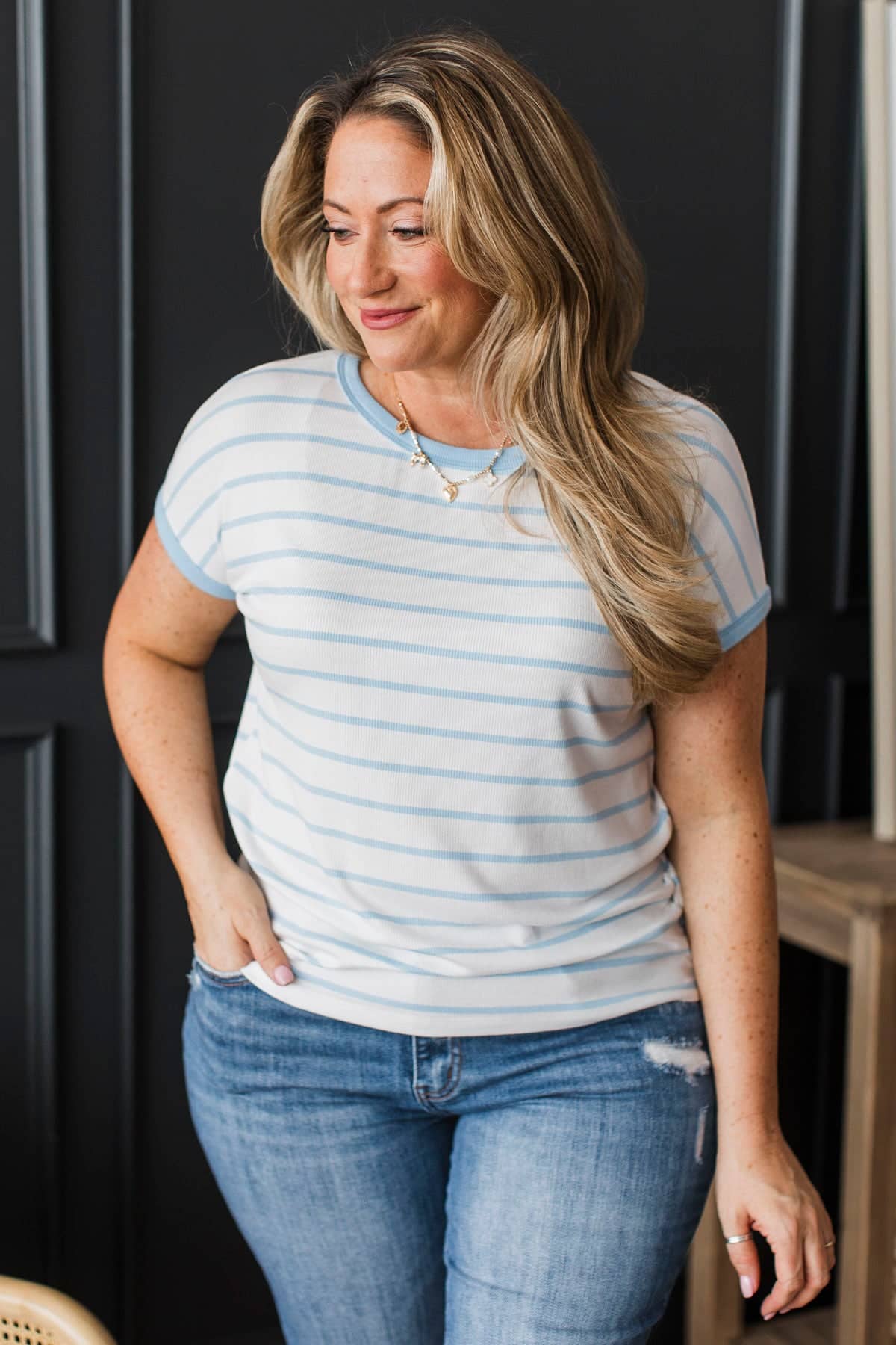 Seeking Attention Striped Short Sleeve Top- Ivory & Blue