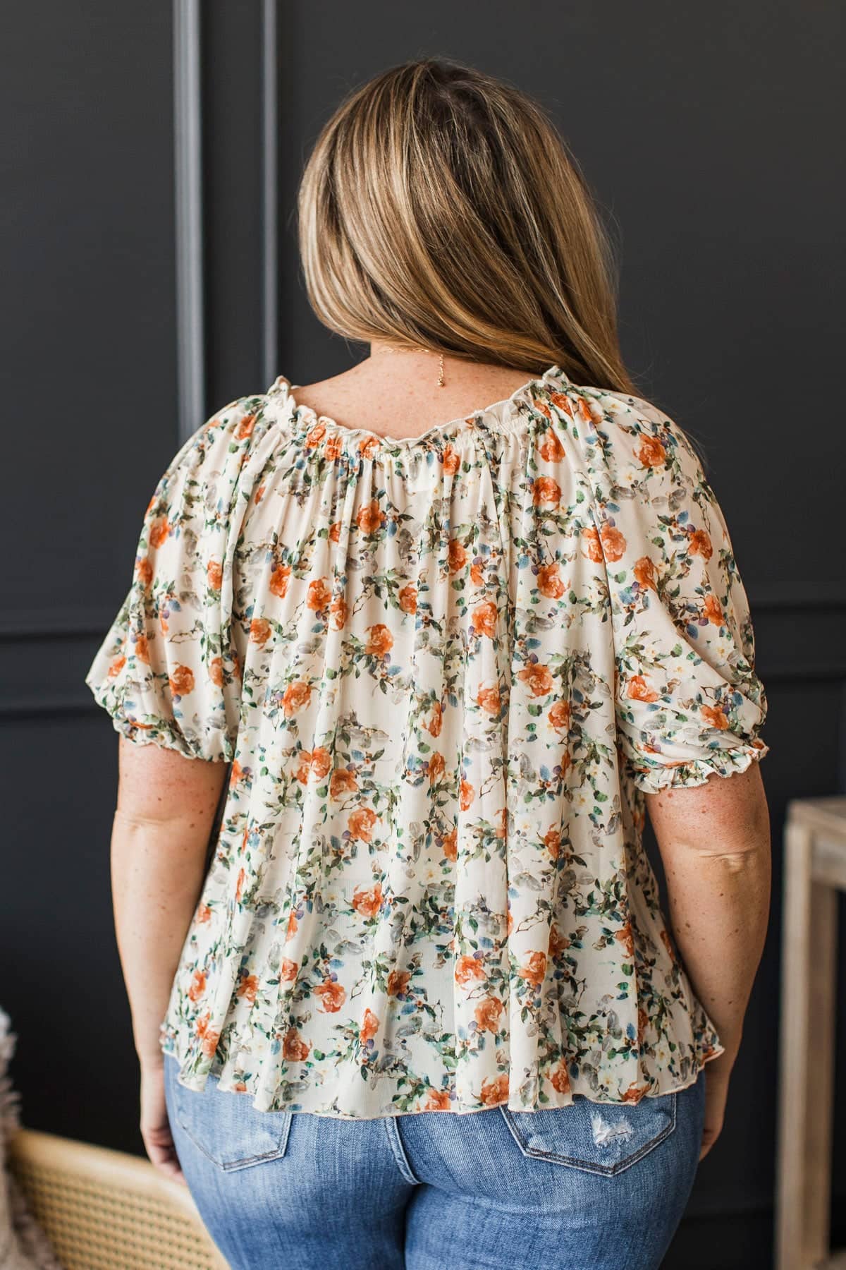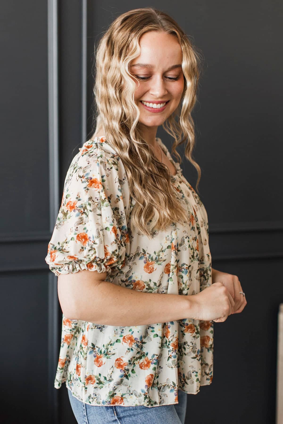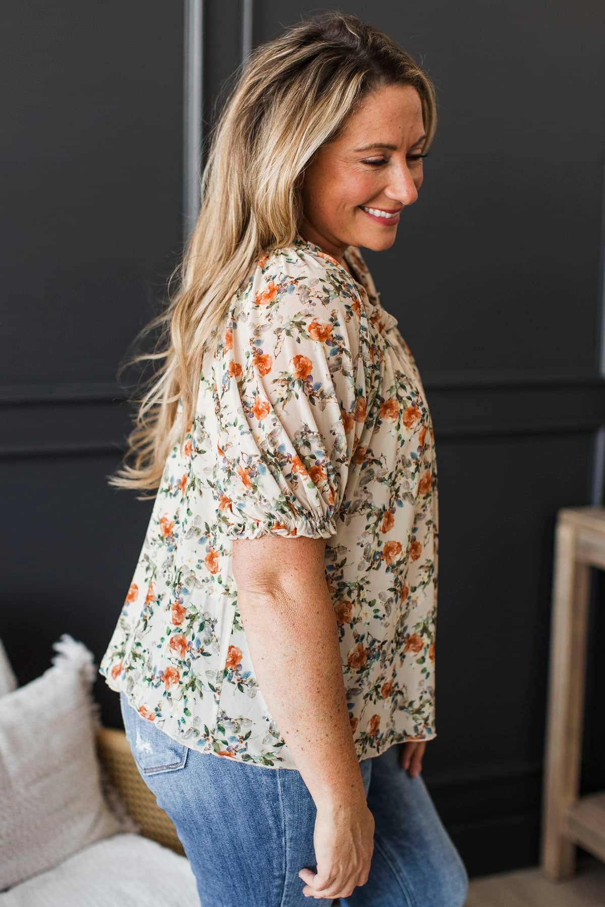 Treasured Times Puff Sleeve Floral Blouse- Beige
