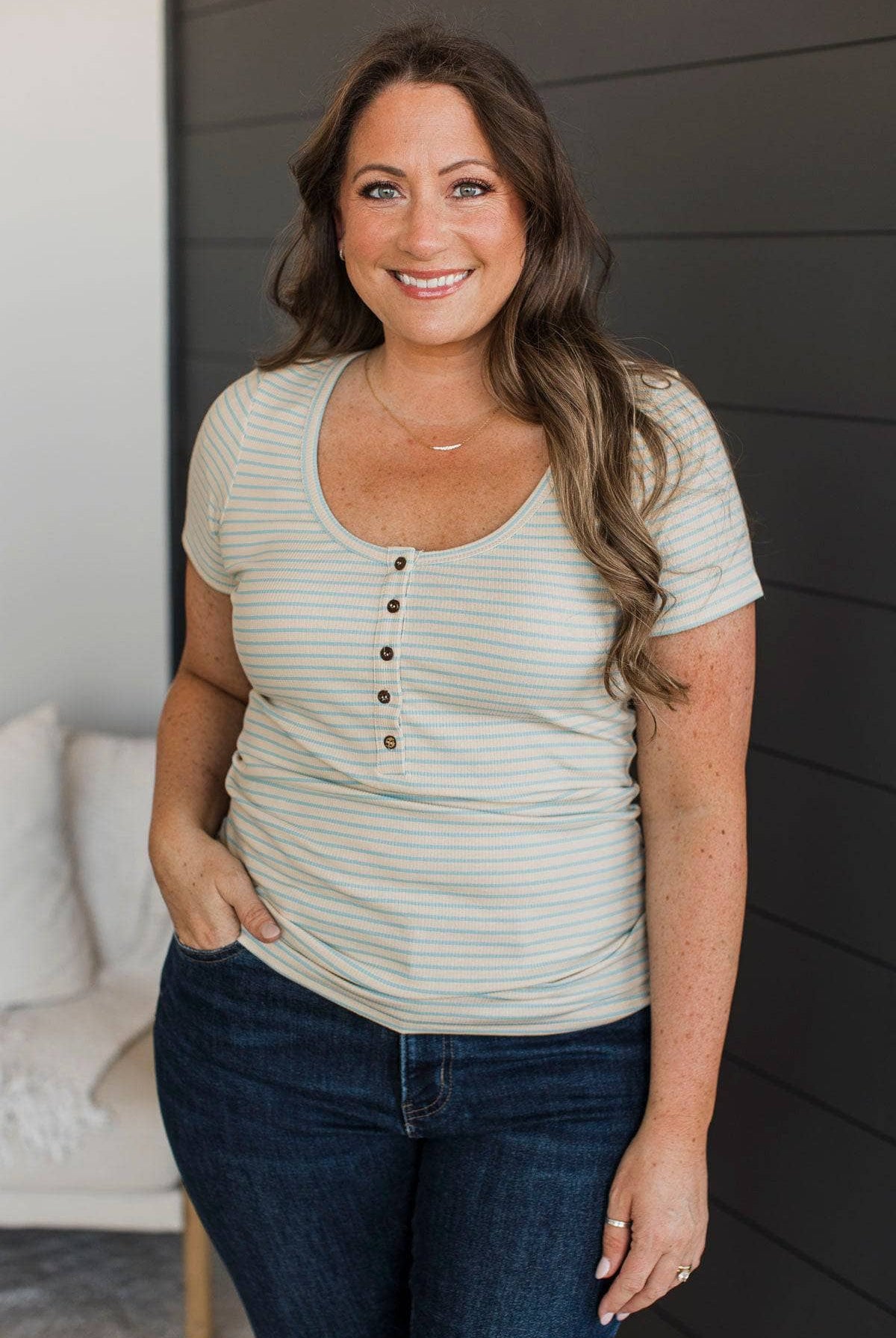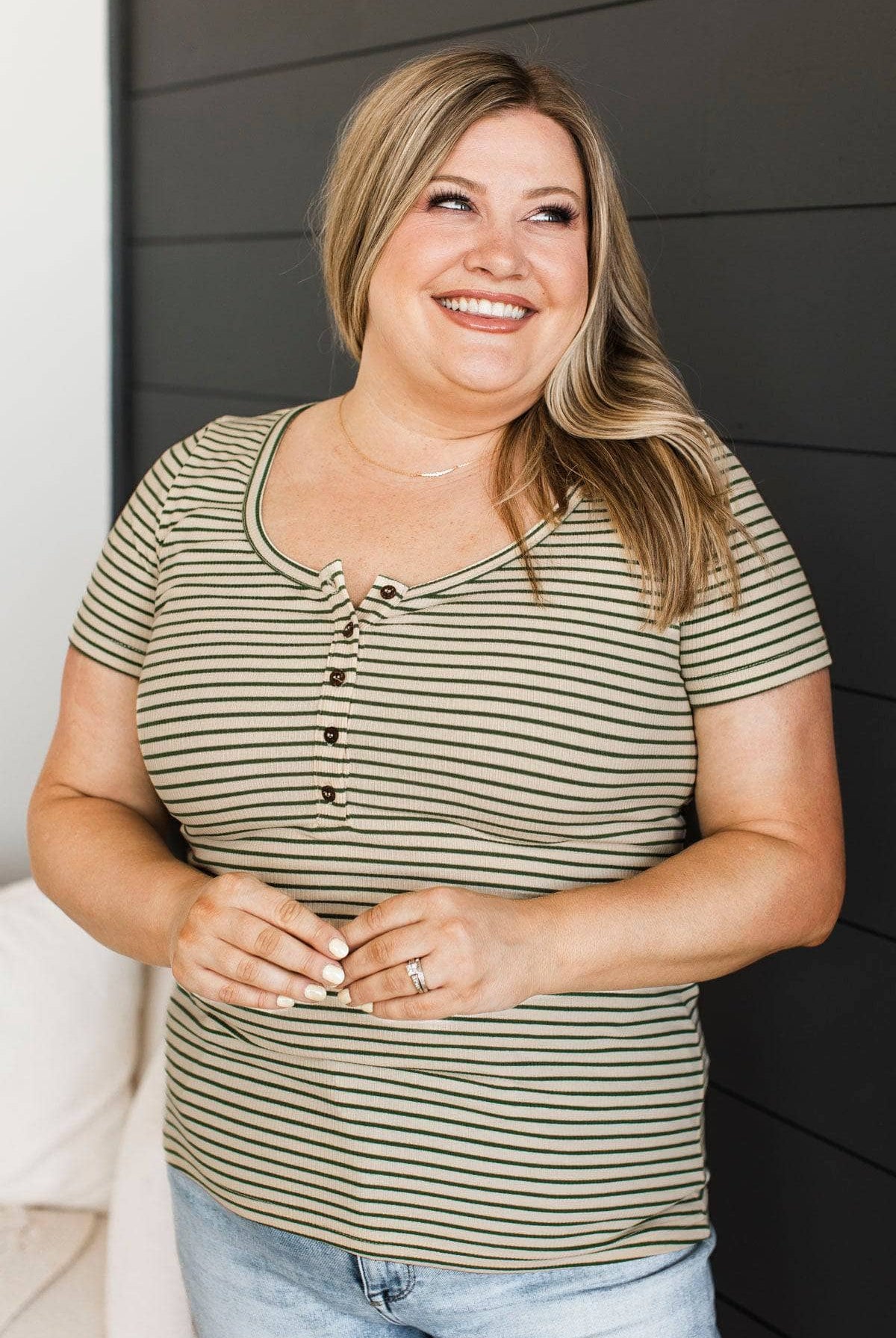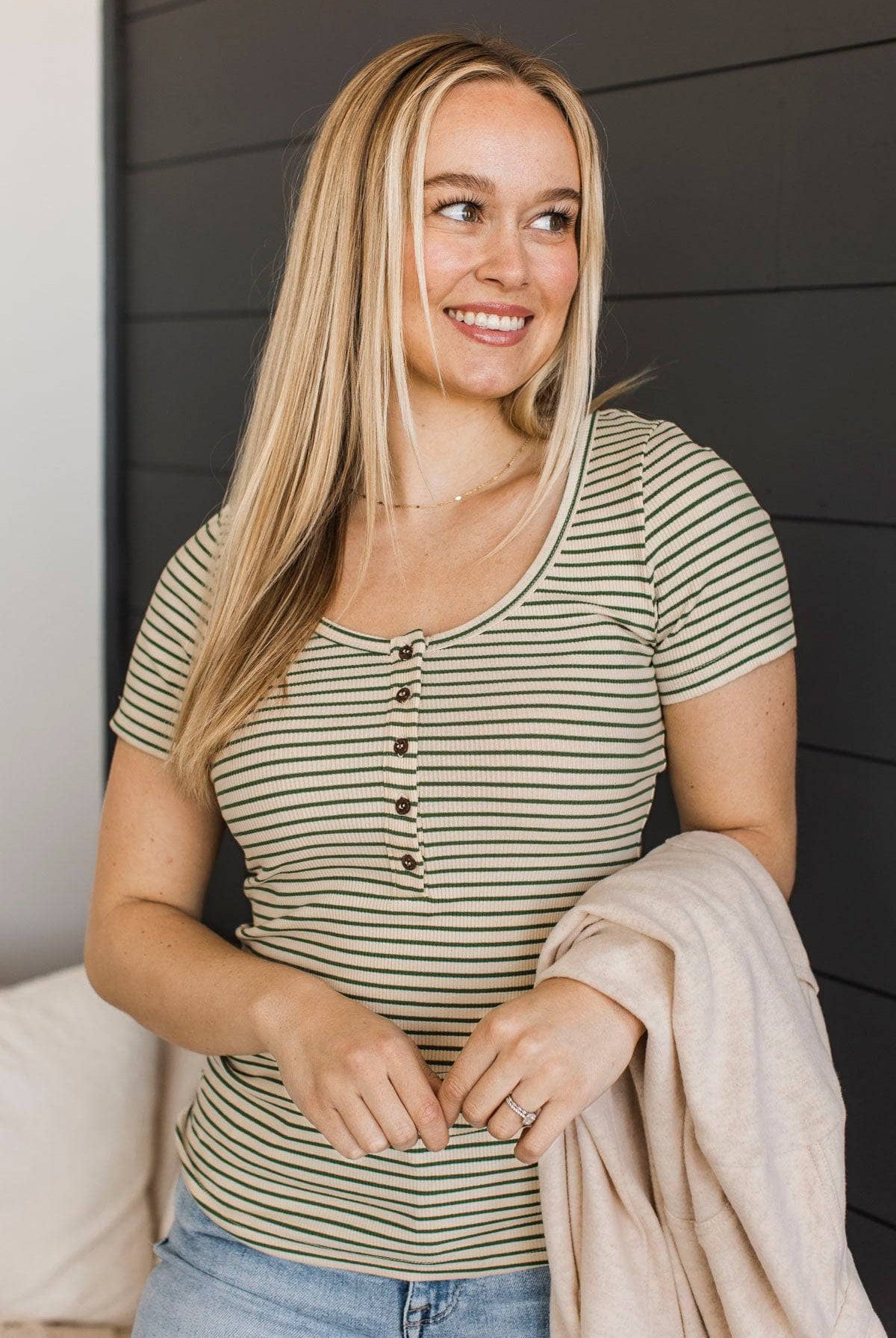 Big Goals Striped Short Sleeve Top- Cream & Green