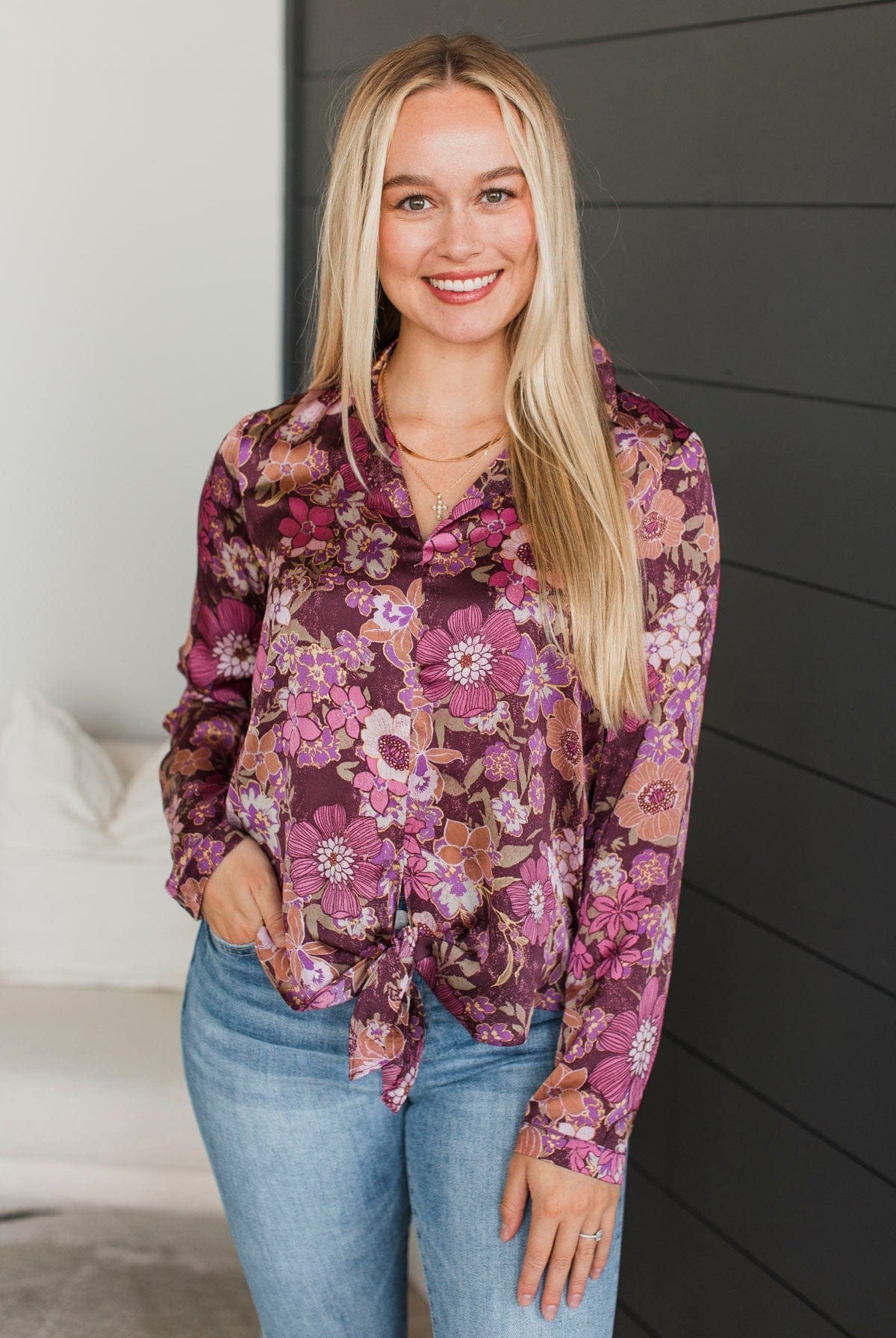 Incredible Life Long Sleeve Floral Top- Burgundy