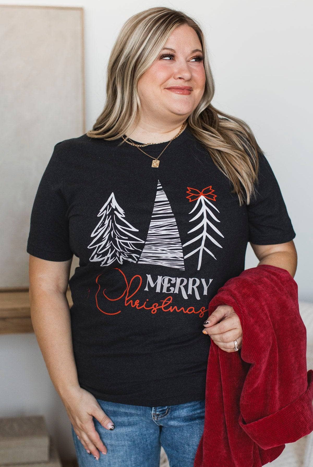 "Merry, Merry, Merry Christmas" Graphic Tee- Black
