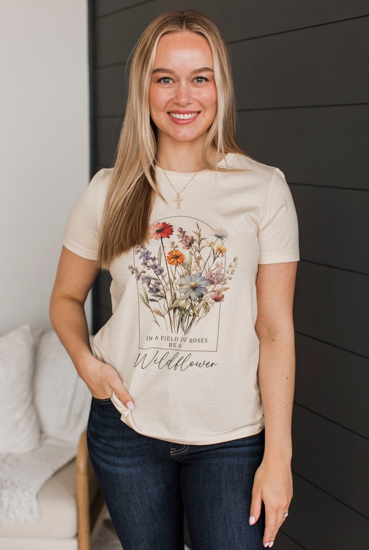 "In A Field Of Roses, Be A Wildflower" Graphic Tee- Natural